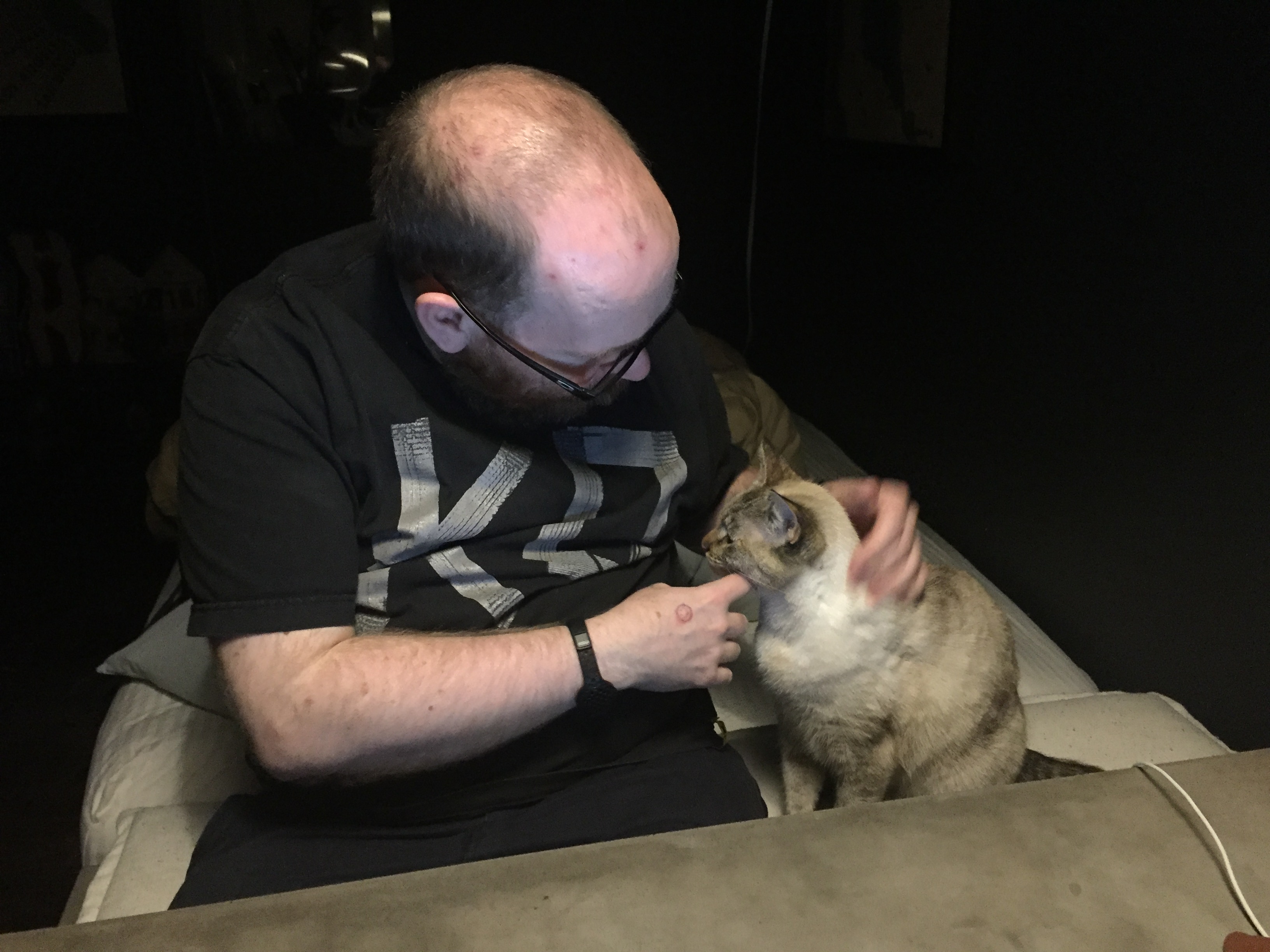 So by now I'm pretty drunk, and so is Russell. You'll note the complete lack of food mentioned since that sandwich at 3.45pm. Russell, the fat bastard, is on a diet which involves eating only one meal a day and that only consists of leaves. Eesh. So we walk back to the flat, bidding farewell to the Priest as he Ubers off. Home and out comes the gin because, well, because. The cats look cute and I swear lots about being unable to transfer photos to my iPad because grr Airdrop. Also that spot on the top of my head is unpleasant.