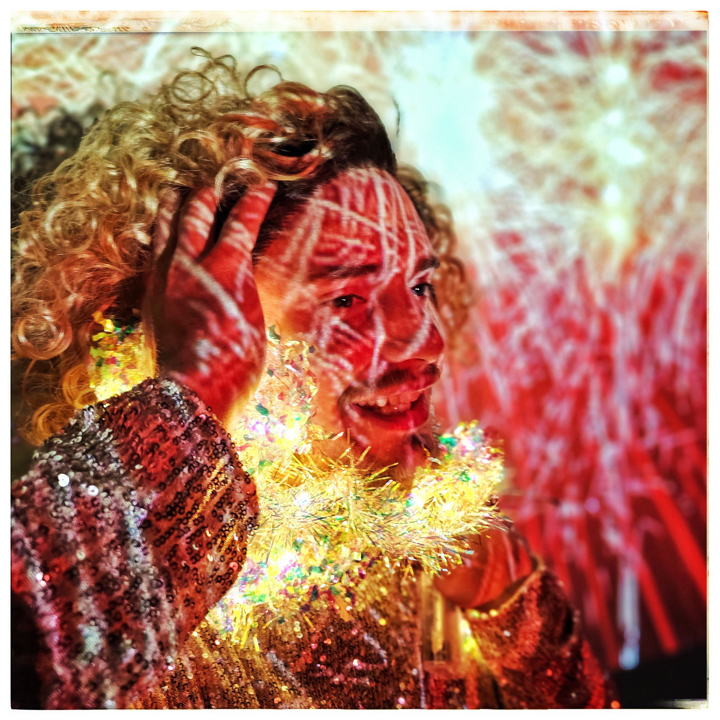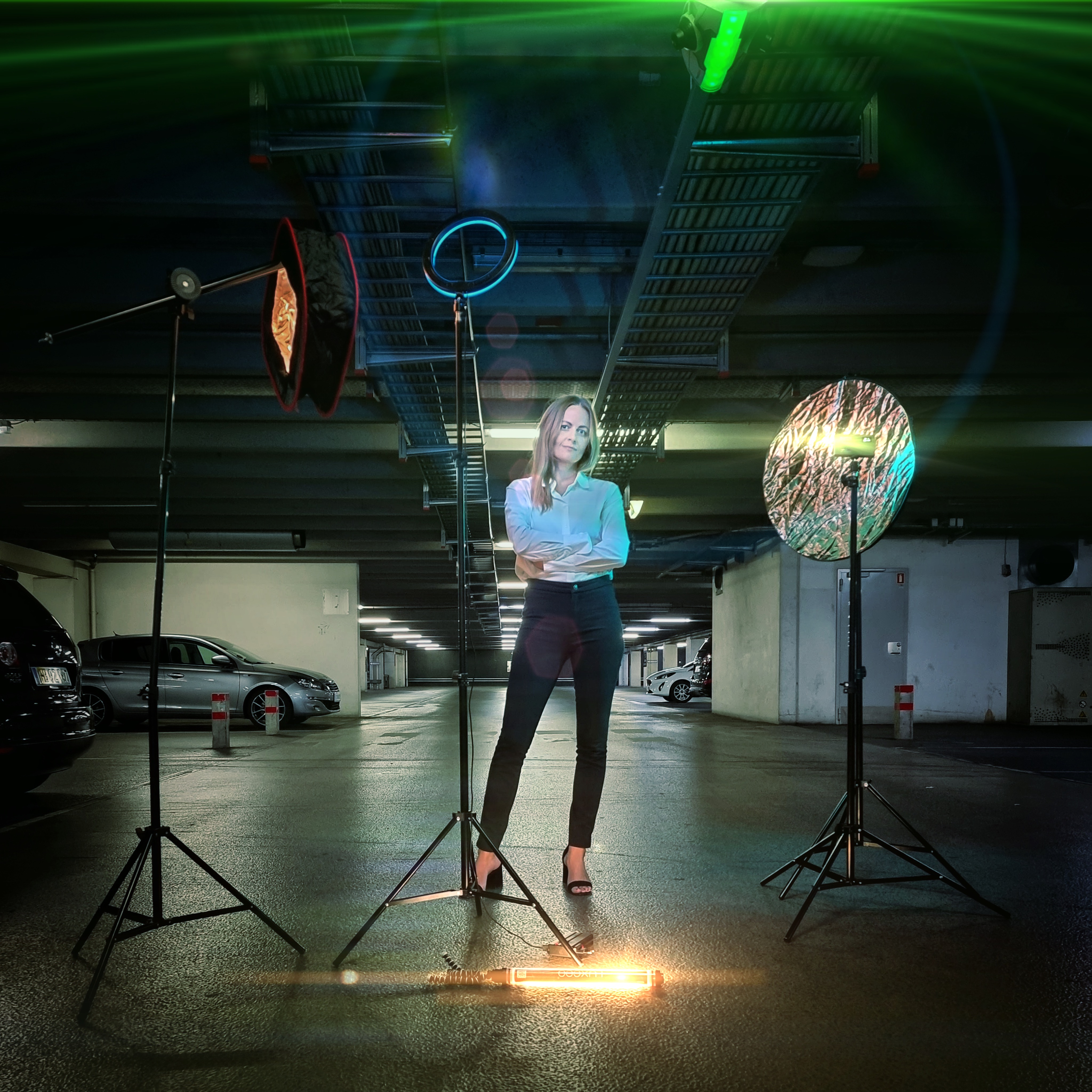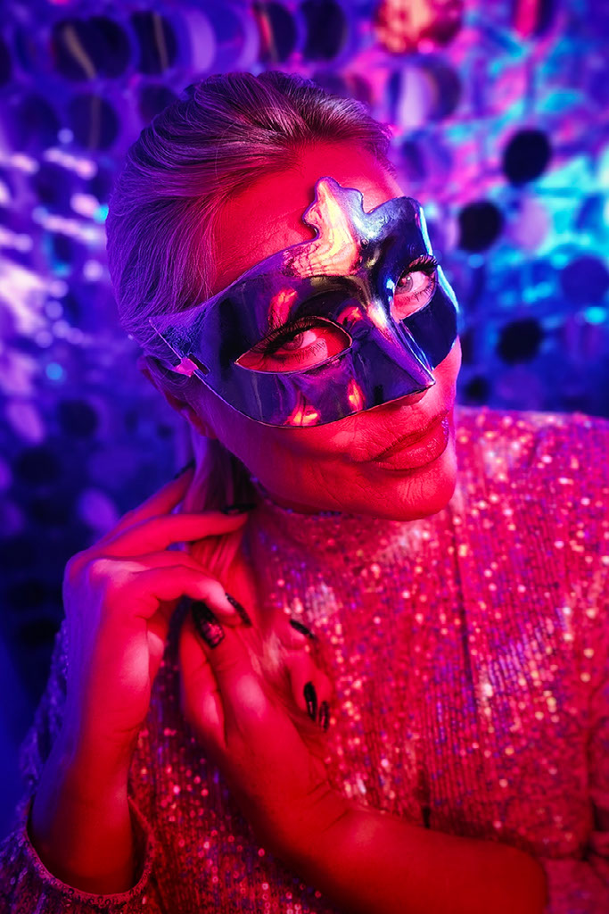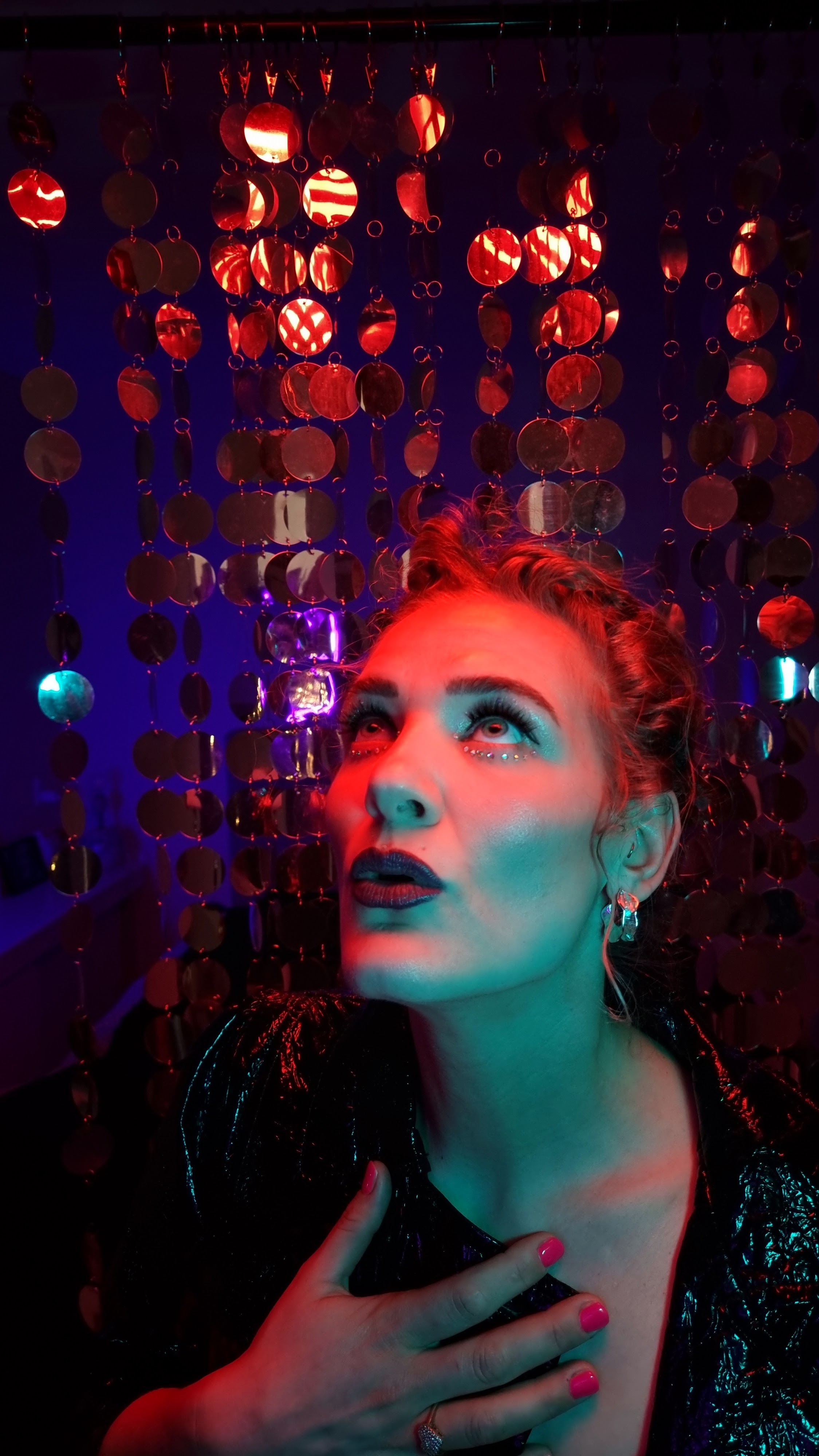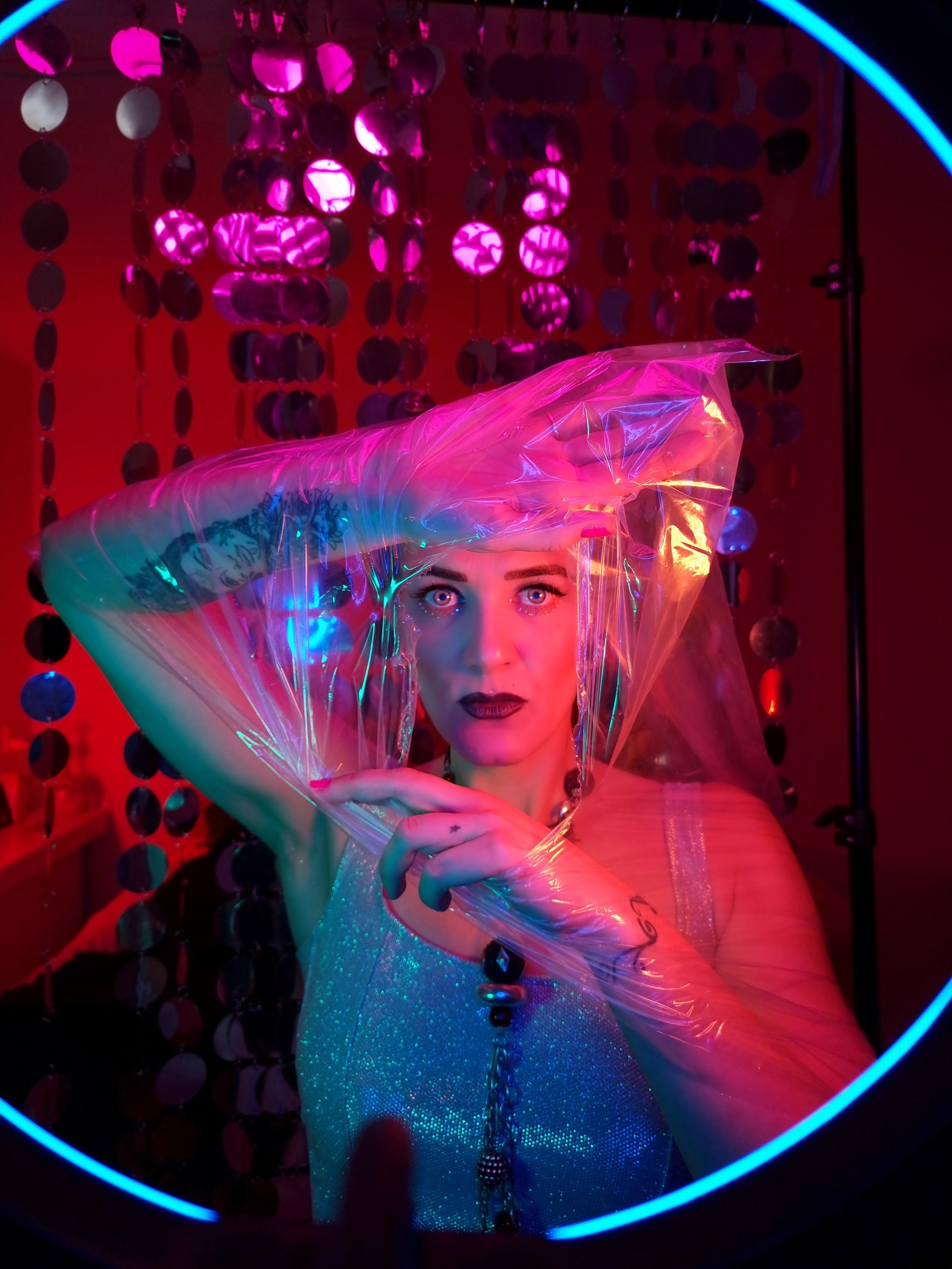 På en time fik vi sat en ‘scene’ med alt fra en softbox med Philips Hue-pærer, LED-paneler, lyskæde, paliettegardin til gennemsigtigt plastic — og efter to timer var coveret på plads.