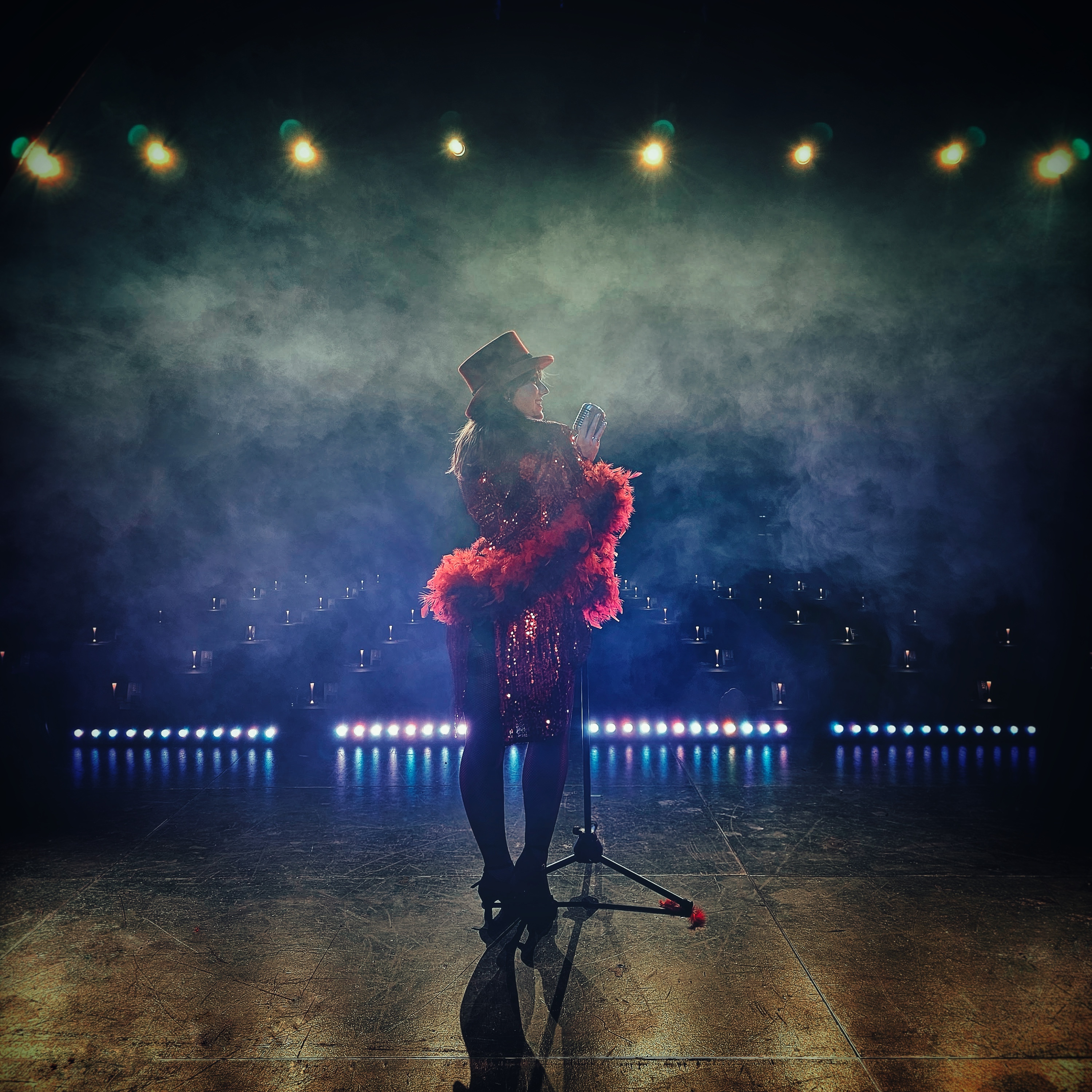 Mette Marie Fisker bruger hele repertoiret: laver hun ikke teaterskuespil, reklamefilm eller indlæser lydbøger, så synger og danser hun som her, hvor vi fangede hinanden en time inden hun skulle på scenen i et stort cabaretshow, hvor lyd og lys blev testet af. Makeup og tøj og ikke mindst gnisten var tændt, så det var bare om at ramme stemningen.