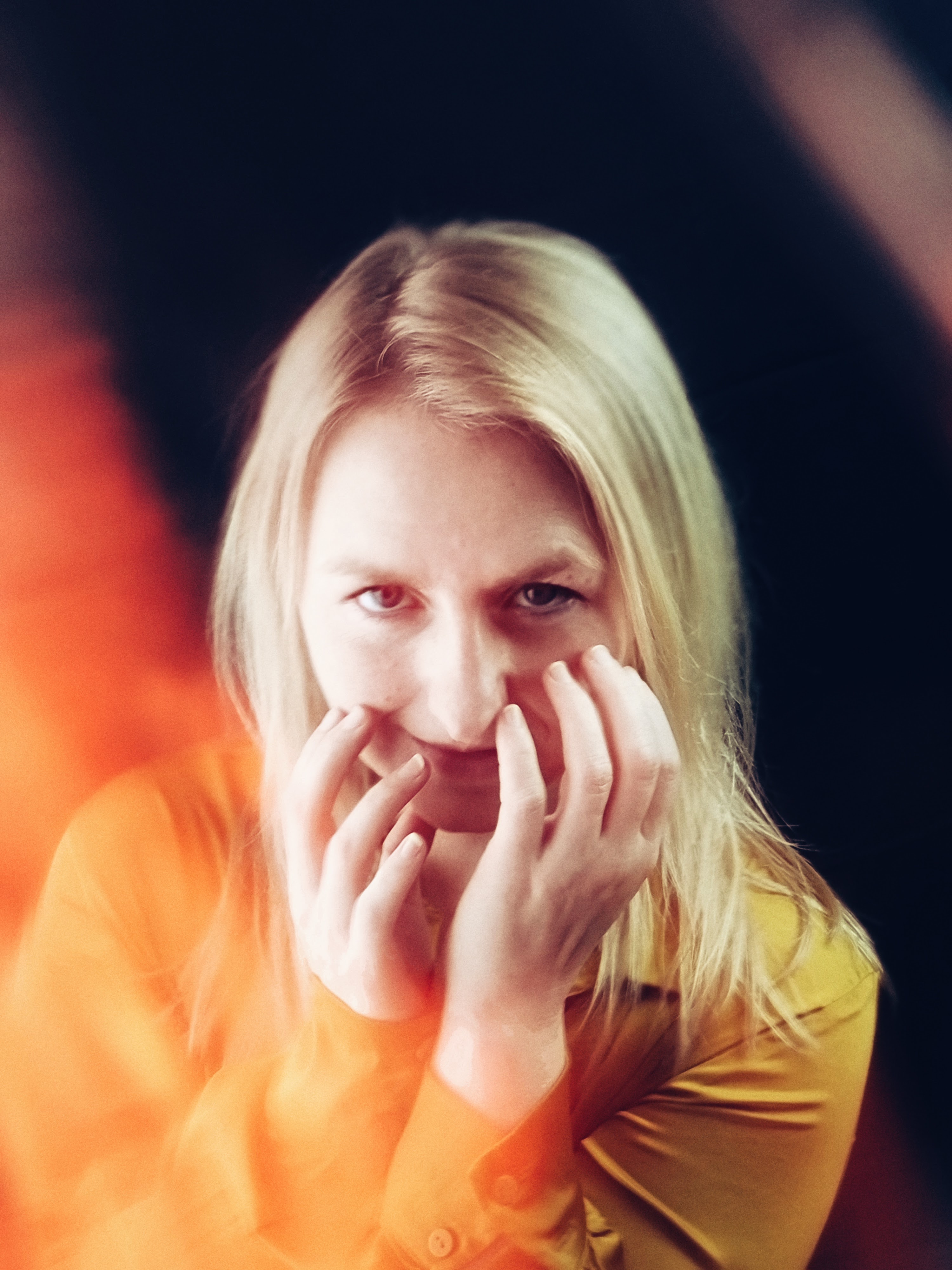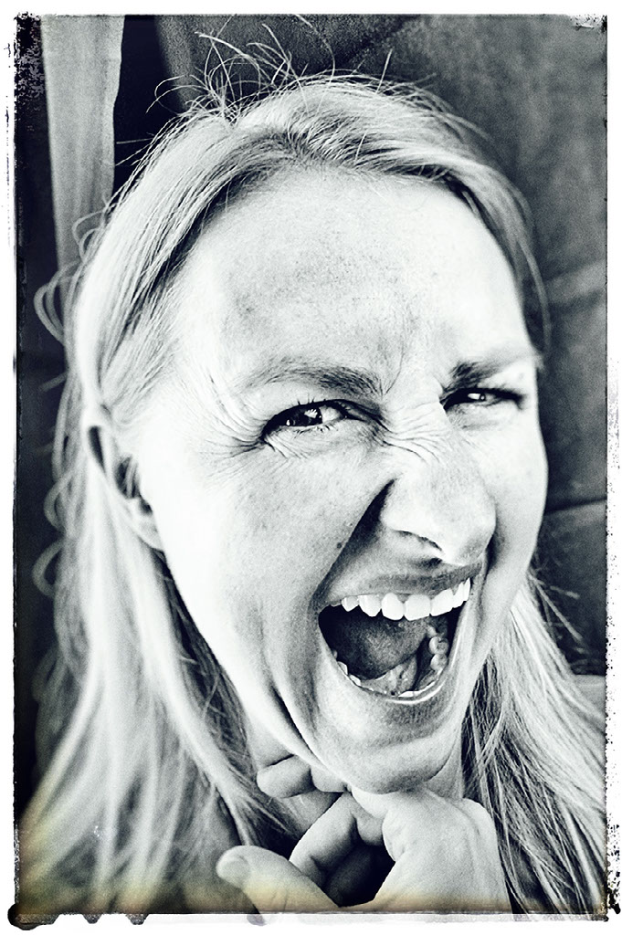 Jeg mødtes med hende i det kuperede terrain i Kregme på Nordsjælland, hvor hun foruden ‘dirt track’ mountainbike-billeder også fik ramt ‘omsorg’ med sin gigant-gule gummiand (smiler) OG sin gule regnjakke OG den gule paraply, fordi: ‘gul gør mig bare glad i låget’.