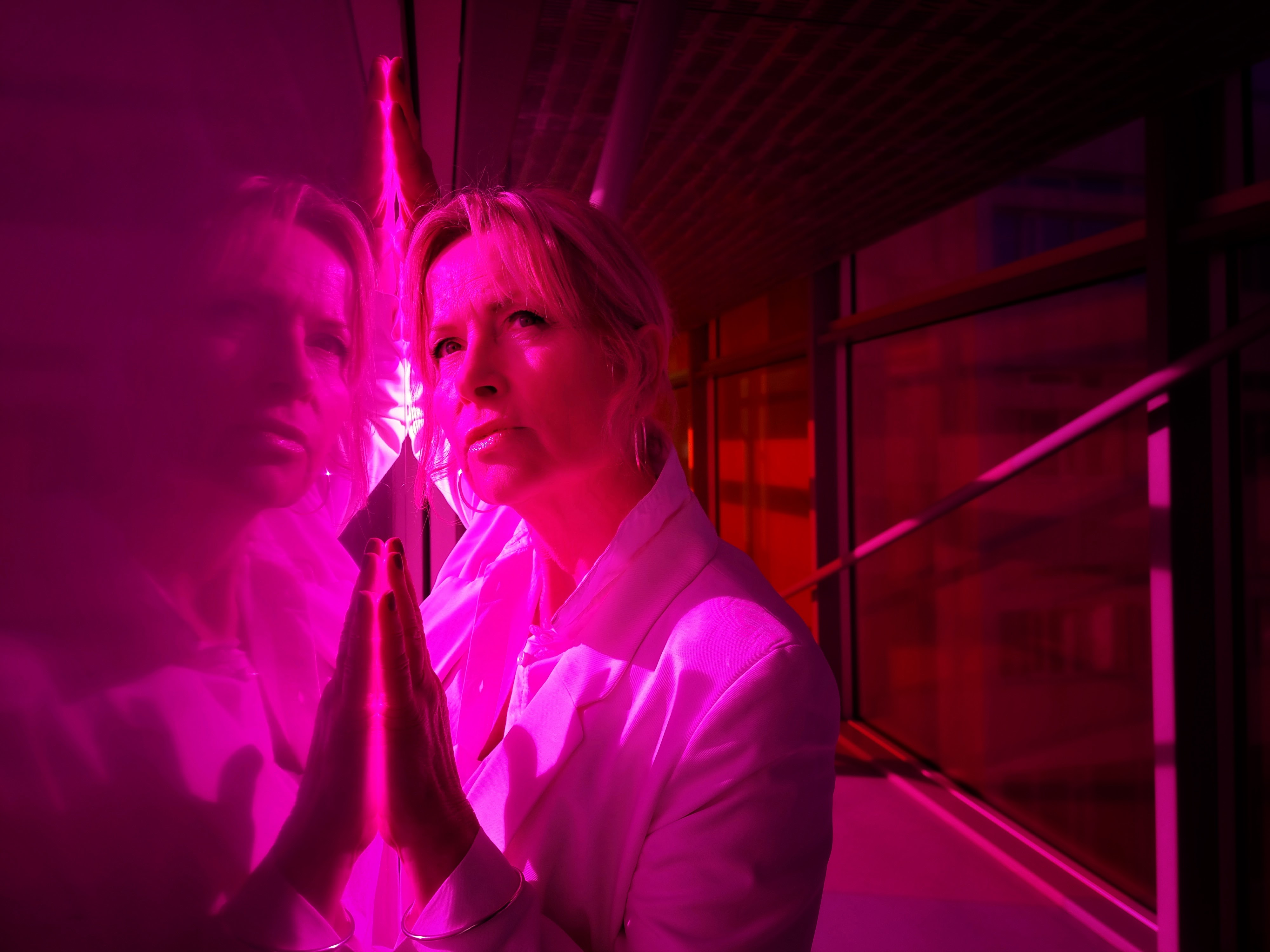 Marie-Louise Holm Jørgensen matcher en trappe ... det er i dét her tilfælde en kompliment ... skudt i Dansk Arkitekturcenter i BLOX i København. Og ja, Marie-Louise går faktisk sådan på arbejde hos Rigspolitiet så hun kender til at der bliver drejet hoveder og kommenteret.