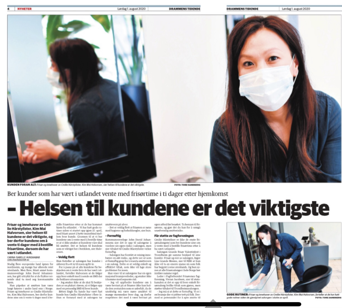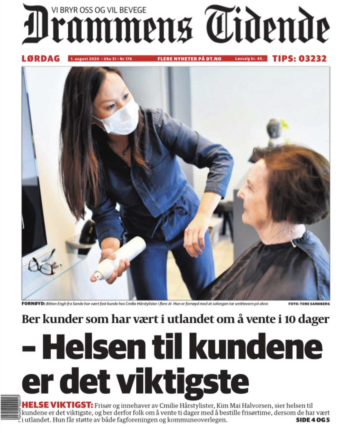 Rart å se seg selv på forsiden på Drammens tidende, men samtidig en viktig sak jeg ønsker å nå ut til publikum. Synes det er litt skummelt, samtidlig mener jeg det er viktig å dele slik at andre kan lære og bli inspirert. Mer om saken kan du lese mer på dt.no ved å søke opp Cmilie Hårstylister