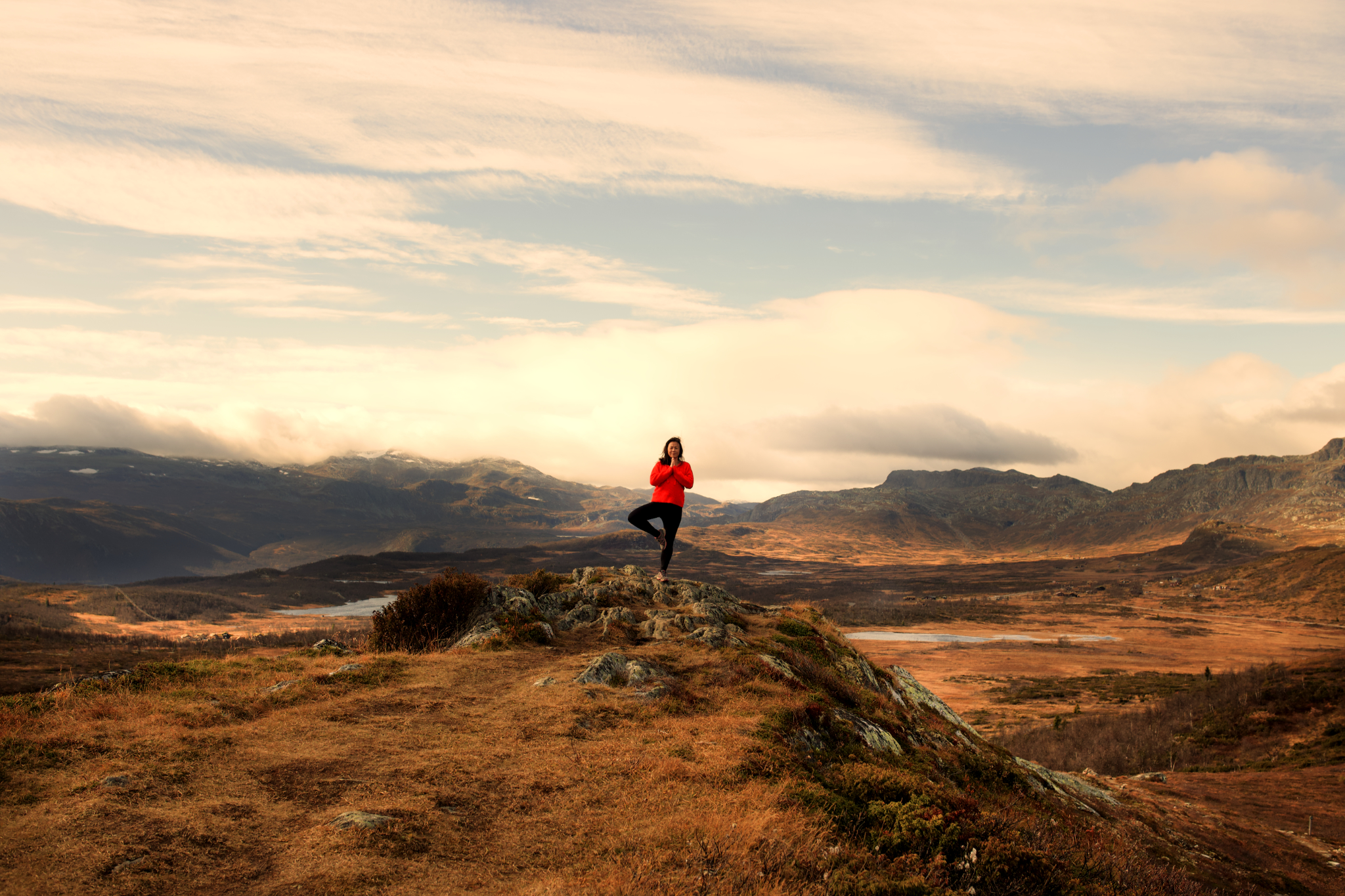 Når jeg kommer til fjells, kjenner jeg roen senker seg. I en hektisk hverdag er det kanskje ikke så lett å skape rom for alenetid. En tid hvor verden er lukket ute og mobilen er satt på lydløs. Det er viktig å lytte til kroppens signaler, endringer skjer ikke over natta men det er de små trinnene mot balanse som man fokuserer på. Det trenger ikke å være noe stort, bare et øyeblikk hvor du prøver å lukke øyene, og fokusere på pusten. Jeg har hatt mine perioder, men nå har jeg vokst meg sterkere på mine opplevelser. Det å glede seg over de små tingene i livet gjør at du vil sette mer pris på det du har. Jeg har funnet mine verktøy til å takle motgang. Mediyoga har hjulpet meg til å finne troen på meg selv, til å ta viktige valg i livet og stå i den motgangen som har kommet. Hver av oss er unike, akkurat slik vi er. Vær den beste utgaven av deg selv. Vær snill.