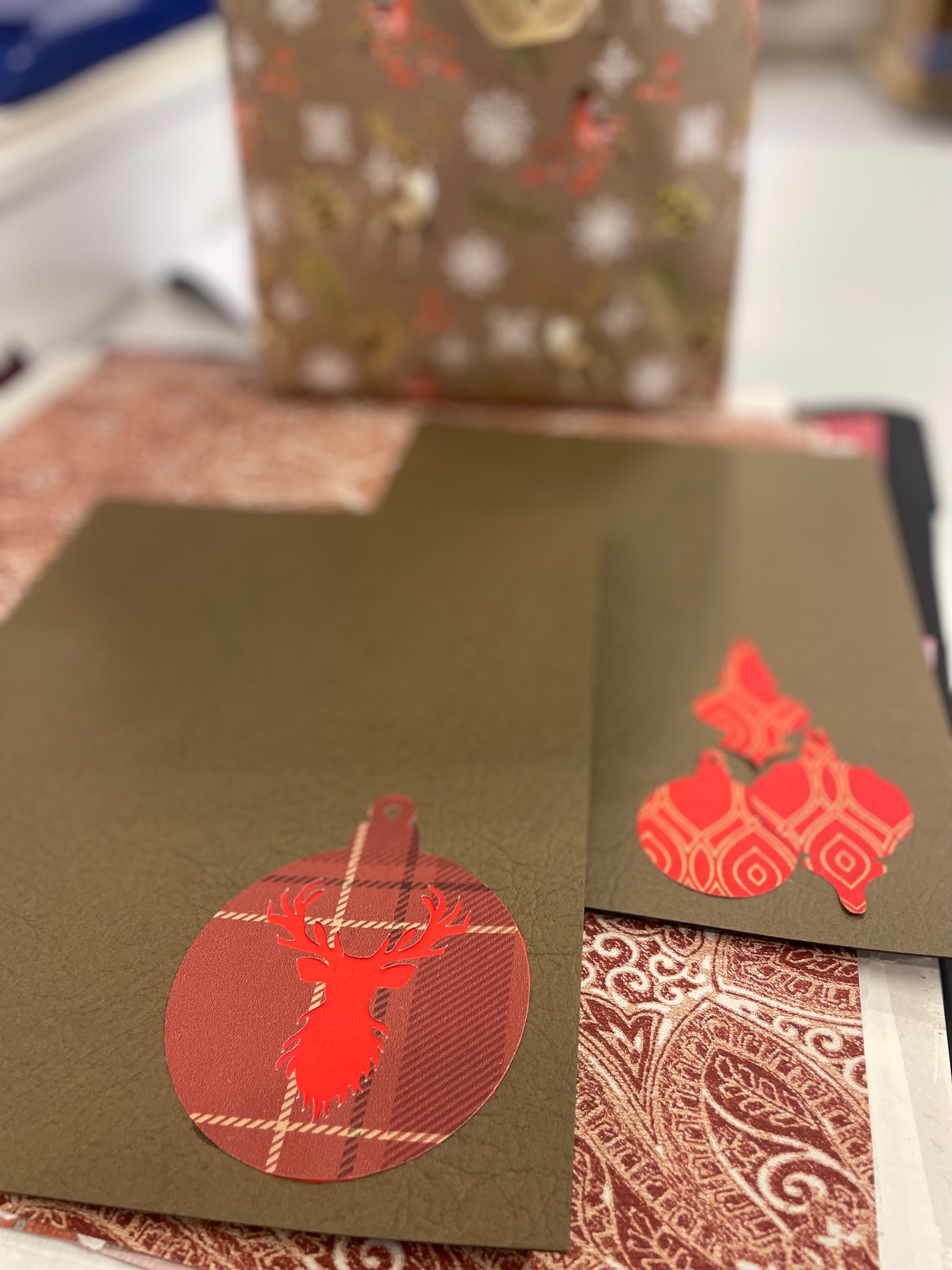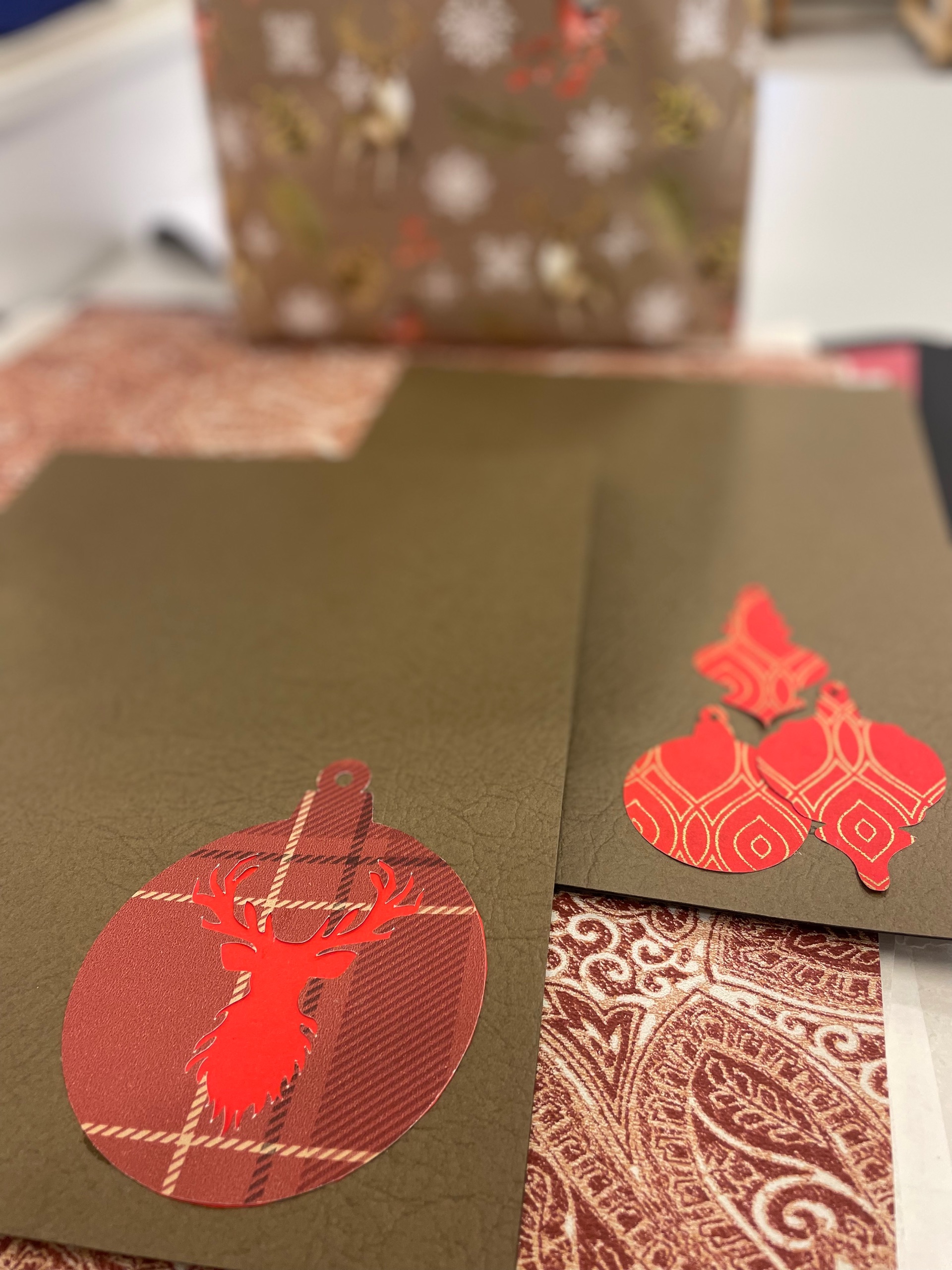 - Kjør motivet i kuttemaskinen, fjern det overflødige materialet og lim motiv på kort så har du en fin liten julehilsen!