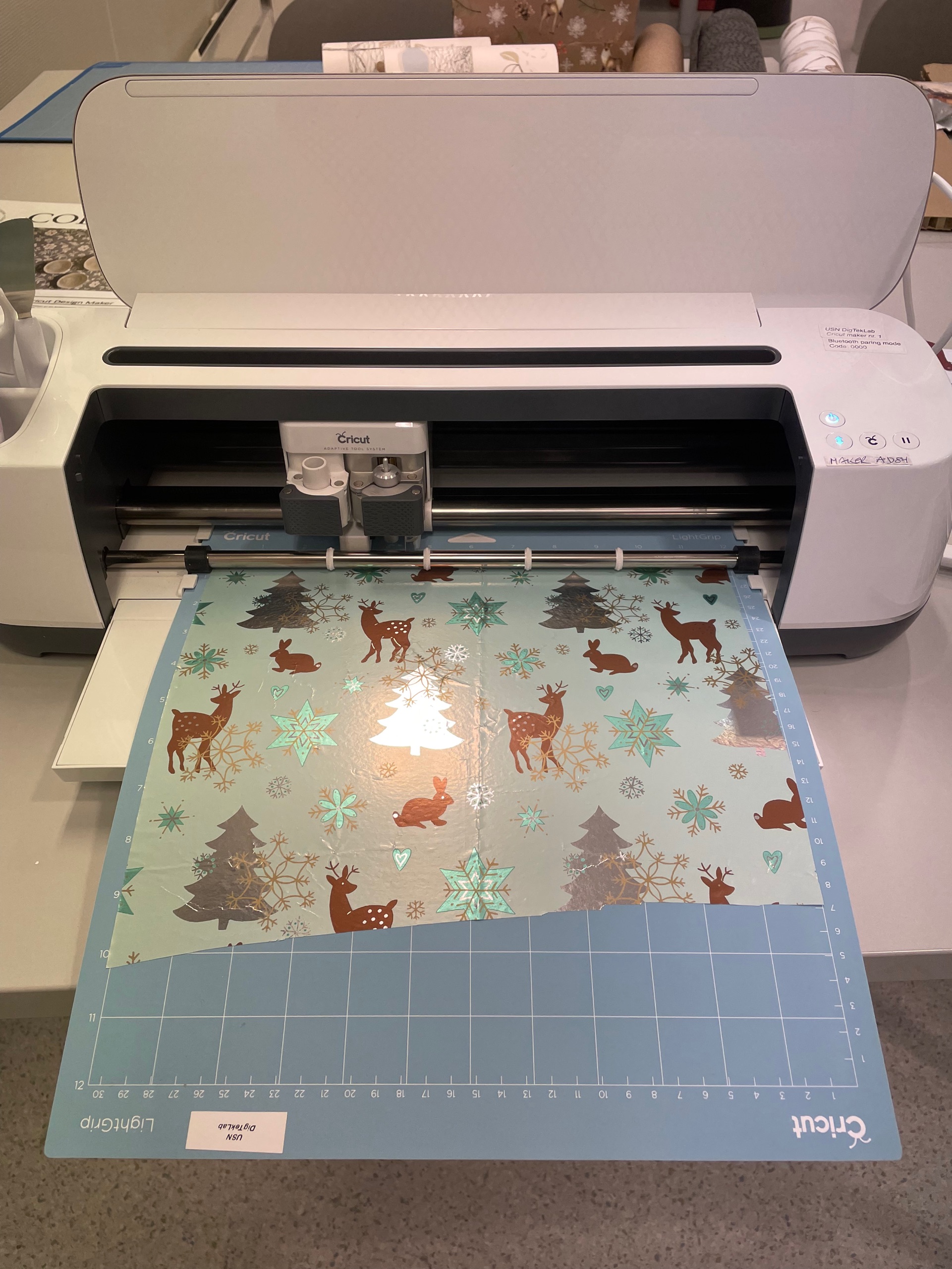 - Julepapir: her var det litt større variasjon mellom de ulike julepapirrestene, og vårt tips er å prøvekutte i papiret dere velger før dere går til egen design. Det beste vi fant var «Fine foil, 36mg» med default som er «normal» på «pressure»