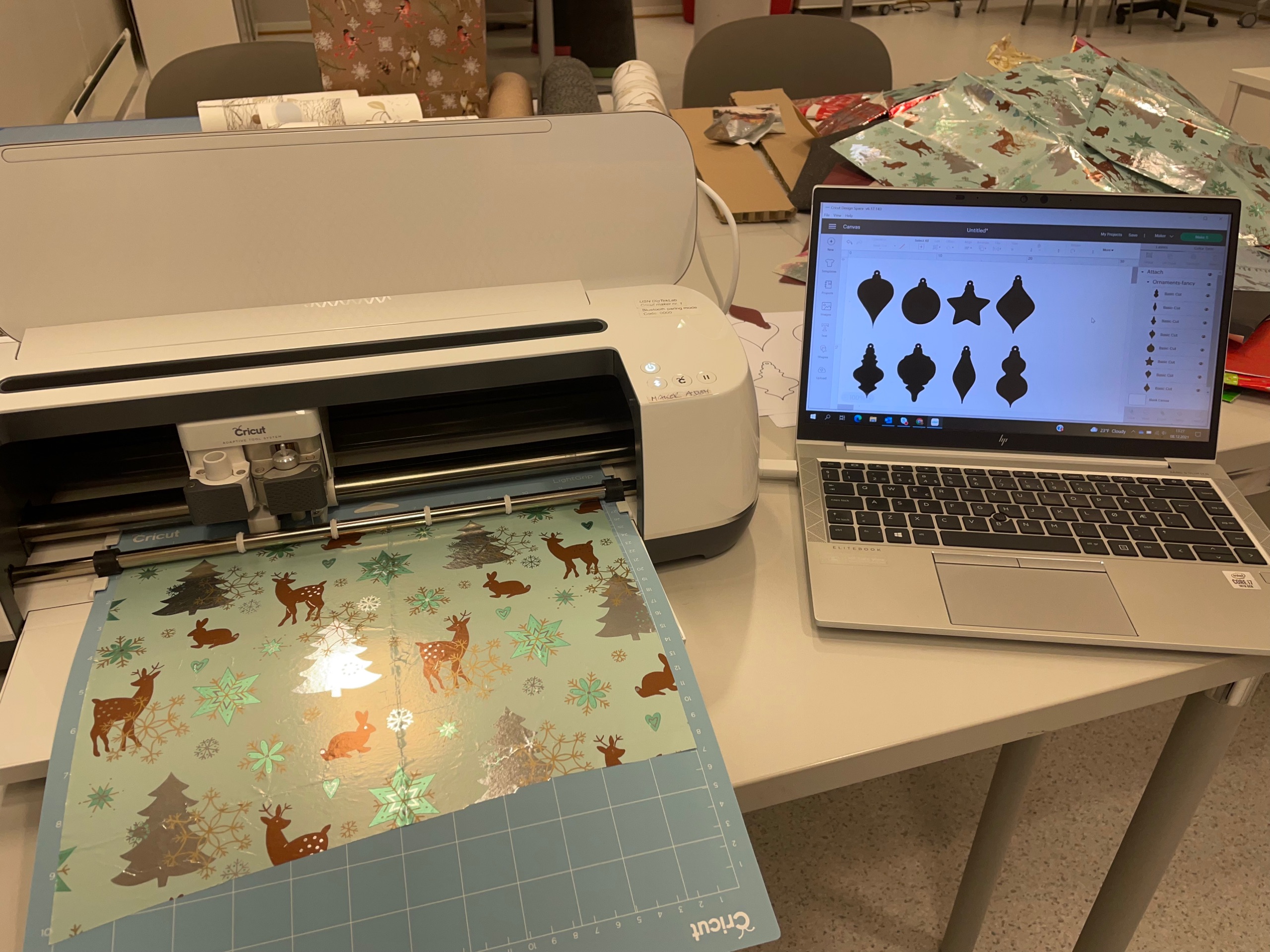 Vi bruker designverktøyet Cricut design space og smarte kuttemaskiner fra Cricut sammen med gjenbruksmaterialer for å lage en julehilsen. Gleden er stor i et klasserom når man får gå på skattejakt( og blant de voksne..) i en pappeske med vakkert julepapir, det er også gøy å lese på til &fra lappene og undres over hvem disse menneskene er og hvilken gave de fikk. Her kan vi lett ta turen innom geometriske former, stiliserte motiv, tekst og ulike symbol for jul.