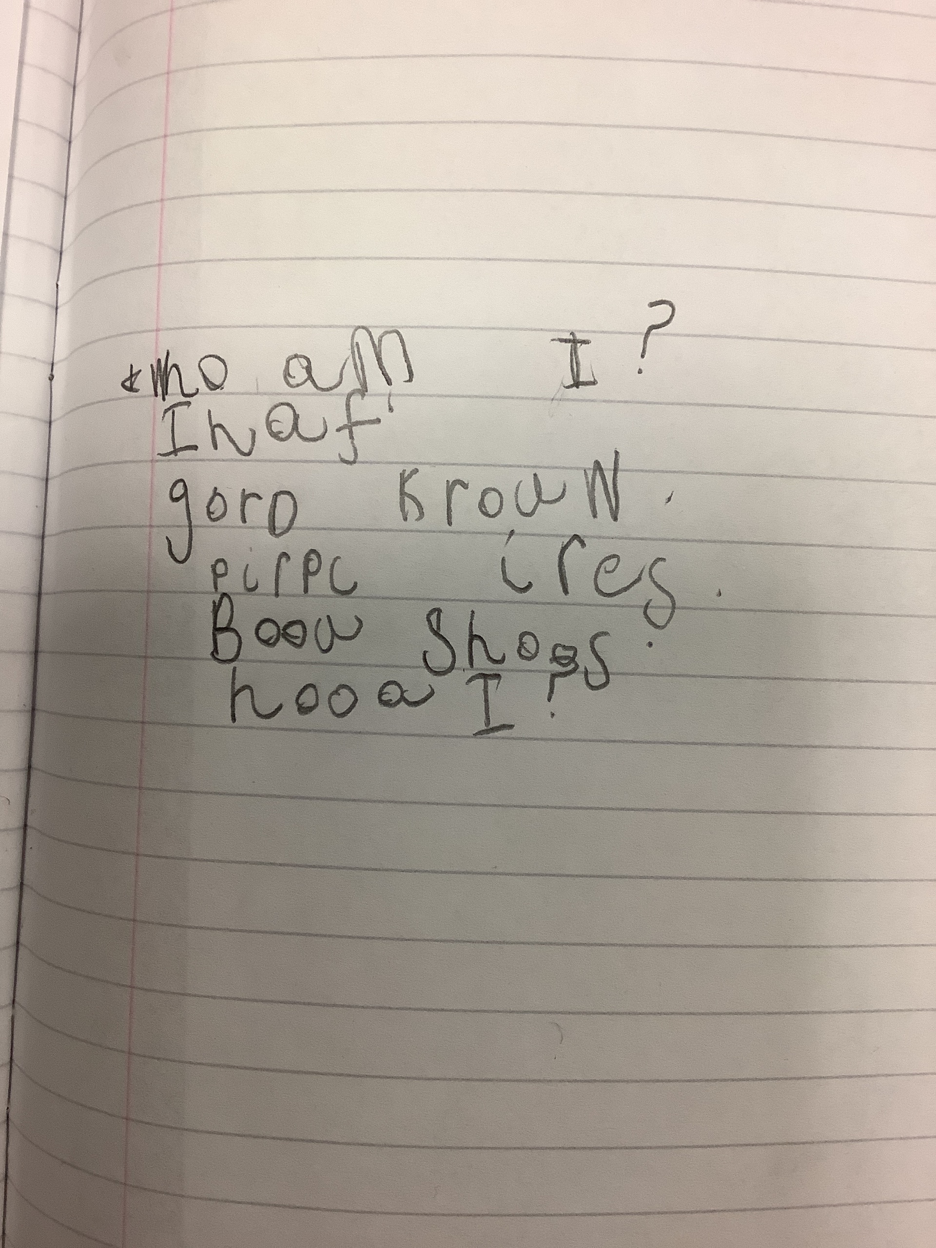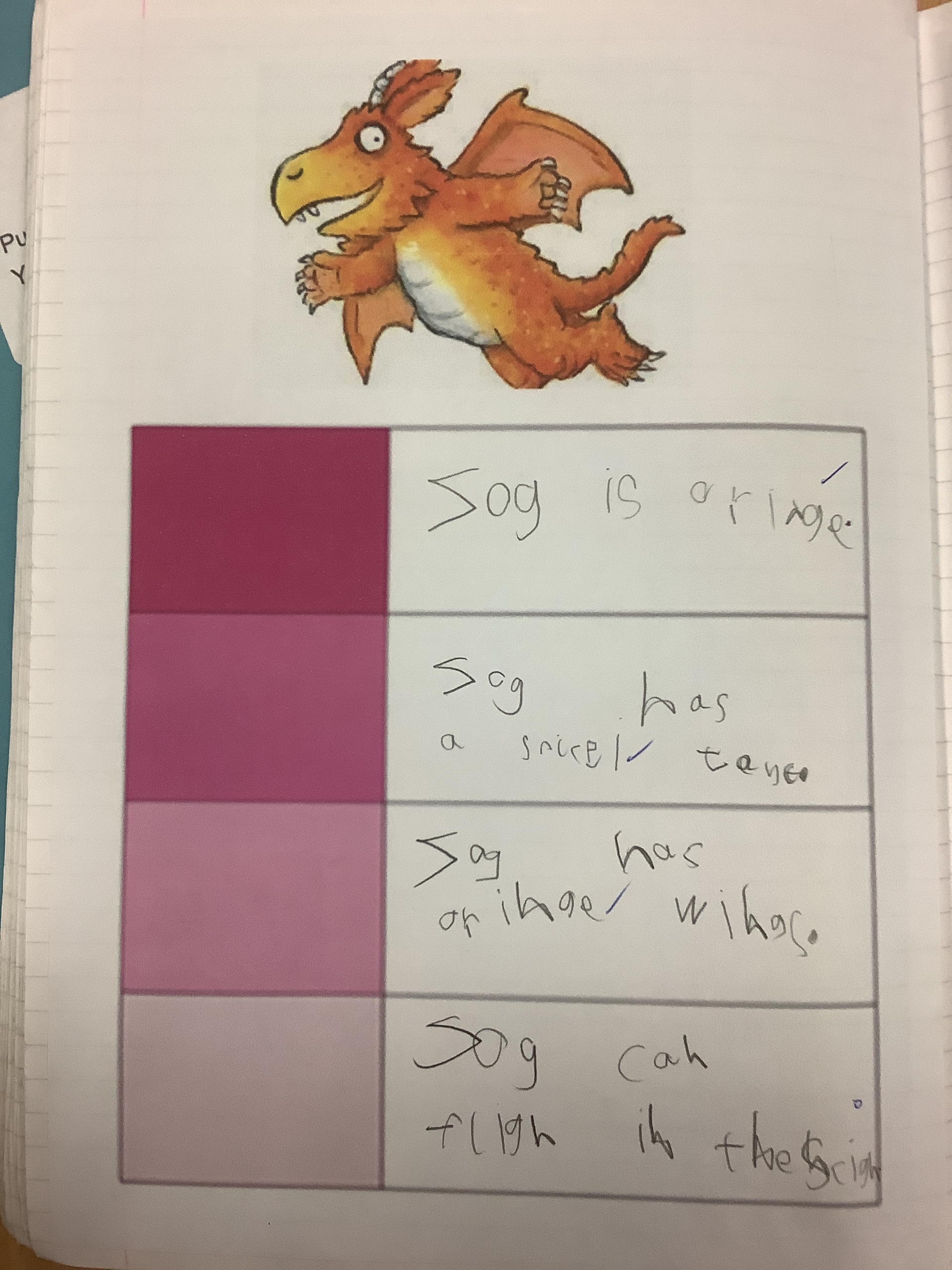 We enjoyed writing about dragons so much that we read Zog and watched the film before writing our very first ‘Who am I?’ poem based on one of the characters from Zog.