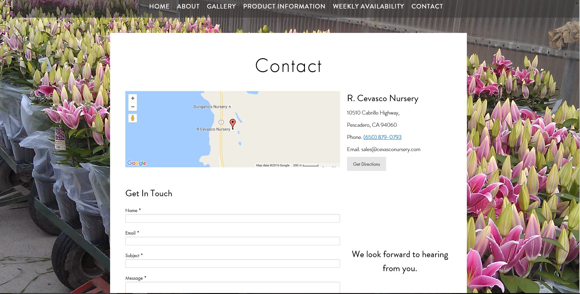 Web form: http://www.cevasconursery.com/contact