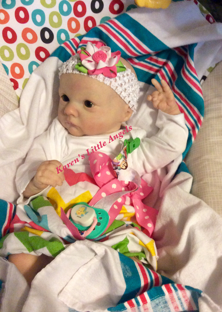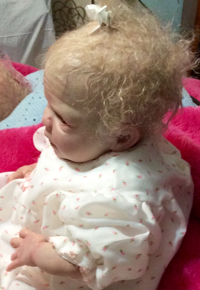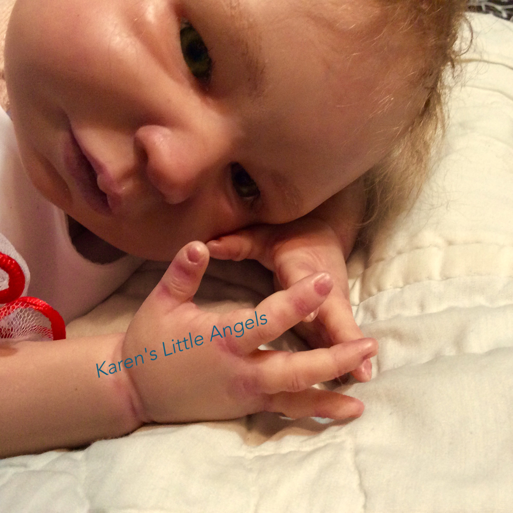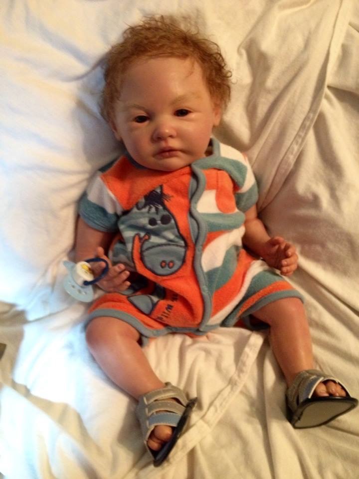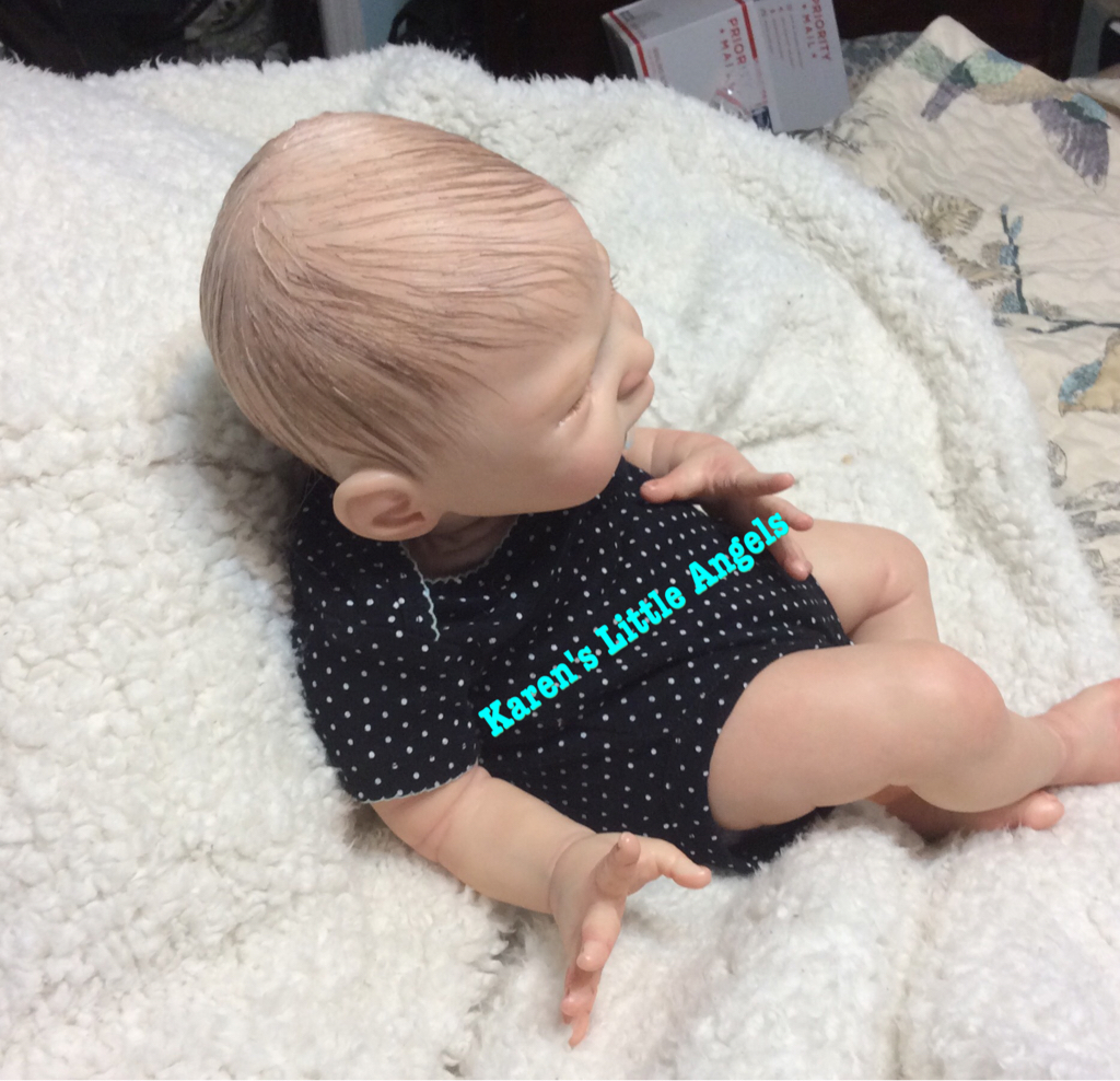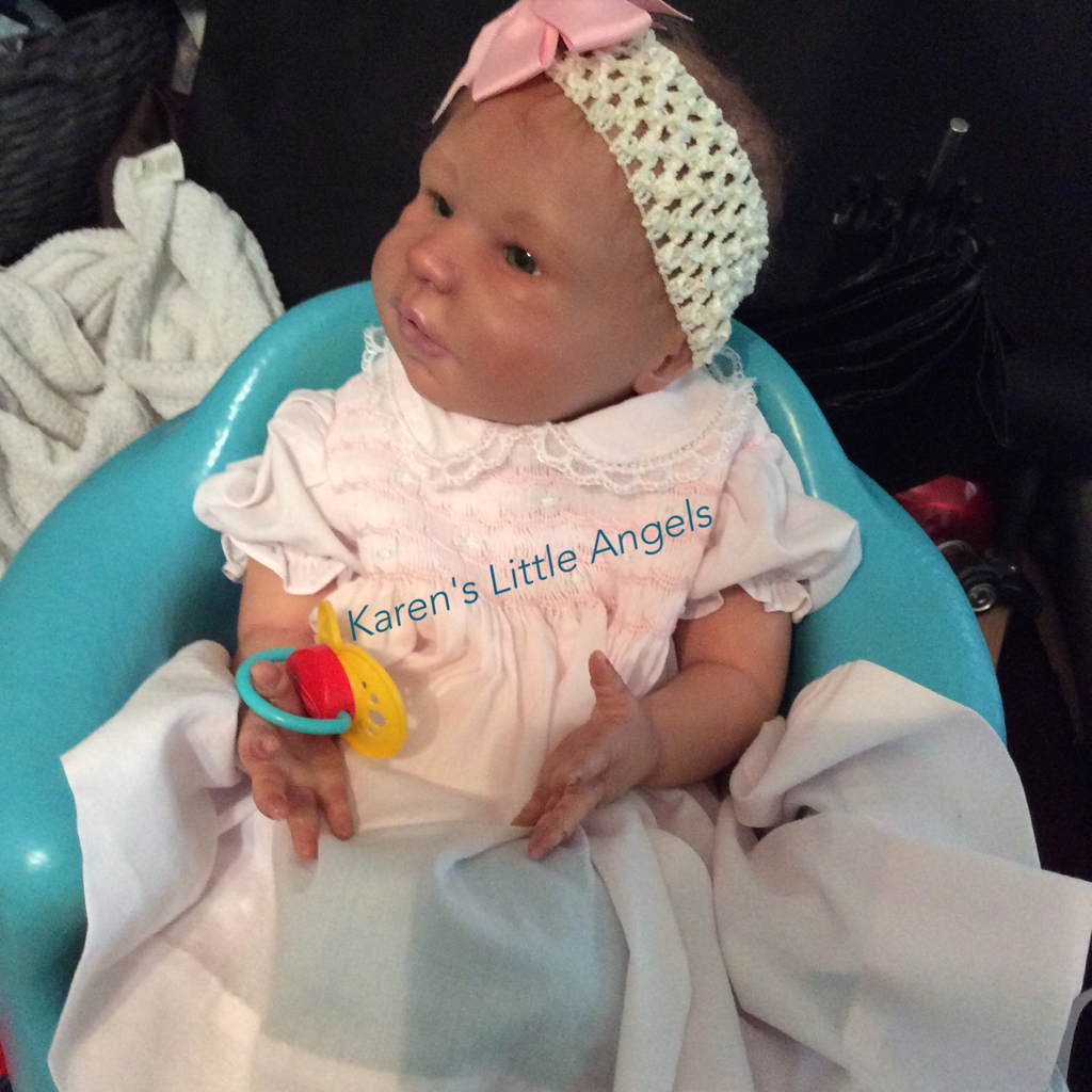 I hope you have enjoyed taking a peek at some of the babies I've "reborned", I have done memorial babies and "look alike babies. I put lots of hours into each one, and I enjoy every minute of it. These are a soft vinyl that I have painted with Genesis heat set paints, using several transparent layers for added realism. They are weighted with micro glass beads for a real baby feel, opened nostrils, magnetic pacifiers & for those with hair, it has been micro rooted with needles placing about two hairs at a time, then sealed.