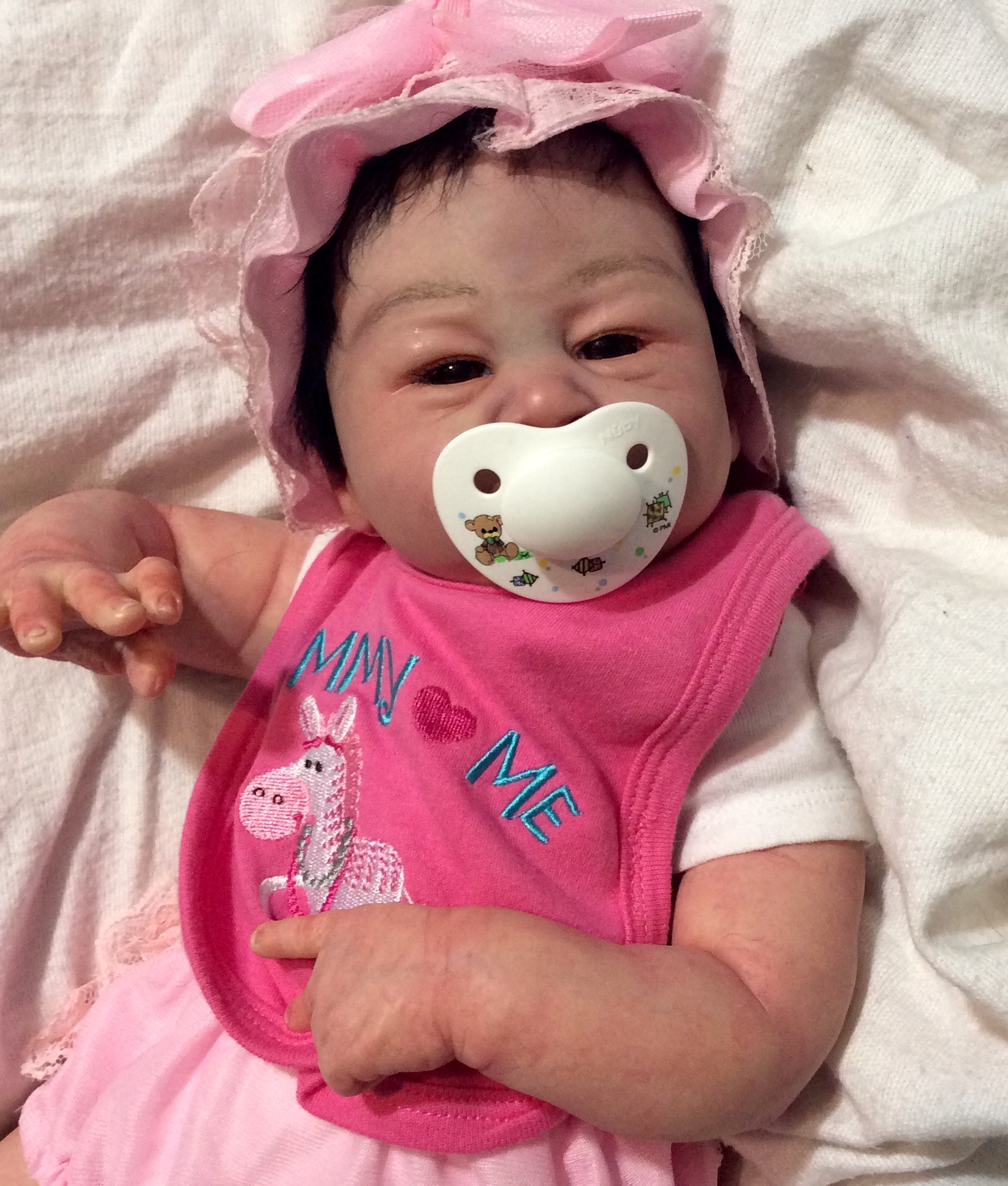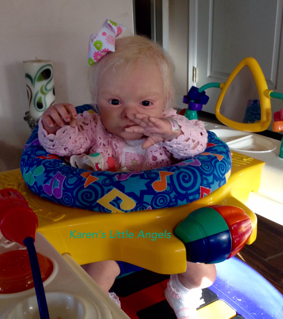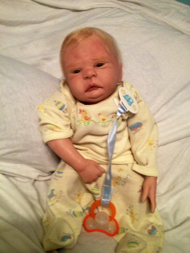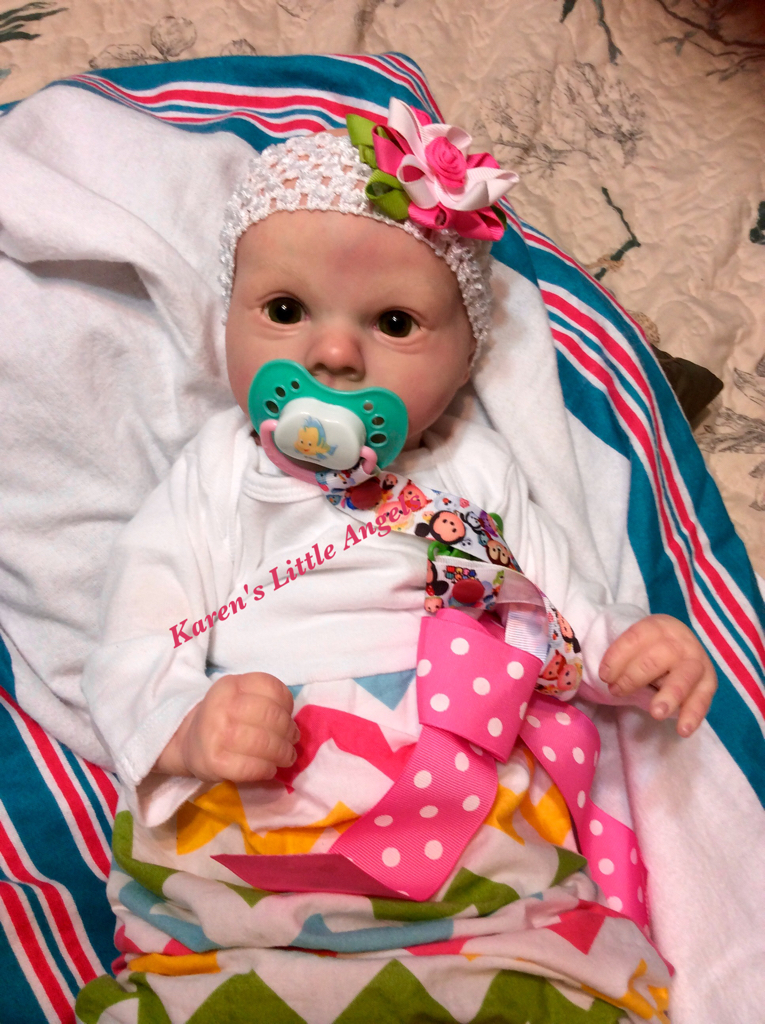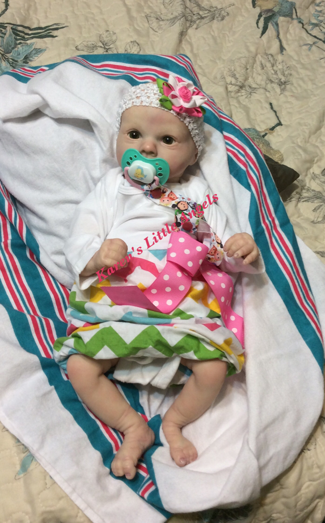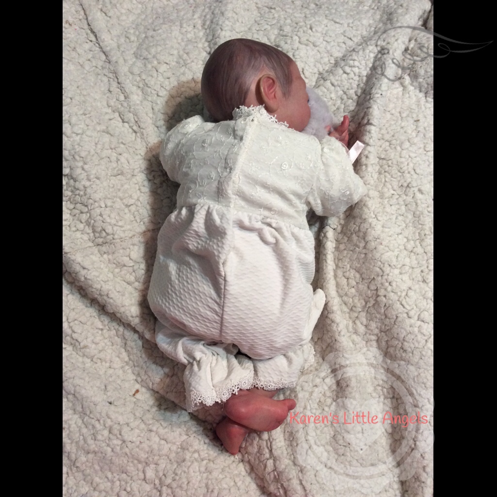 I hope you have enjoyed taking a peek at some of the babies I've "reborned", I have done memorial babies and "look alike babies. I put lots of hours into each one, and I enjoy every minute of it. These are a soft vinyl that I have painted with Genesis heat set paints, using several transparent layers for added realism. They are weighted with micro glass beads for a real baby feel, opened nostrils, magnetic pacifiers & for those with hair, it has been micro rooted with needles placing about two hairs at a time, then sealed.