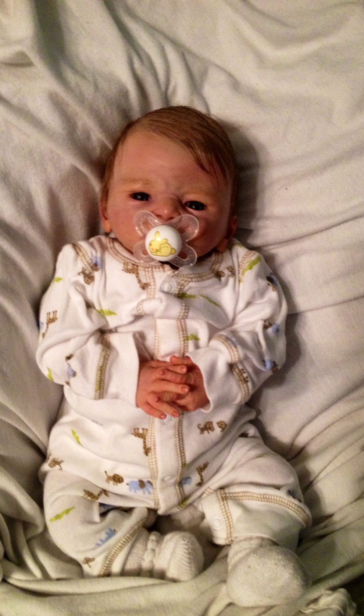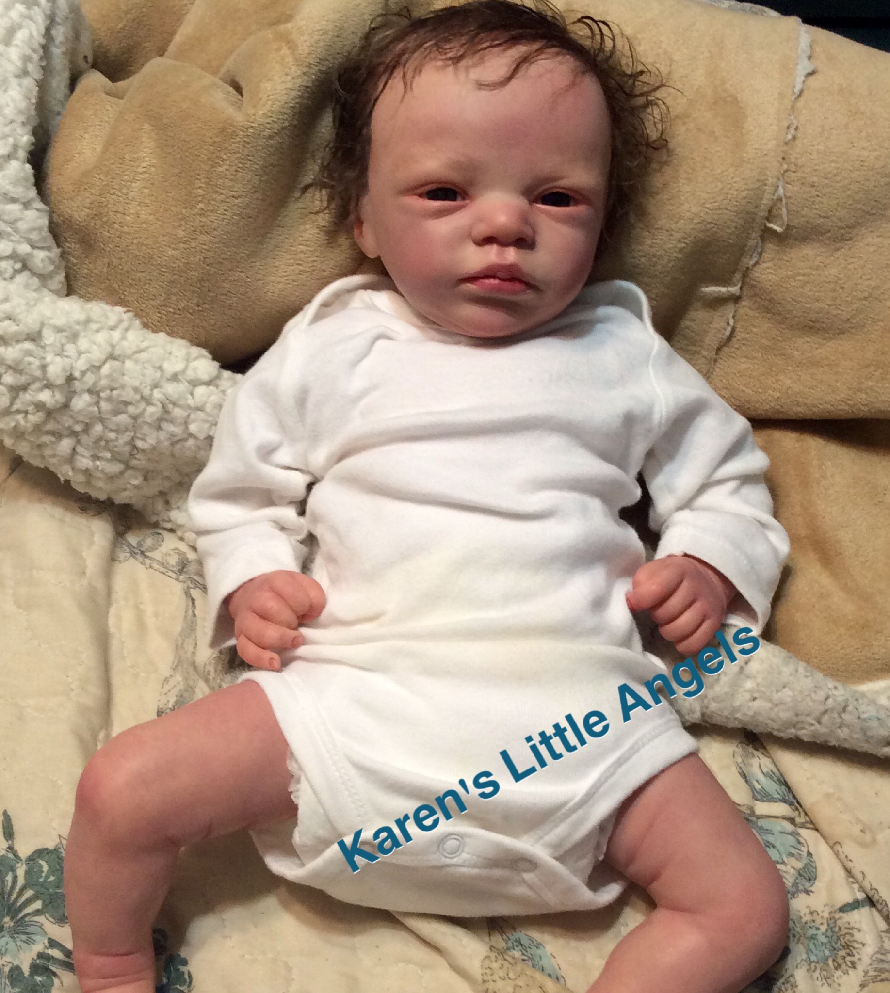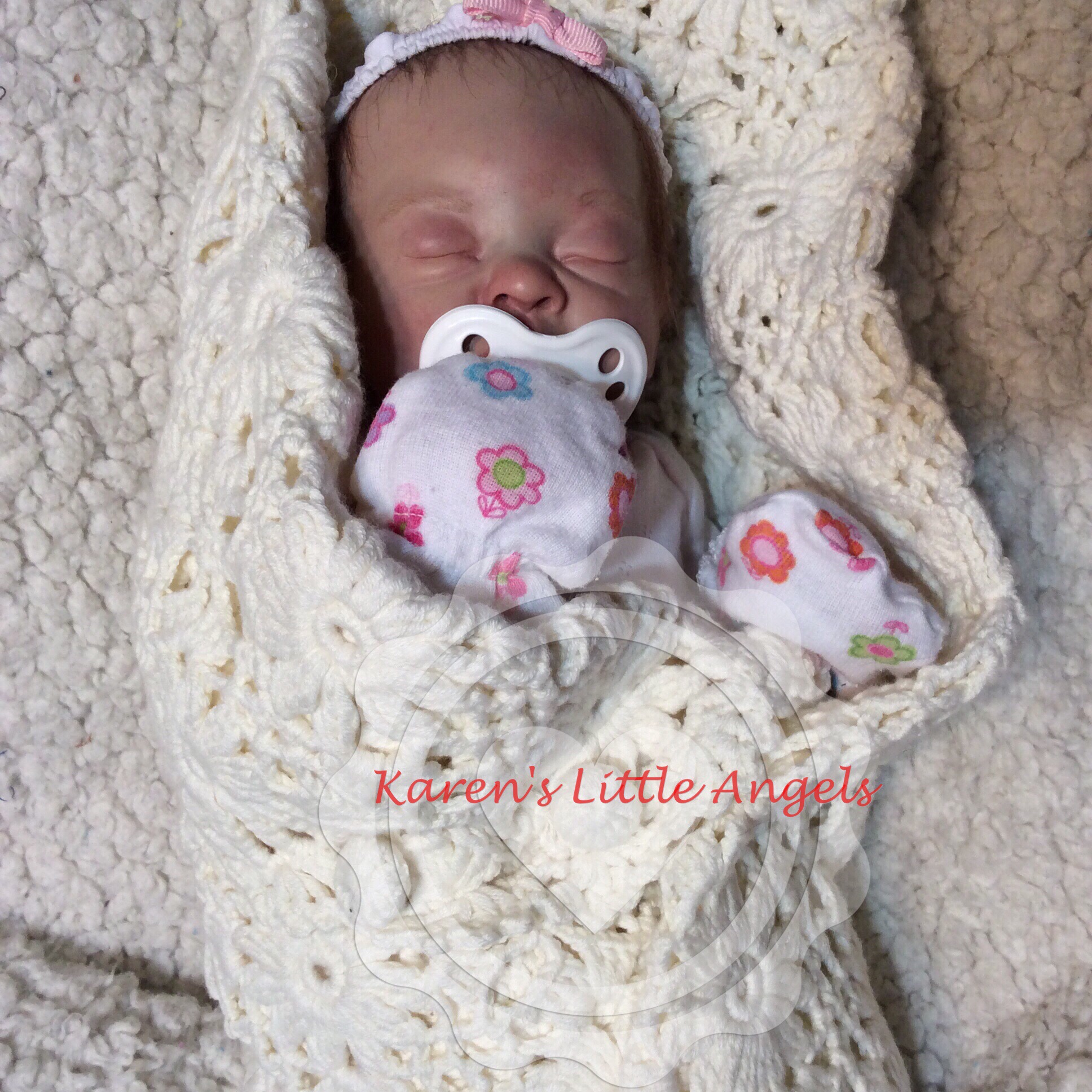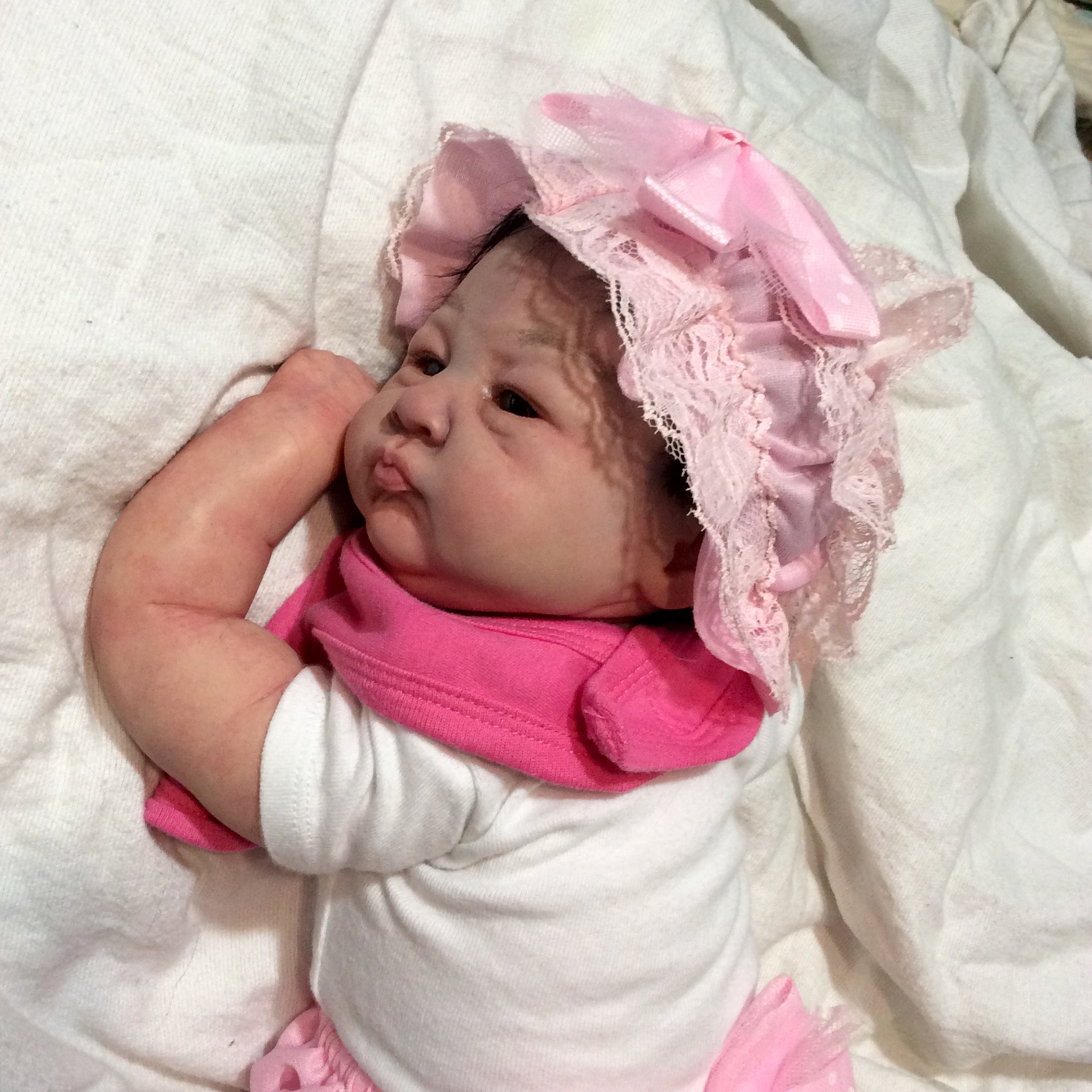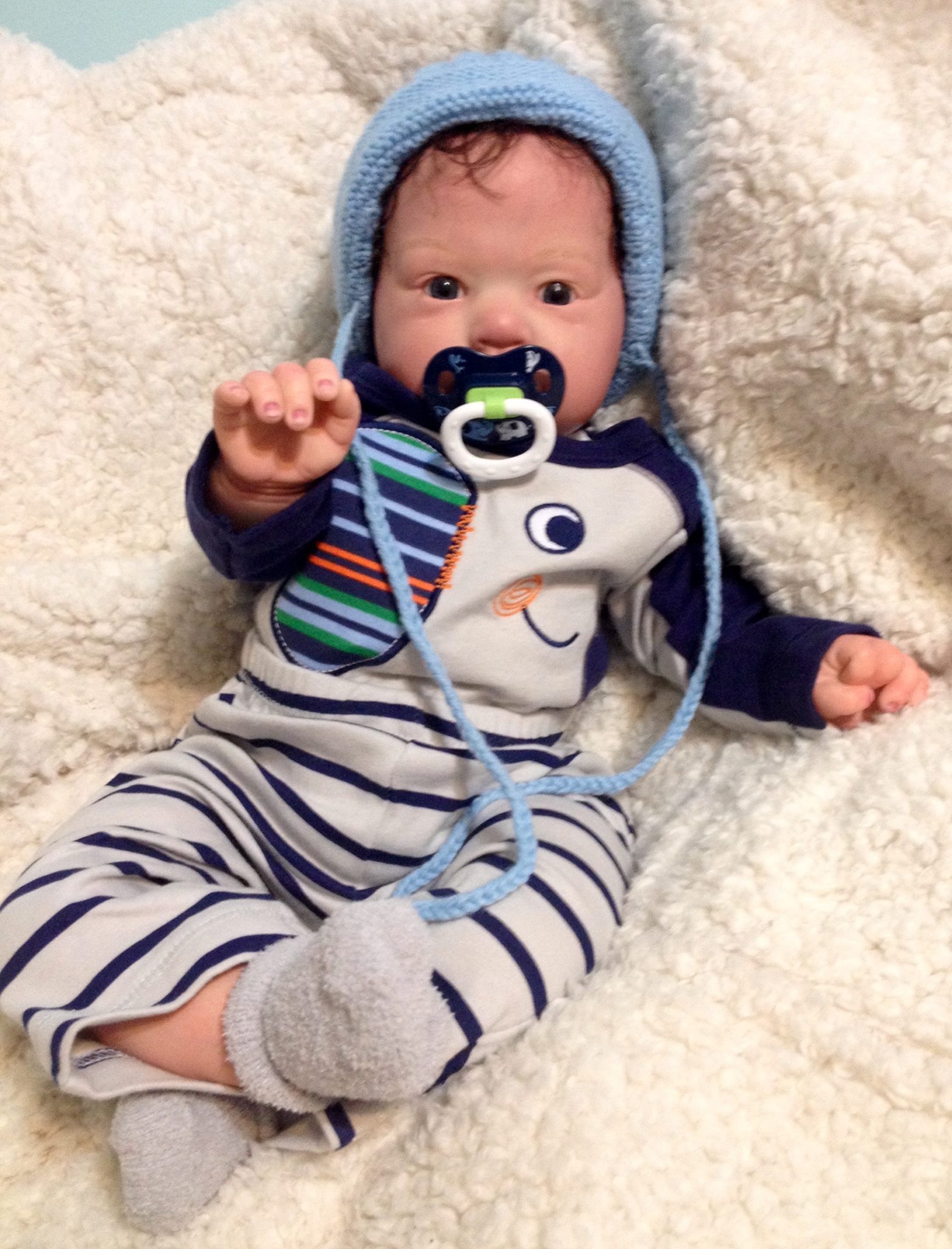 I hope you have enjoyed taking a peek at some of the babies I've "reborned", I have done memorial babies and "look alike babies. I put lots of hours into each one, and I enjoy every minute of it. These are a soft vinyl that I have painted with Genesis heat set paints, using several transparent layers for added realism. They are weighted with micro glass beads for a real baby feel, opened nostrils, magnetic pacifiers & for those with hair, it has been micro rooted with needles placing about two hairs at a time, then sealed.