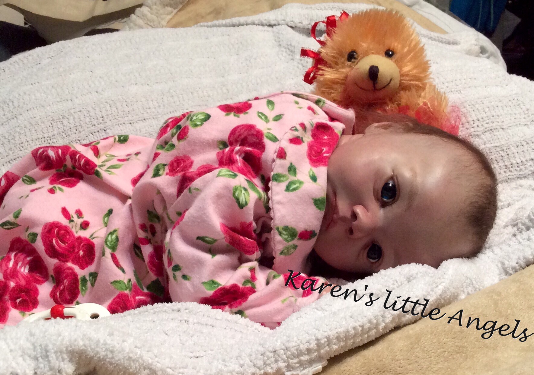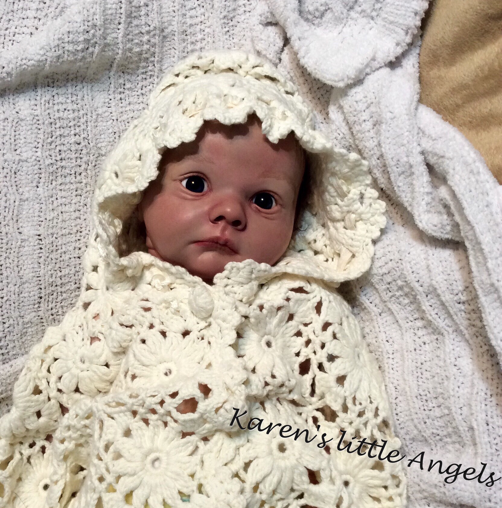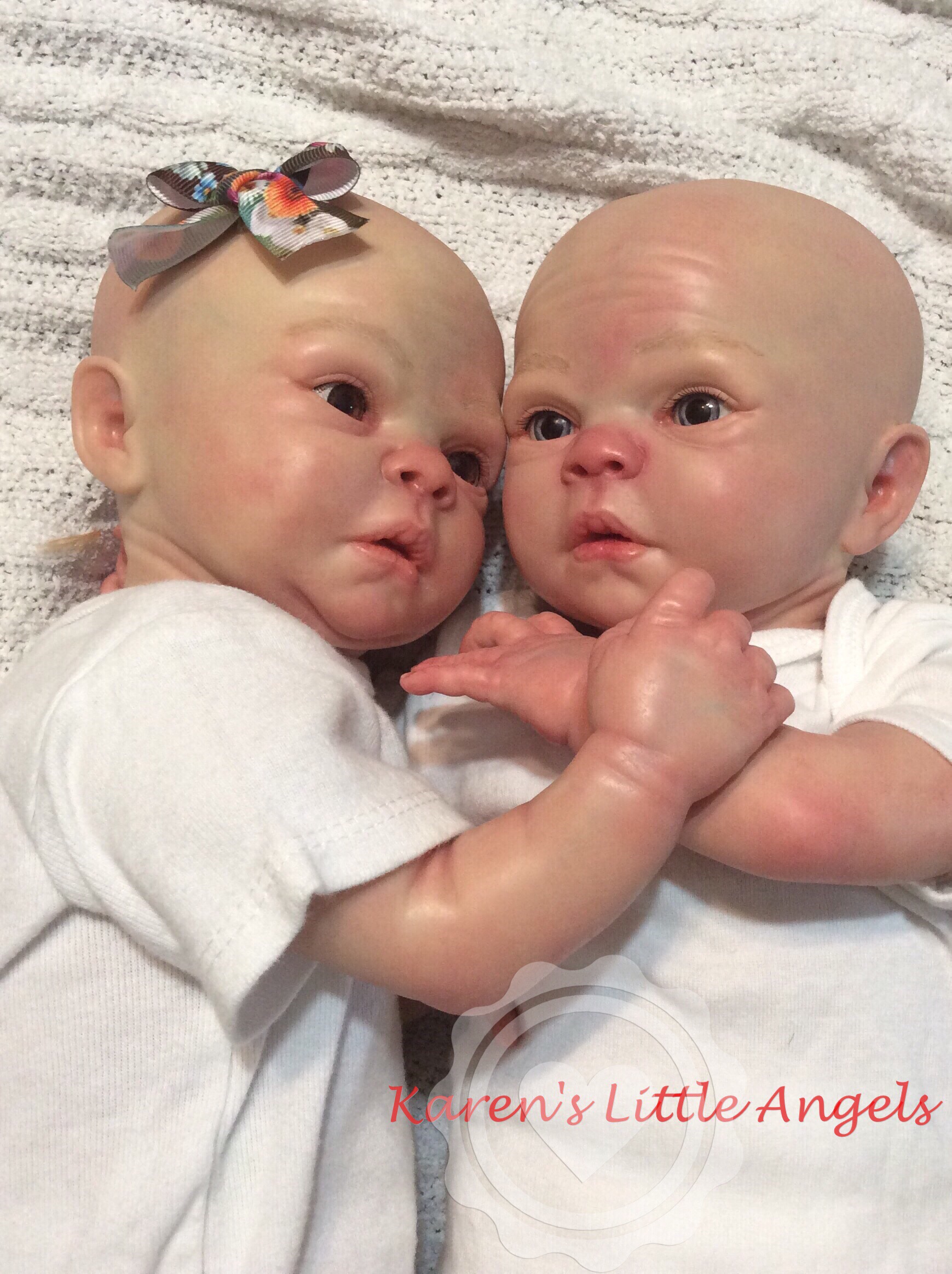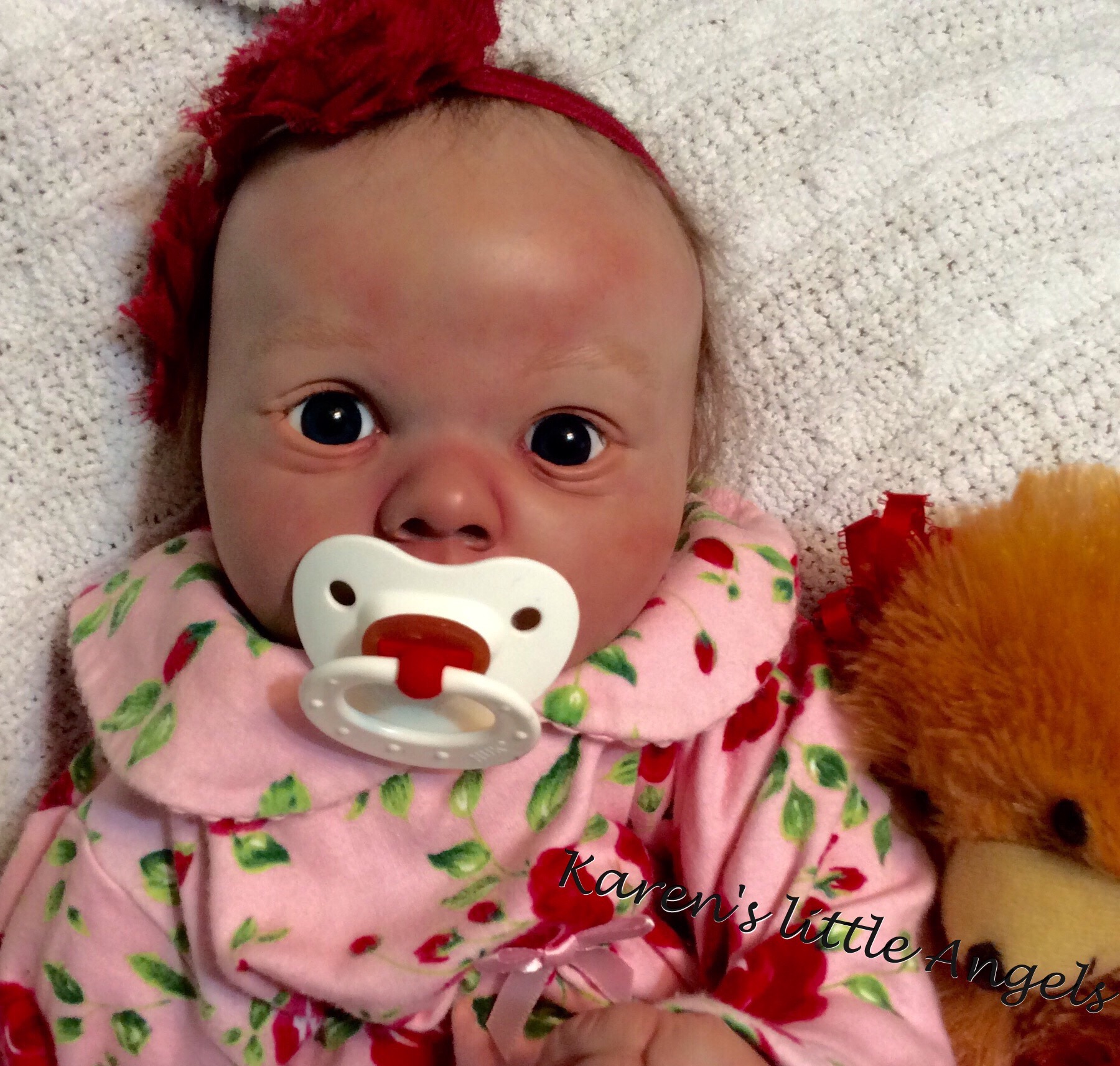 I hope you have enjoyed taking a peek at some of the babies I've "reborned", I have done memorial babies and "look alike babies. I put lots of hours into each one, and I enjoy every minute of it. These are a soft vinyl that I have painted with Genesis heat set paints, using several transparent layers for added realism. They are weighted with micro glass beads for a real baby feel, opened nostrils, magnetic pacifiers & for those with hair, it has been micro rooted with needles placing about two hairs at a time, then sealed.