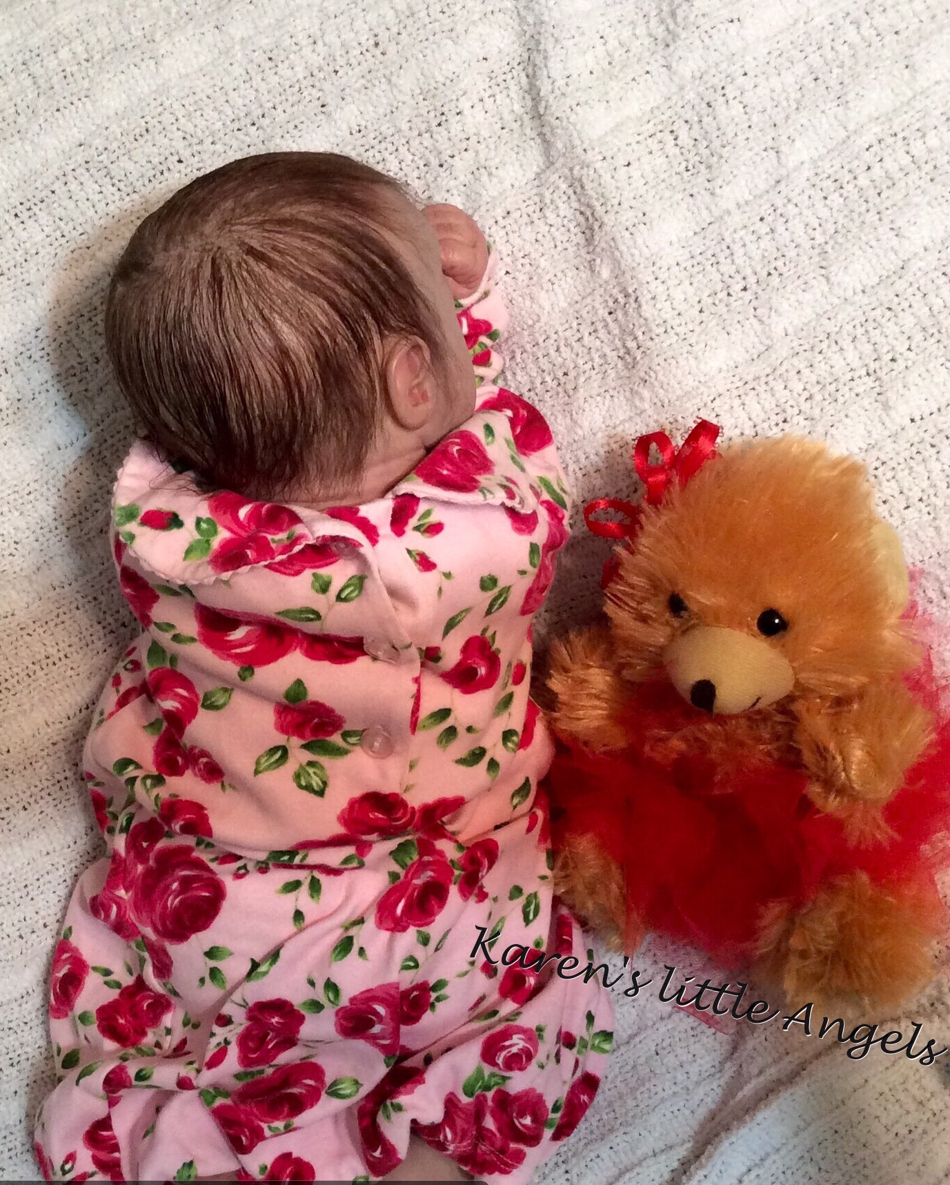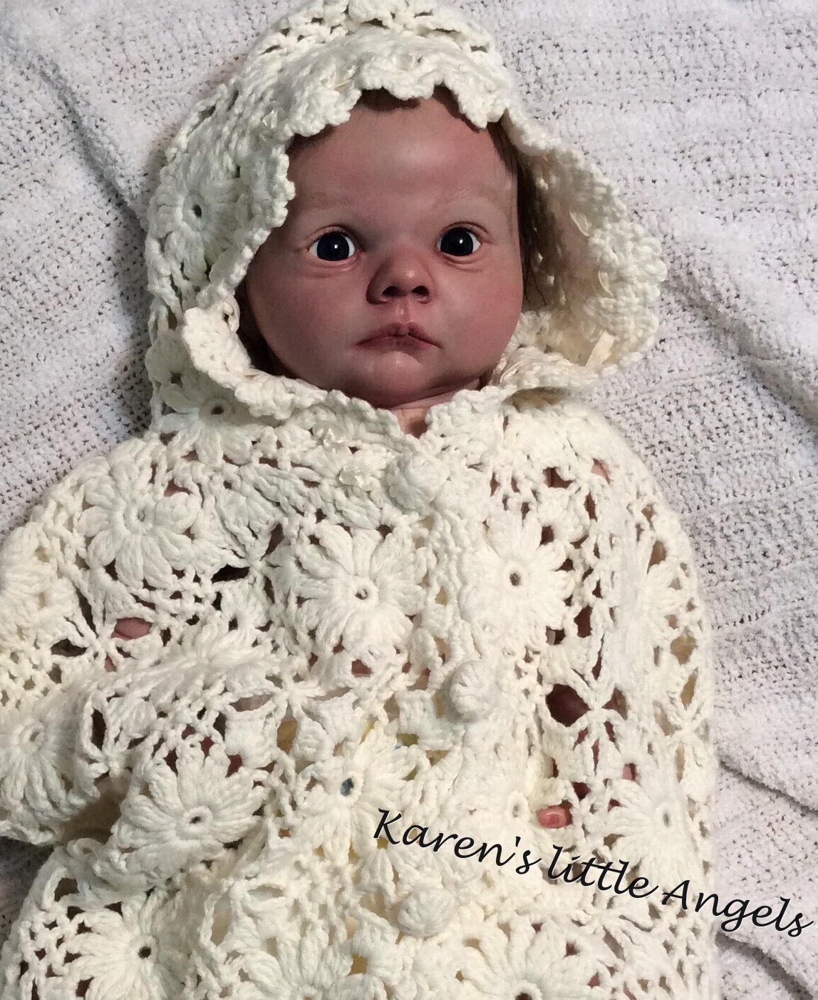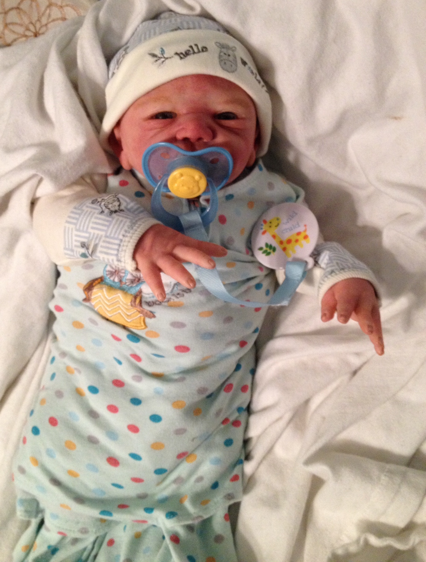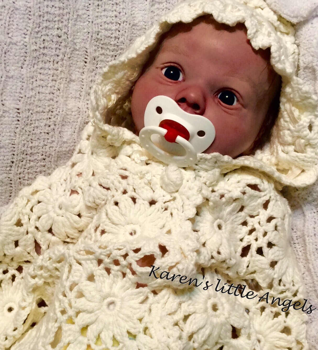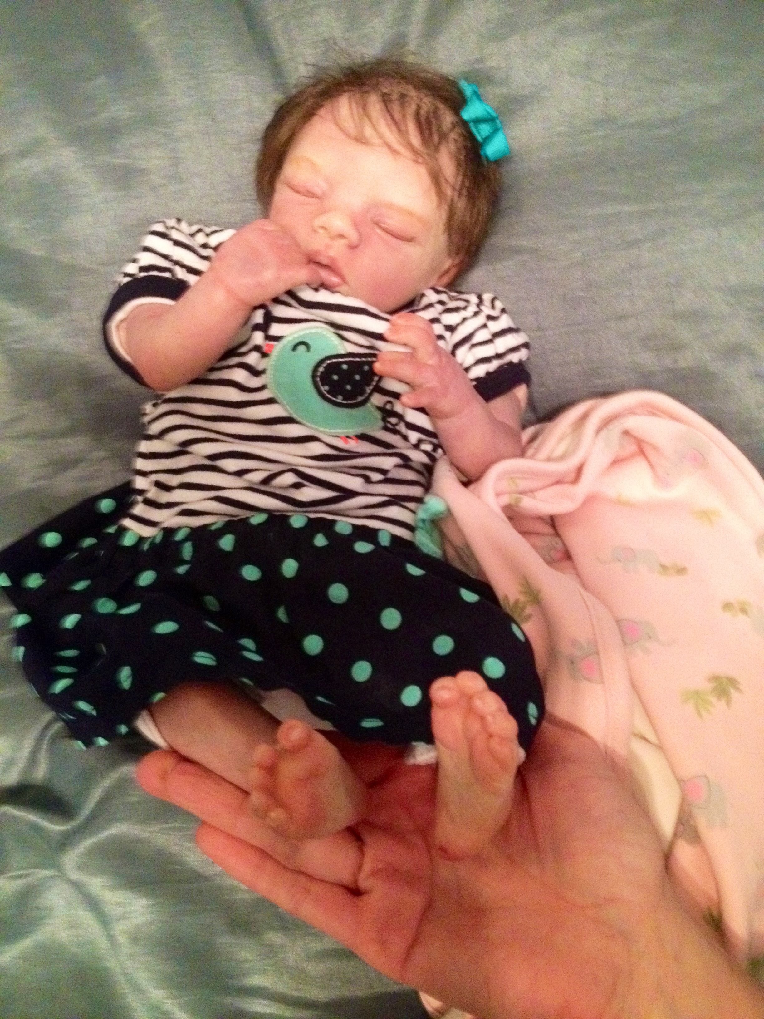 I hope you have enjoyed taking a peek at some of the babies I've "reborned", I have done memorial babies and "look alike babies. I put lots of hours into each one, and I enjoy every minute of it. These are a soft vinyl that I have painted with Genesis heat set paints, using several transparent layers for added realism. They are weighted with micro glass beads for a real baby feel, opened nostrils, magnetic pacifiers & for those with hair, it has been micro rooted with needles placing about two hairs at a time, then sealed.