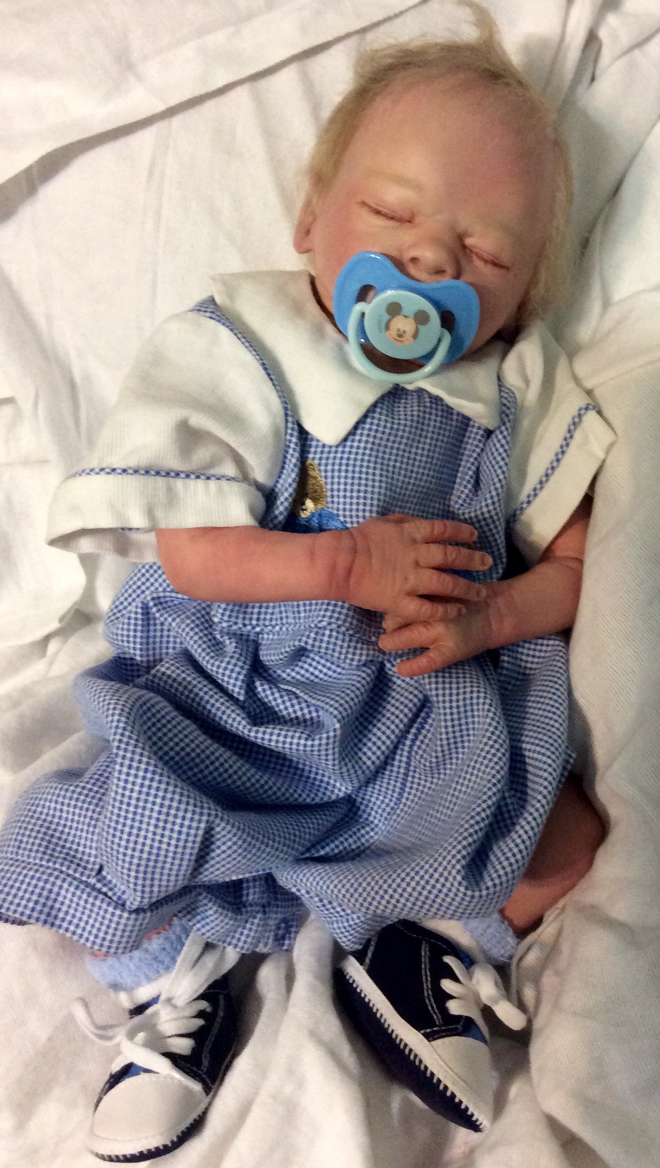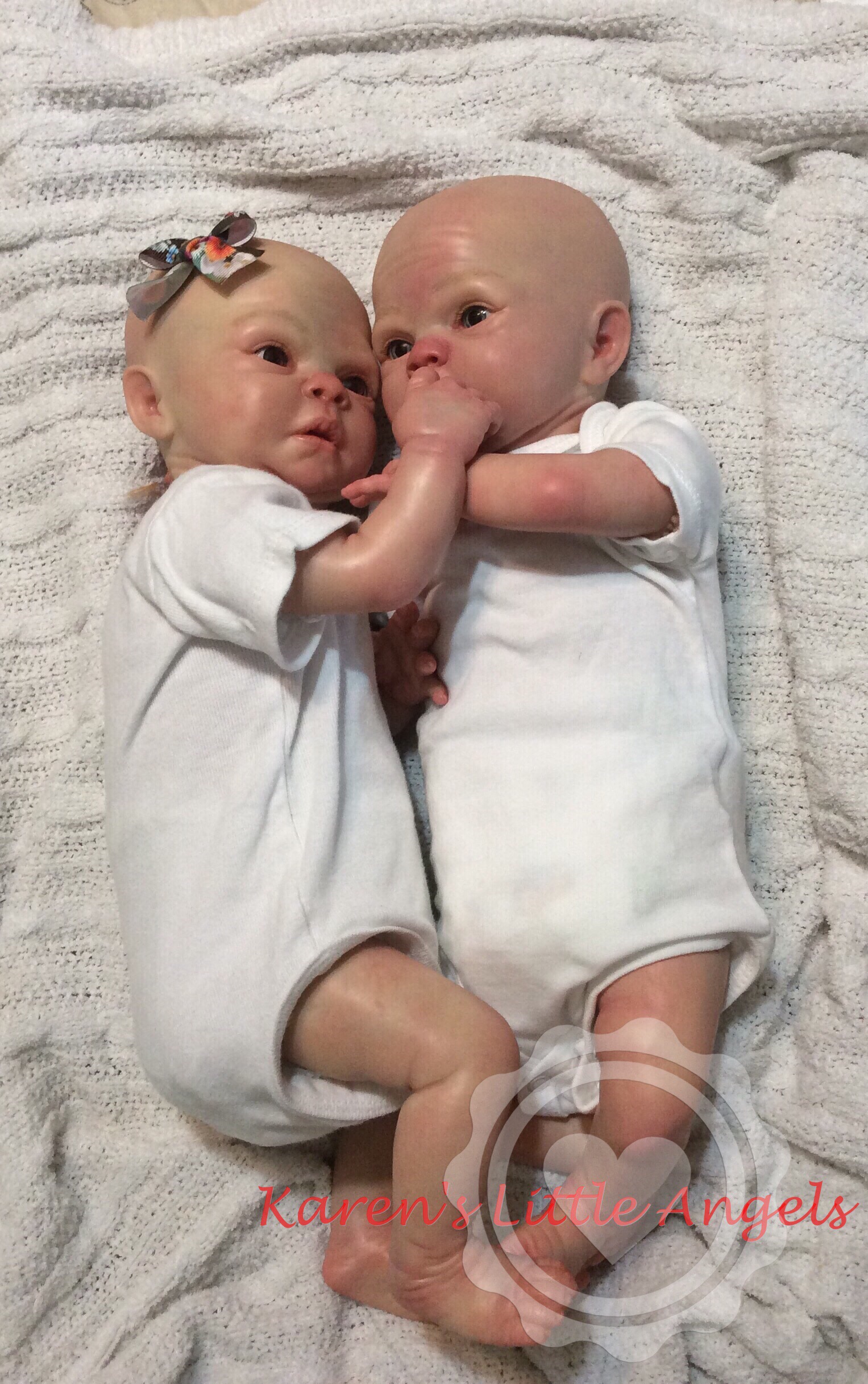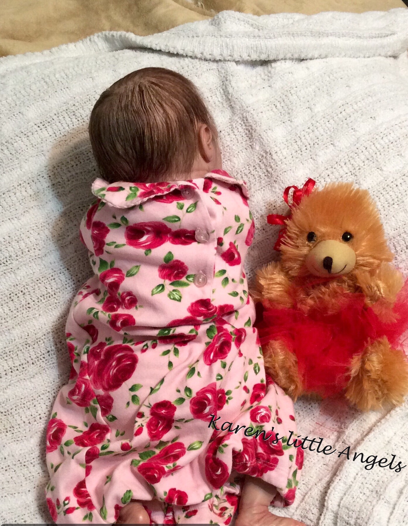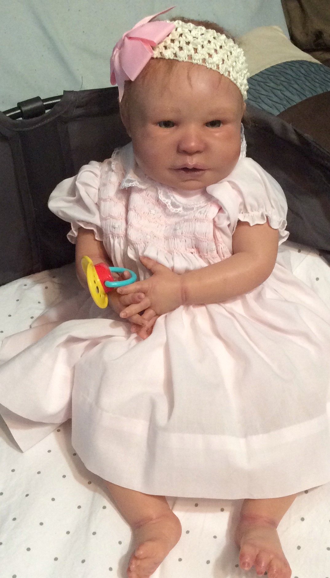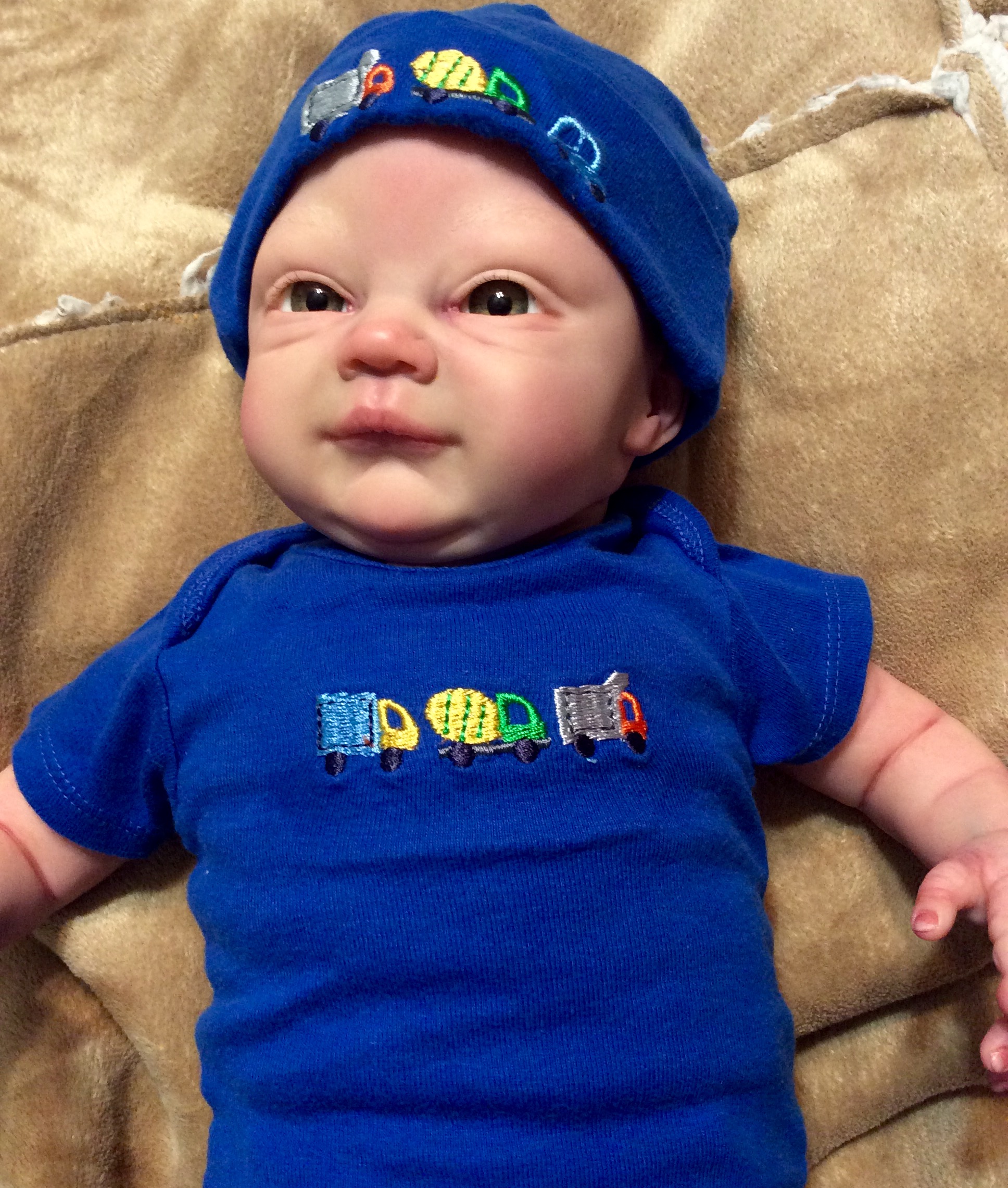 I hope you have enjoyed taking a peek at some of the babies I've "reborned", I have done memorial babies and "look alike babies. I put lots of hours into each one, and I enjoy every minute of it. These are a soft vinyl that I have painted with Genesis heat set paints, using several transparent layers for added realism. They are weighted with micro glass beads for a real baby feel, opened nostrils, magnetic pacifiers & for those with hair, it has been micro rooted with needles placing about two hairs at a time, then sealed.