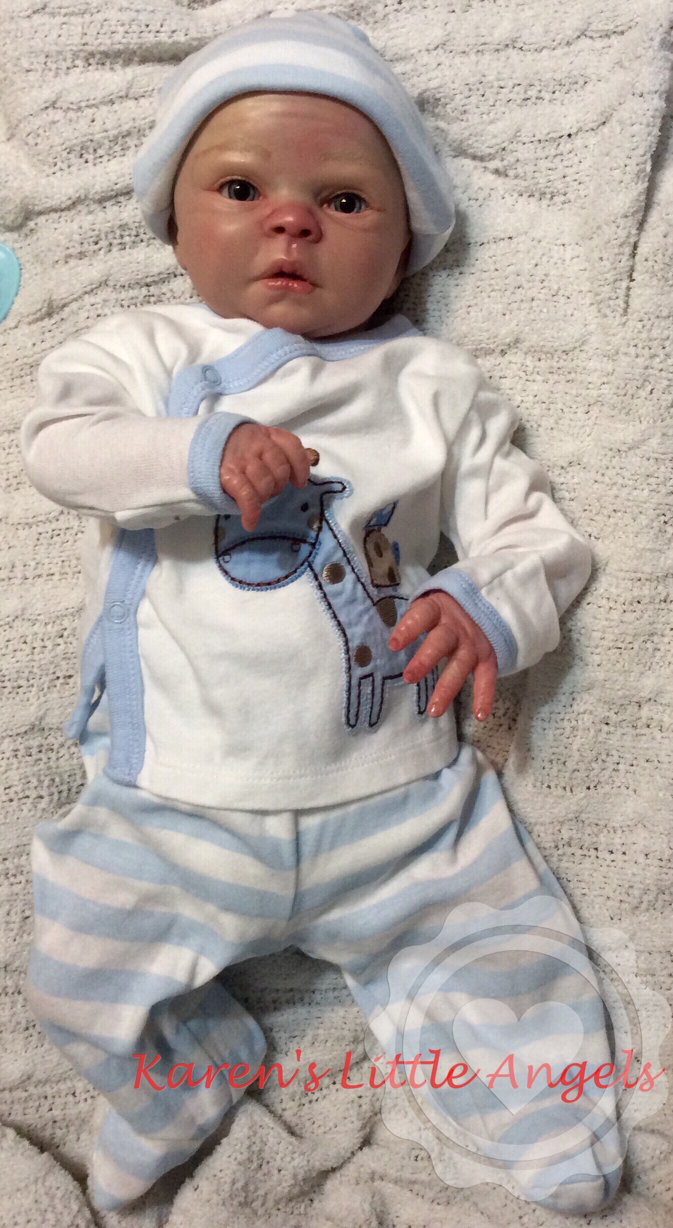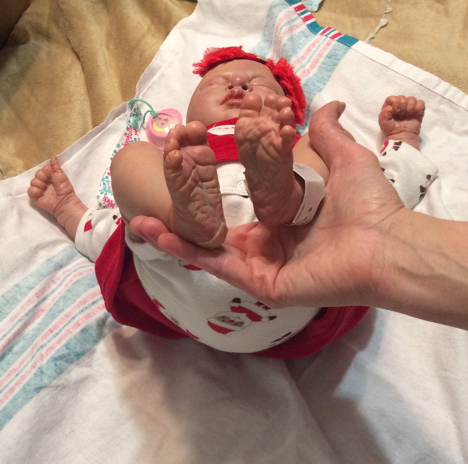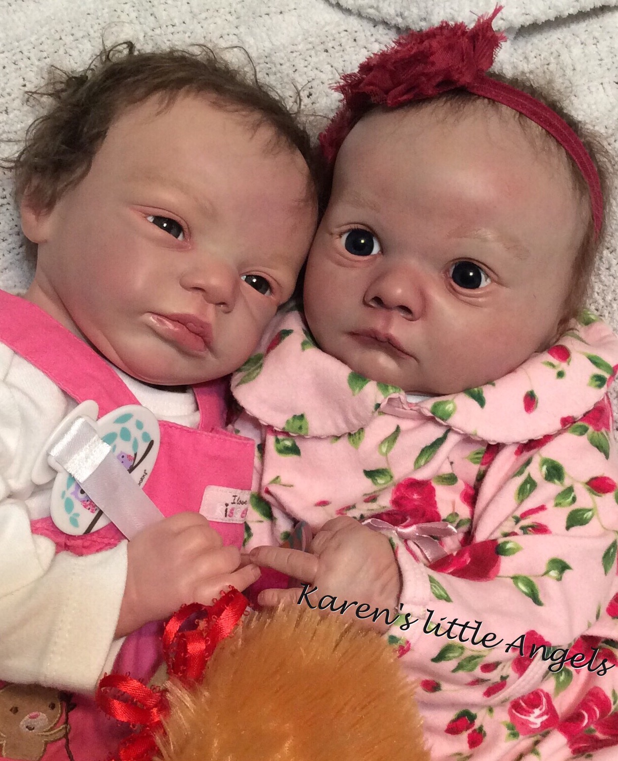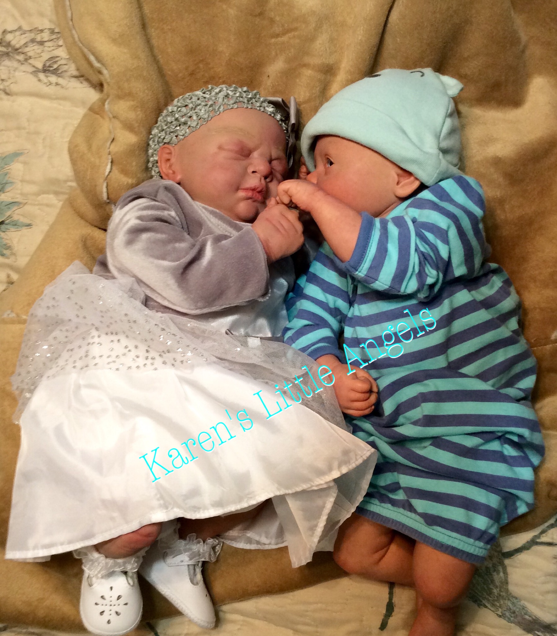 I hope you have enjoyed taking a peek at some of the babies I've "reborned", I have done memorial babies and "look alike babies. I put lots of hours into each one, and I enjoy every minute of it. These are a soft vinyl that I have painted with Genesis heat set paints, using several transparent layers for added realism. They are weighted with micro glass beads for a real baby feel, opened nostrils, magnetic pacifiers & for those with hair, it has been micro rooted with needles placing about two hairs at a time, then sealed.