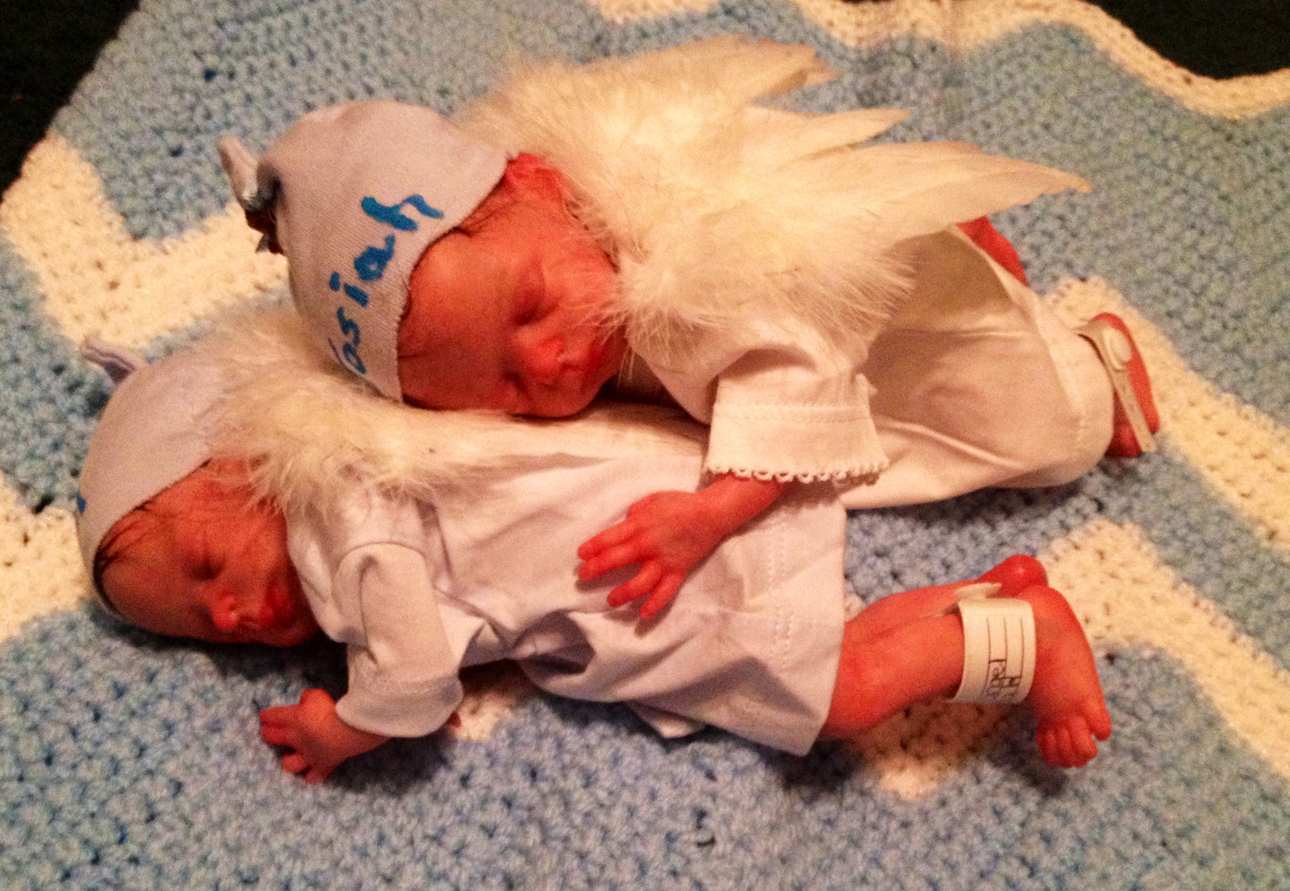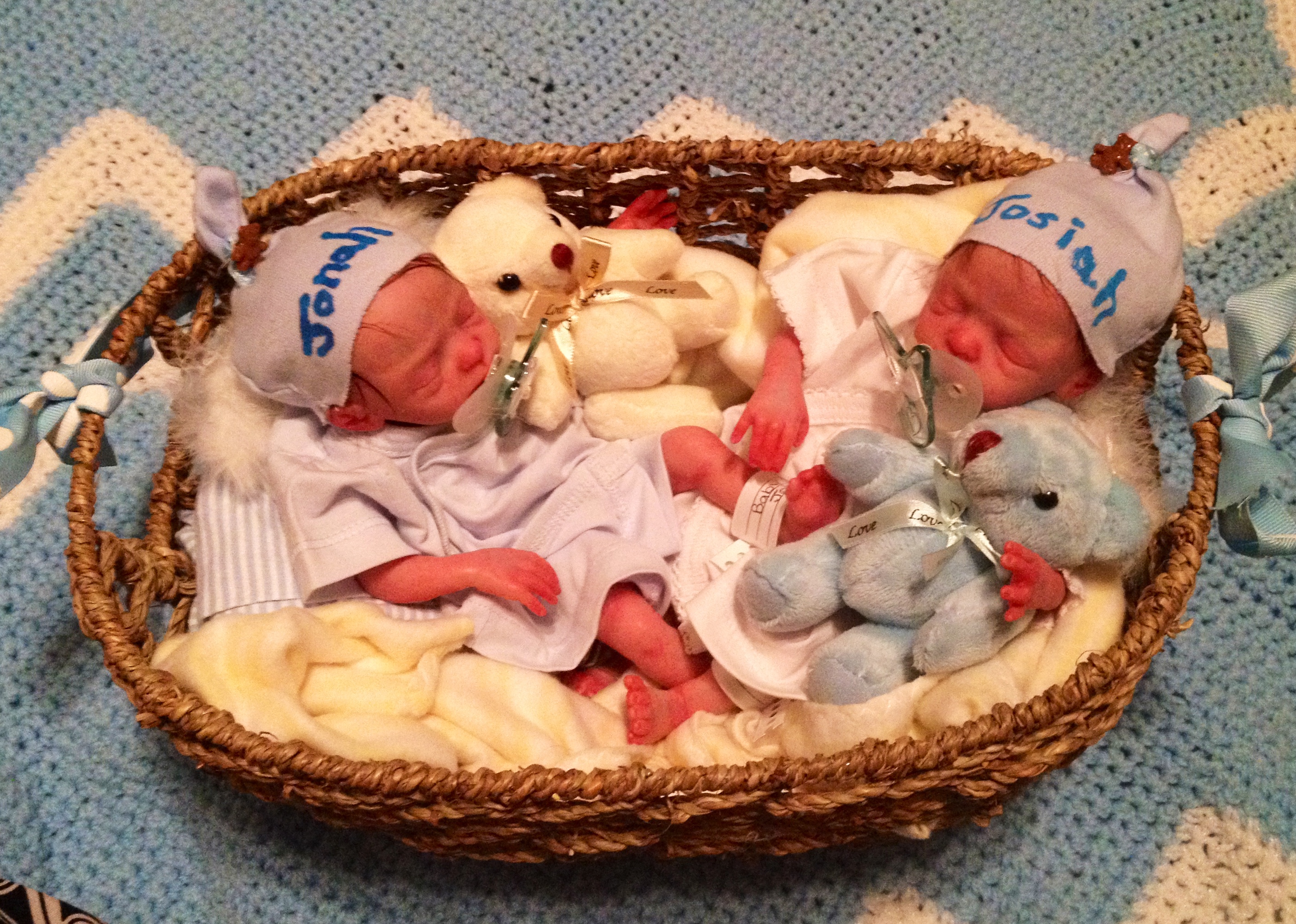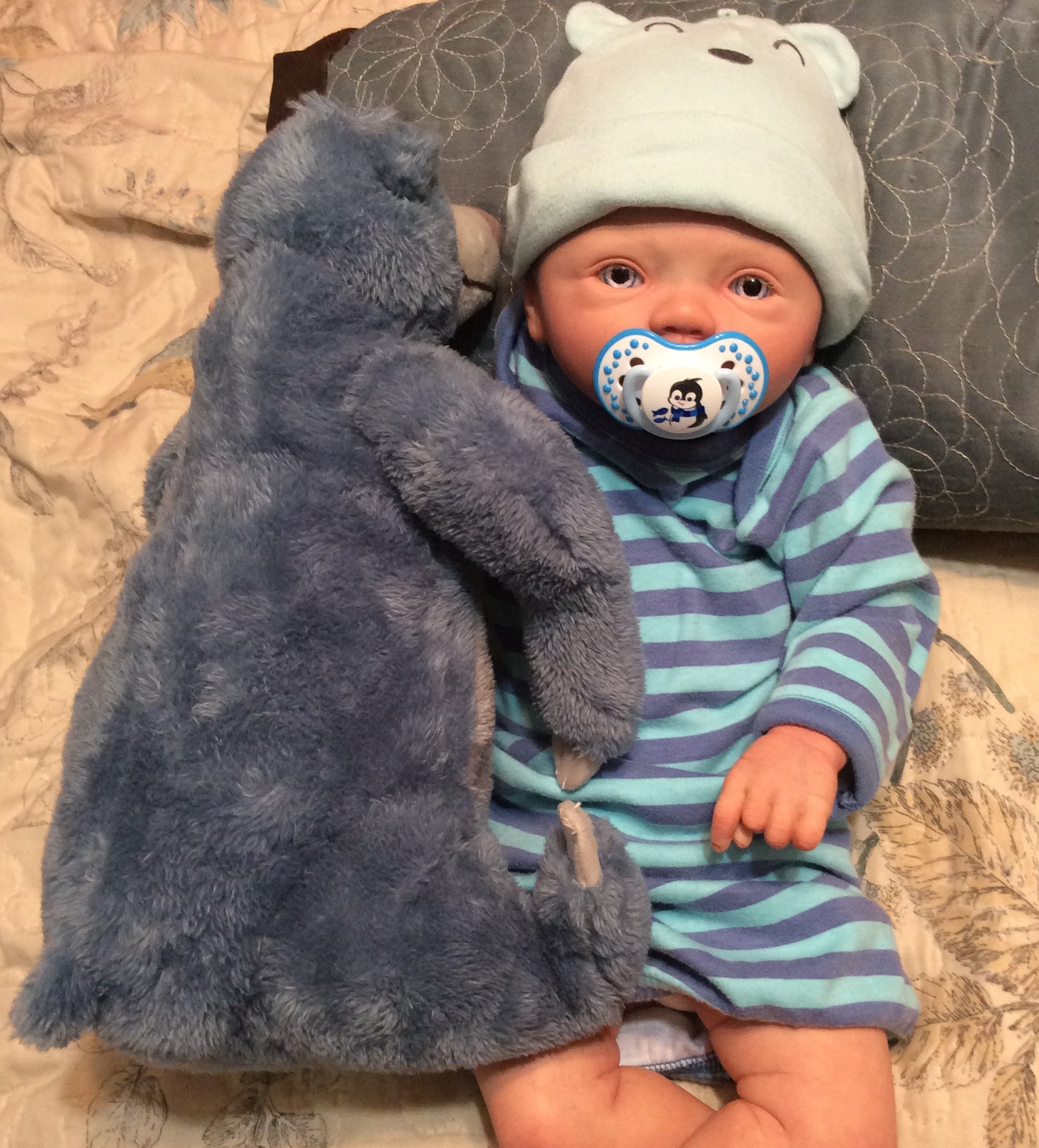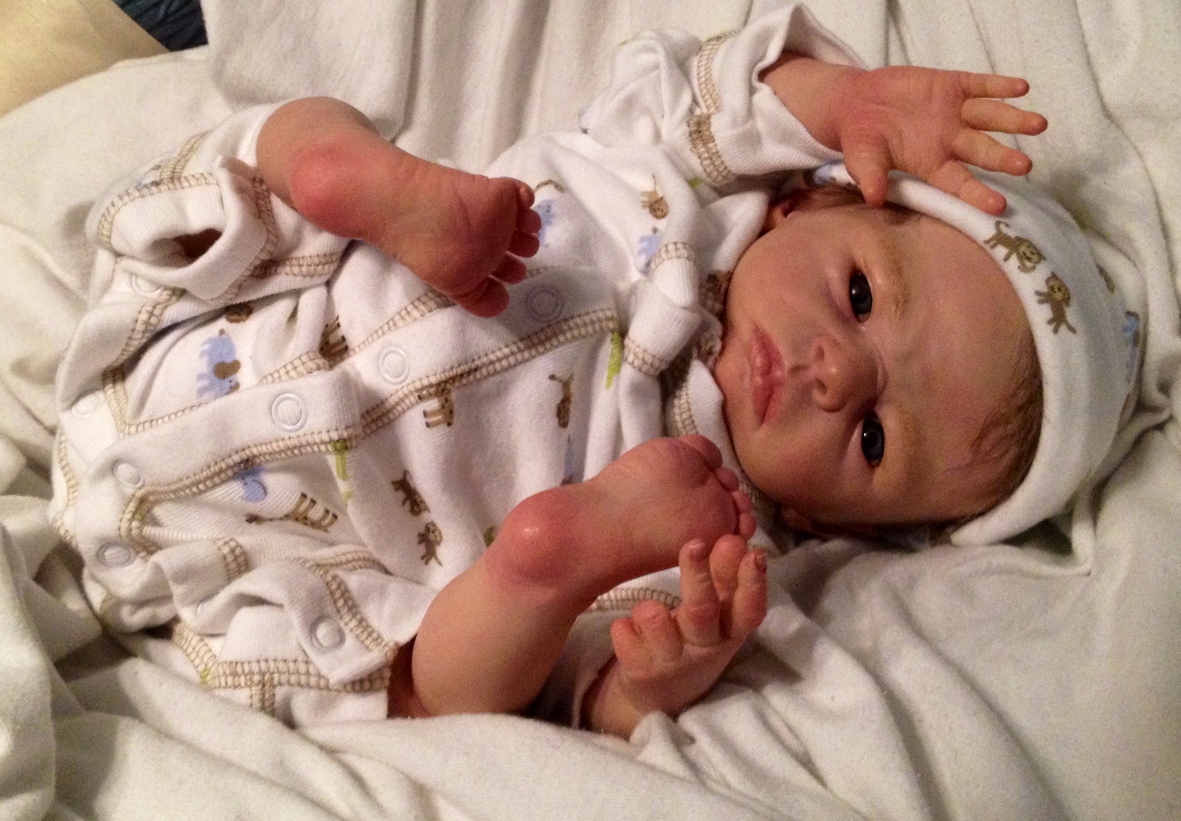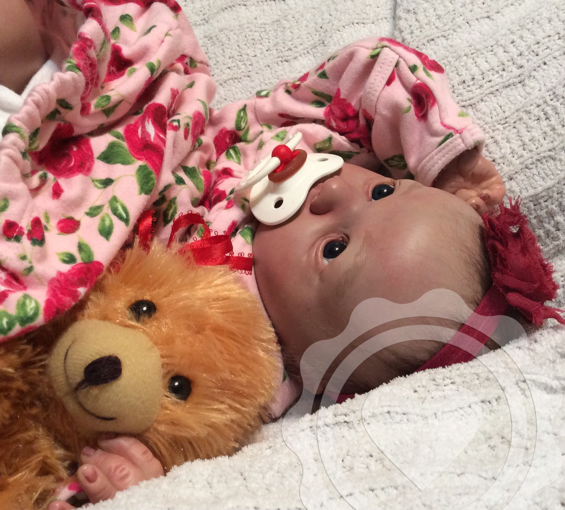 I hope you have enjoyed taking a peek at some of the babies I've "reborned", I have done memorial babies and "look alike babies. I put lots of hours into each one, and I enjoy every minute of it. These are a soft vinyl that I have painted with Genesis heat set paints, using several transparent layers for added realism. They are weighted with micro glass beads for a real baby feel, opened nostrils, magnetic pacifiers & for those with hair, it has been micro rooted with needles placing about two hairs at a time, then sealed.