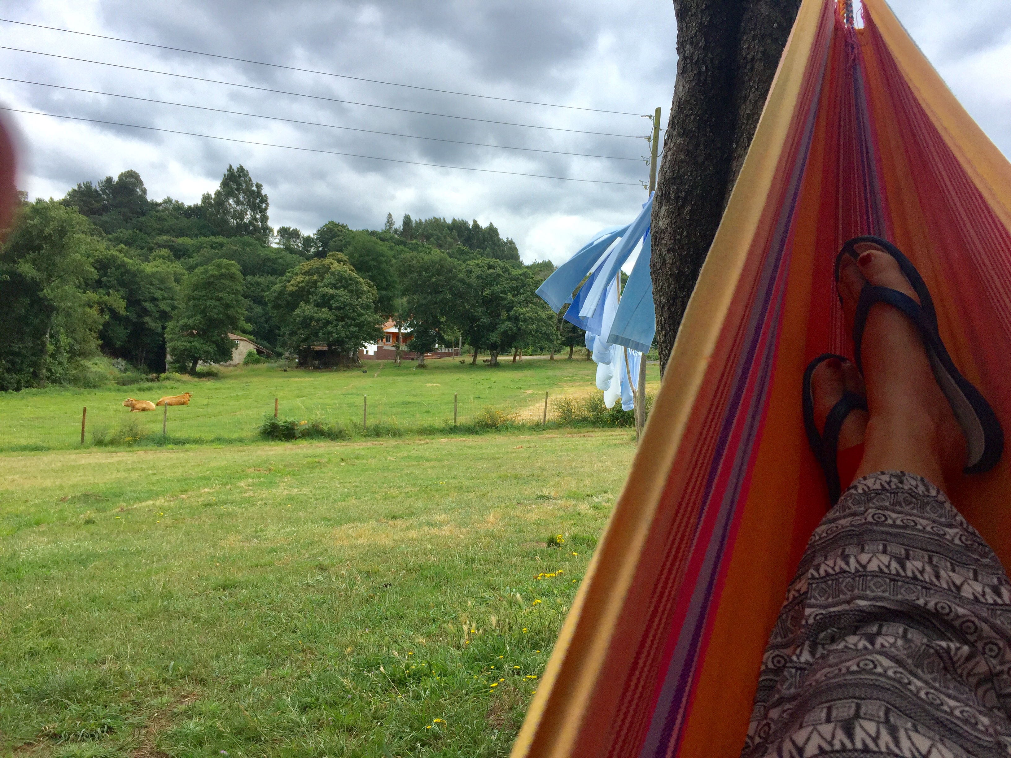 Udsigten fra hængekøje, nyder stilheden og se på vasketøj i vinden.
