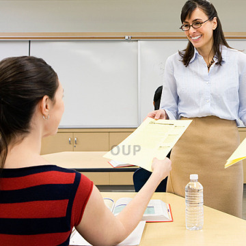 The Tutors beforehand have separated the TRF's into different subjects and start calling out the groups. The desks are aligned to wrap around a whiteboard and names are assigned to those groups.