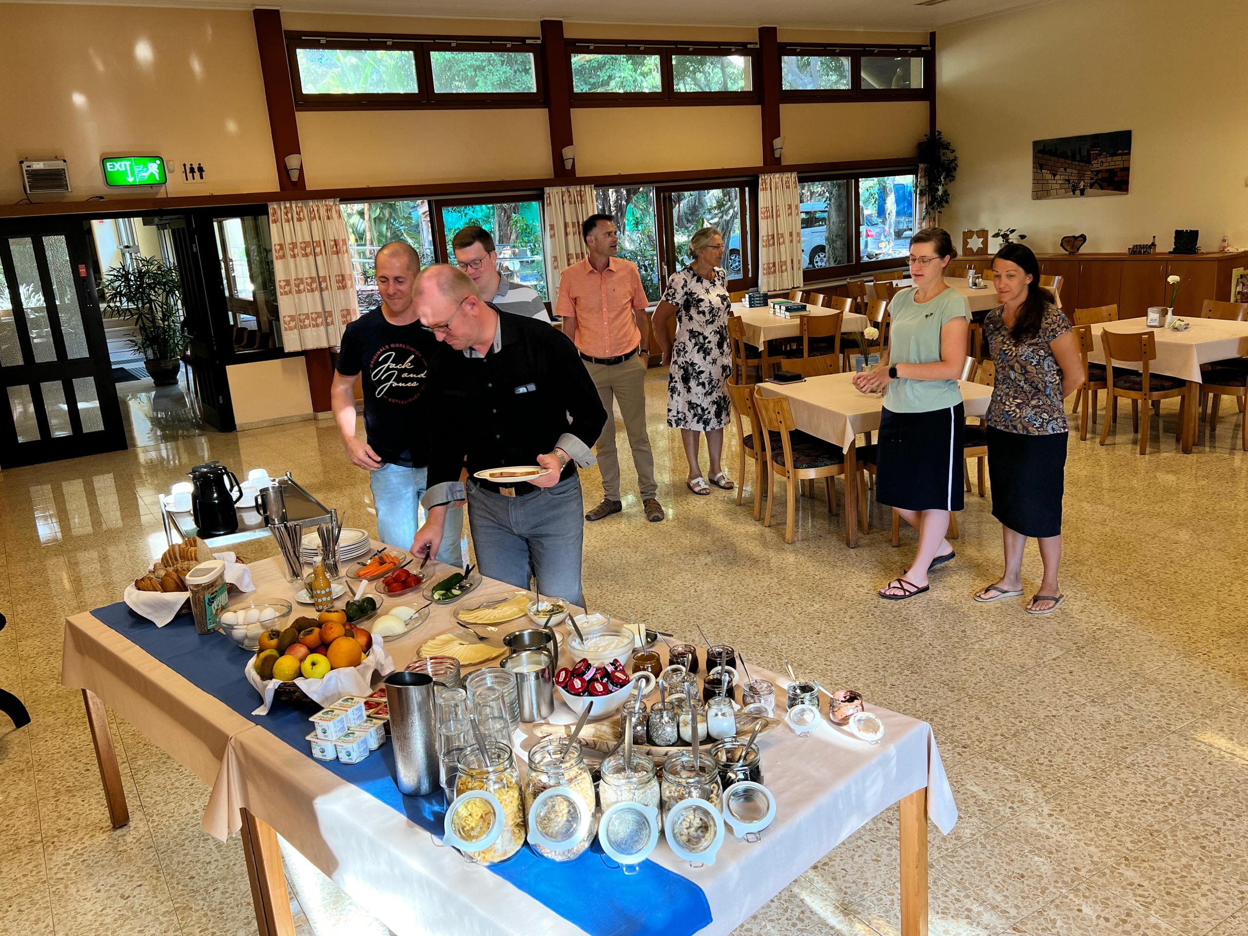 Der Tag beginnt für uns entspannt um 8.30 Uhr. Wir werden mit einem abwechslungsreichen Frühstück regelrecht verwöhnt. Die Mitarbeiter von Beth El bewirten uns mit viel Liebe. So haben wir den Kopf für die anstehenden Aufgaben frei.