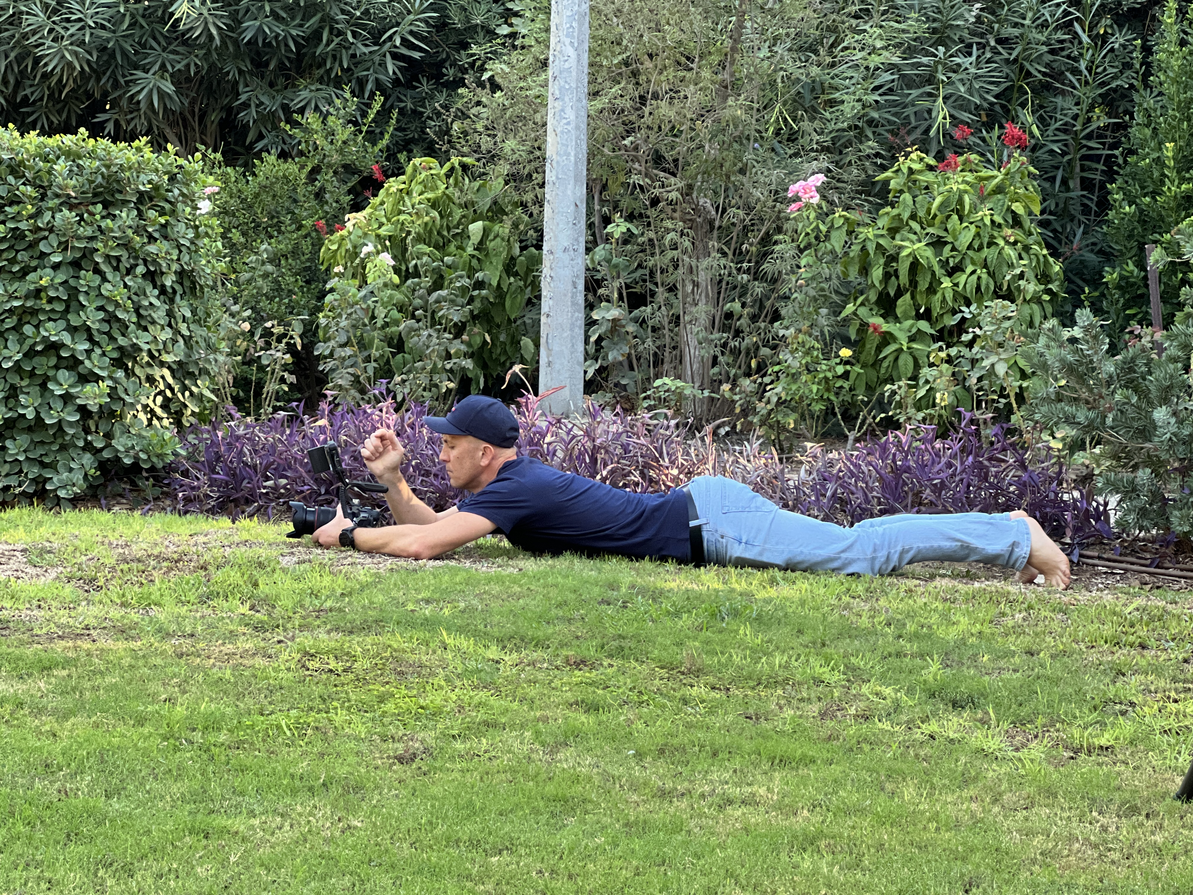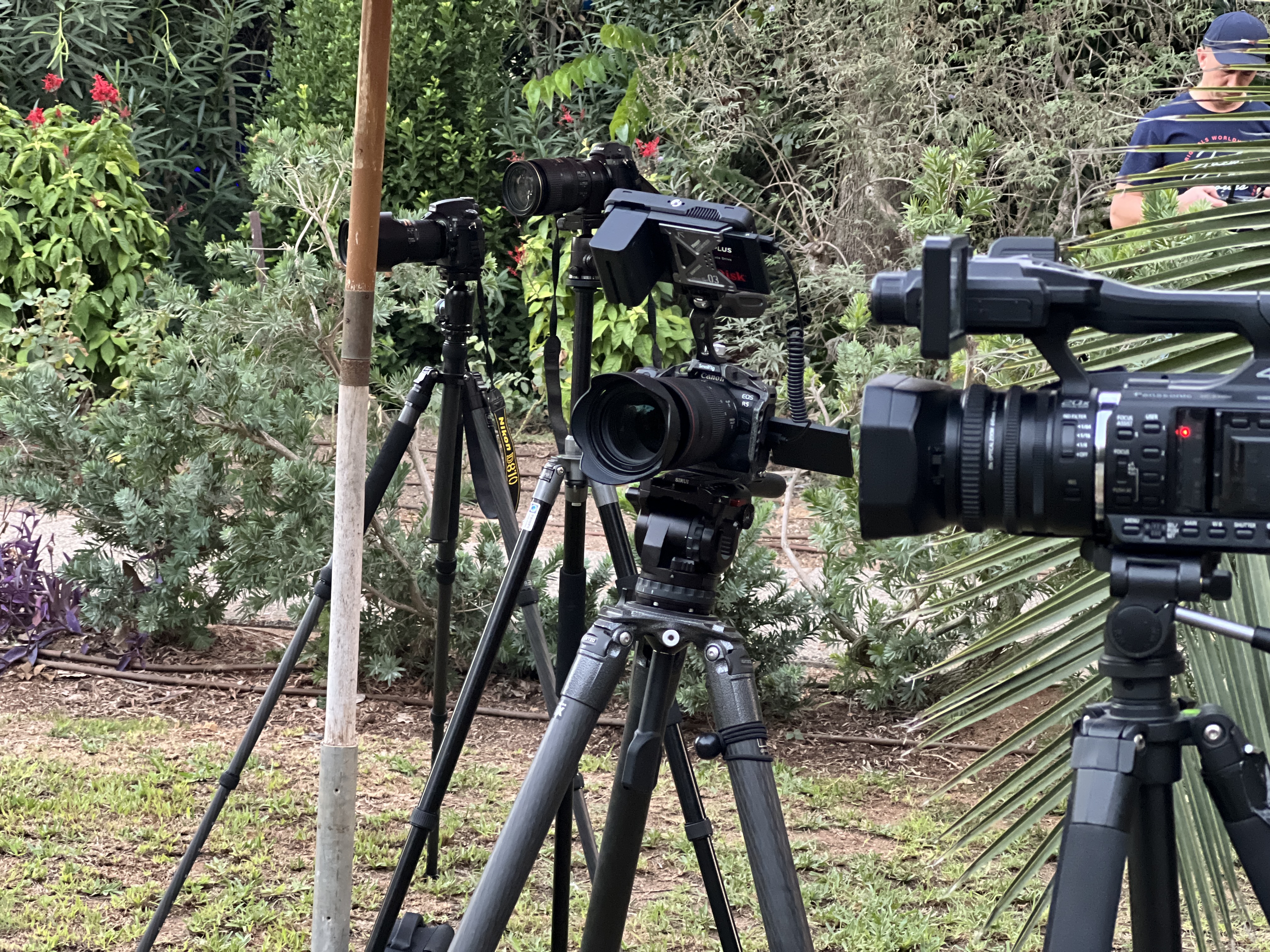 Uns steht ein großes Gelände zur Verfügung, sodass wir die Kameras immer wieder neu aufbauen und verschiedene Szenen einfangen.