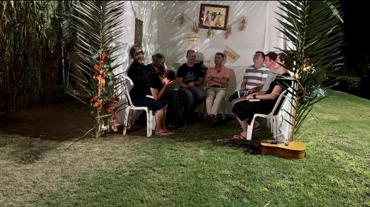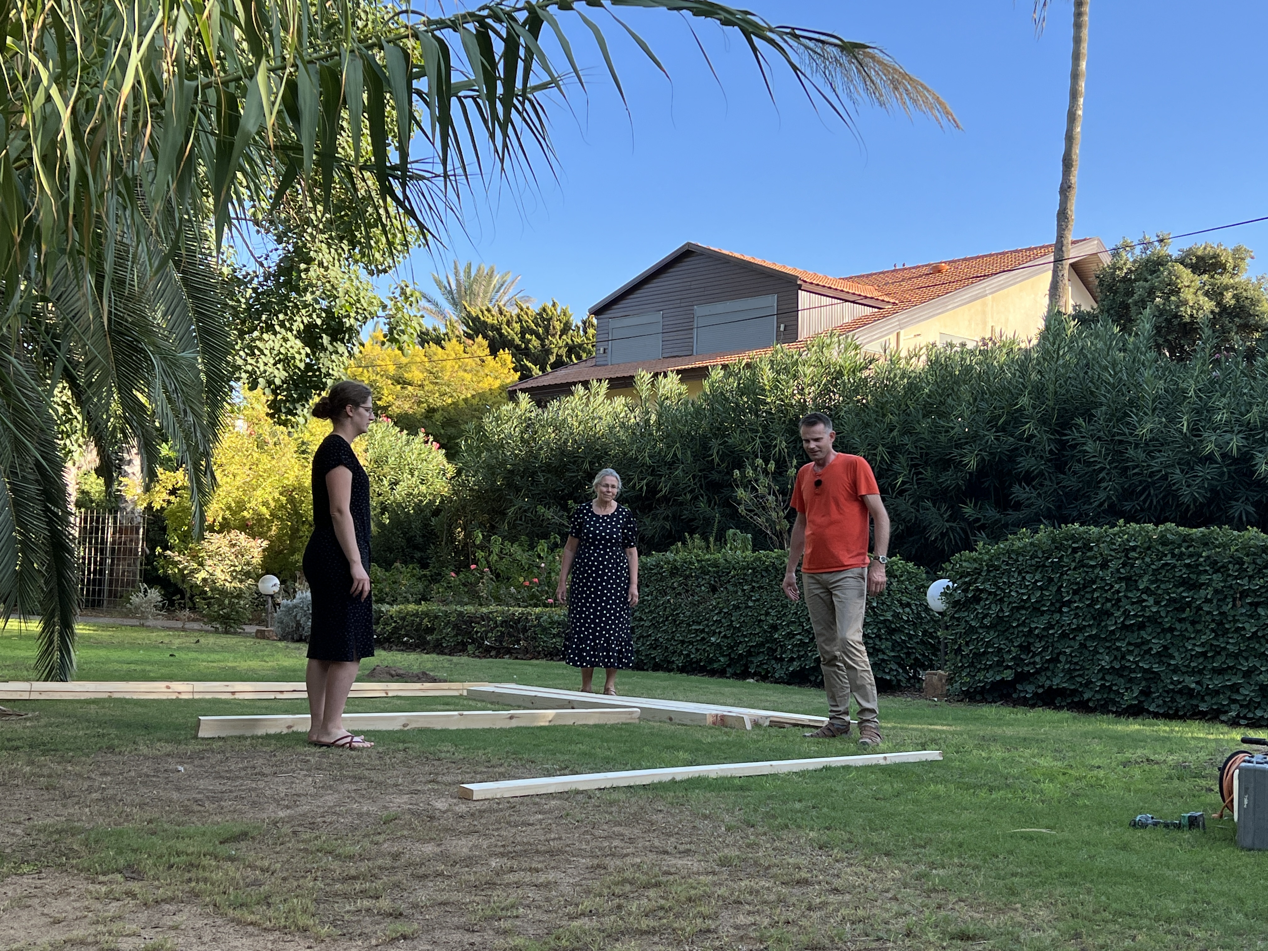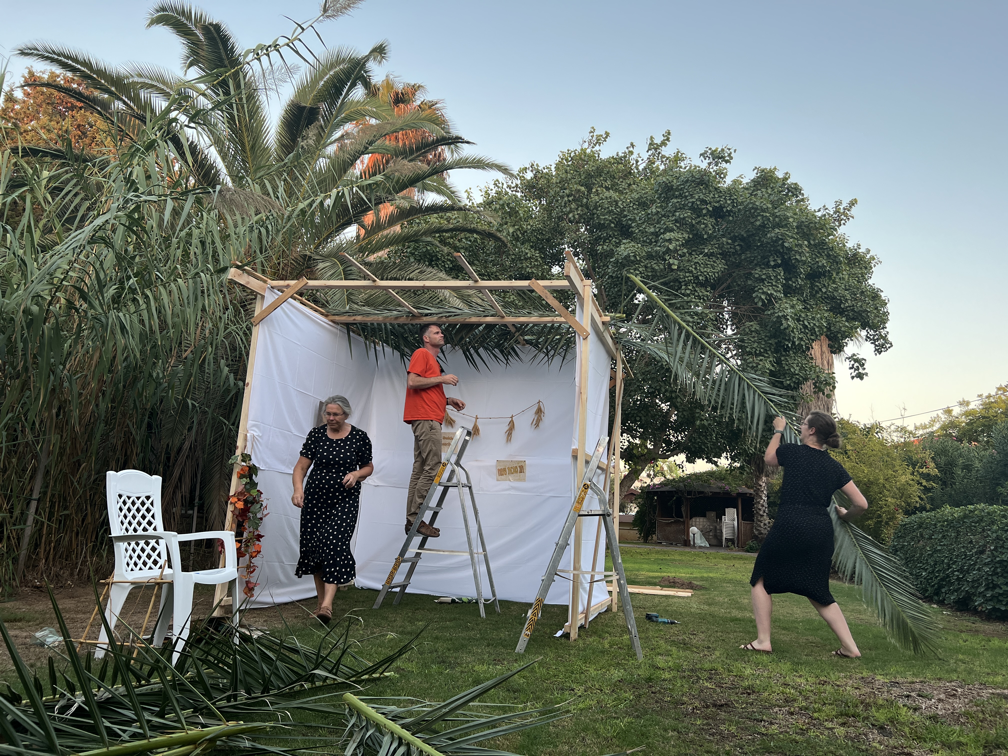 Fünf von uns sind dabei am Dreh beteiligt, drei bauen die Laubhütte auf. Die Juden bauen die Laubhütte in den Tagen nach Jom Kippur auf, damit sie am Laubhüttenfest (09.10.) fertig ist.