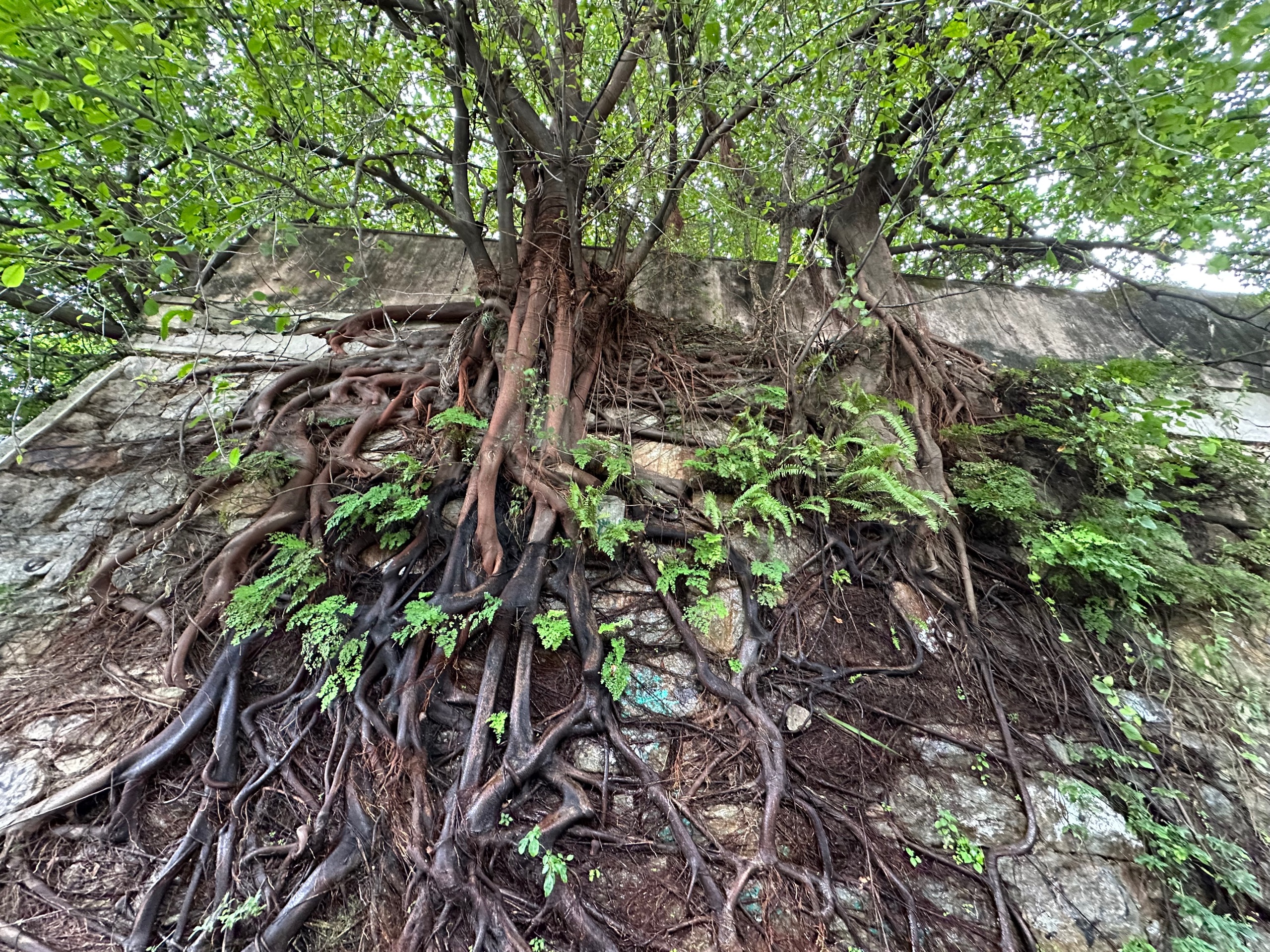 Looks like the trees from Ta Phrom in Cambodia. Nature making use of a man made wall