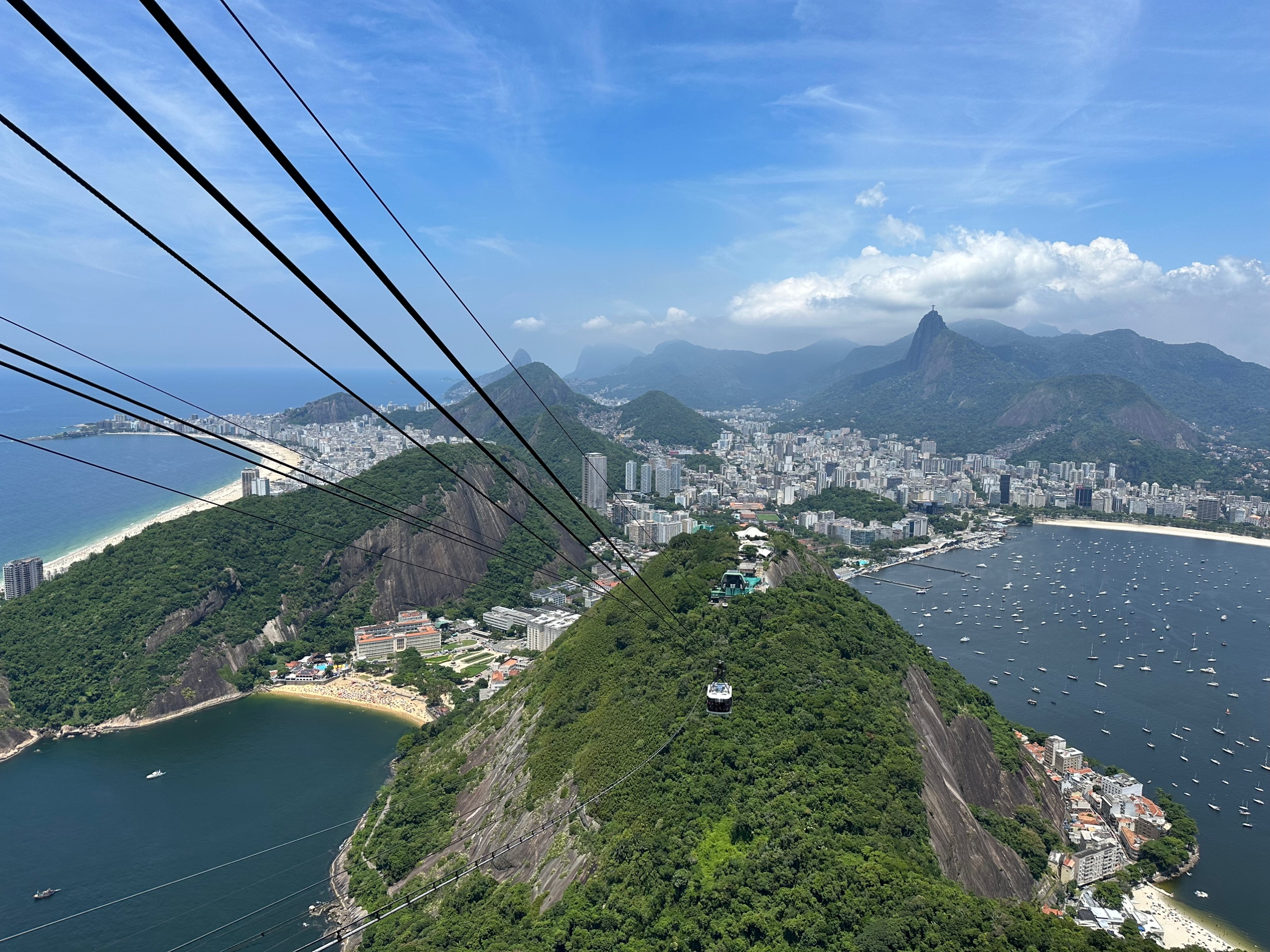 On our way to Sugarloaf. Cable car goes first to the shorter flat topped hill before a second cable car takes you to the top of Sugarloaf.