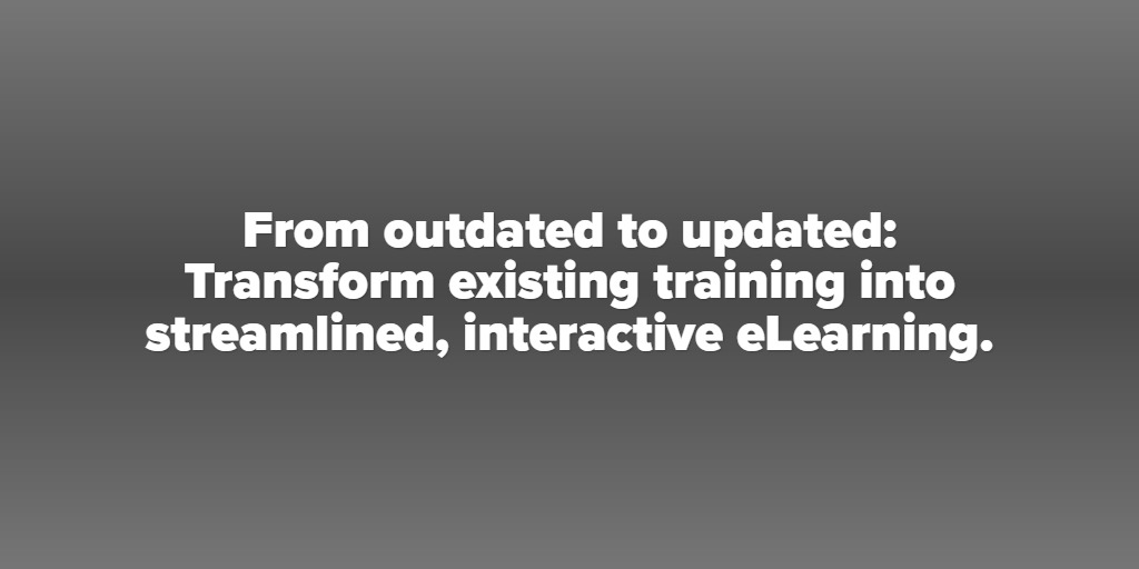 From outdated to updated: Transform existing training into streamlined, interactive eLearning.