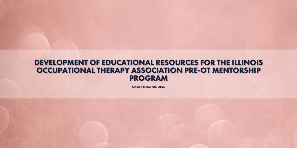 Project Description: This capstone project focuses on developing educational resources to support the Illinois Occupational Therapy Association’s Pre-OT Mentorship Program. The development of resources integrates current research, initiatives, and advocacy efforts to further promote the recruitment and retention of students from diverse backgrounds. This project aims to provide the modules and educational materials to students to make an informed decision to choose occupational therapy as a career path.