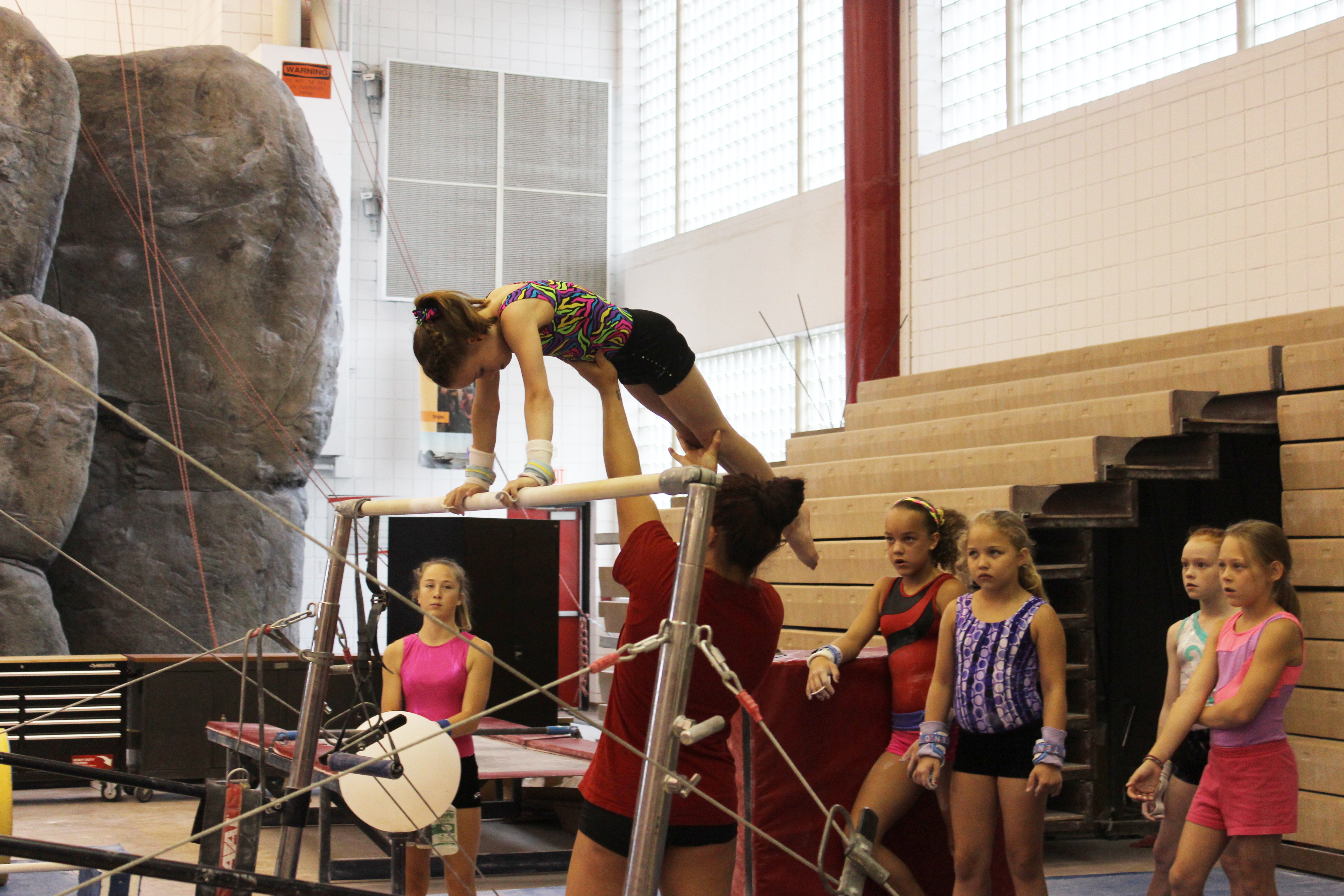 It's that time of the year again when campers fill Carmichael Gymnasium and members of the NC State gymnastics team help out at the annual Wolfpack gymnastics camp. As there are two weeks of camp in June and two in July, hundreds of youngsters gather to learn from and spend time with their favorite collegiate gymnasts.