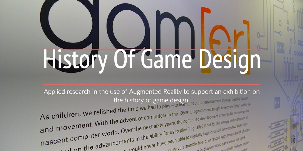 Beginning in January 2013 Professor Kinney and his students set out to explore the use of Augmented Reality in Education. The context was supporting a physical installation of an exhibition on the History of Game Design on the 5th floor of George Brown College's newly opened School of Game Design in downtown Toronto.