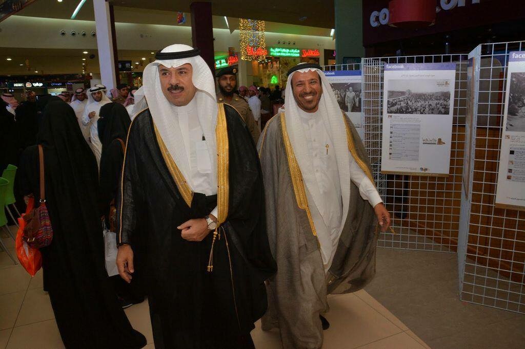 وفي الصورة لحظة مرور المهندس صالح العفالق رئيس غرفة الأحساء و المهندس عادل الملحم أمين الأحساء عند معرض الأحساء قديماً بالقرب من الحفل الختامي