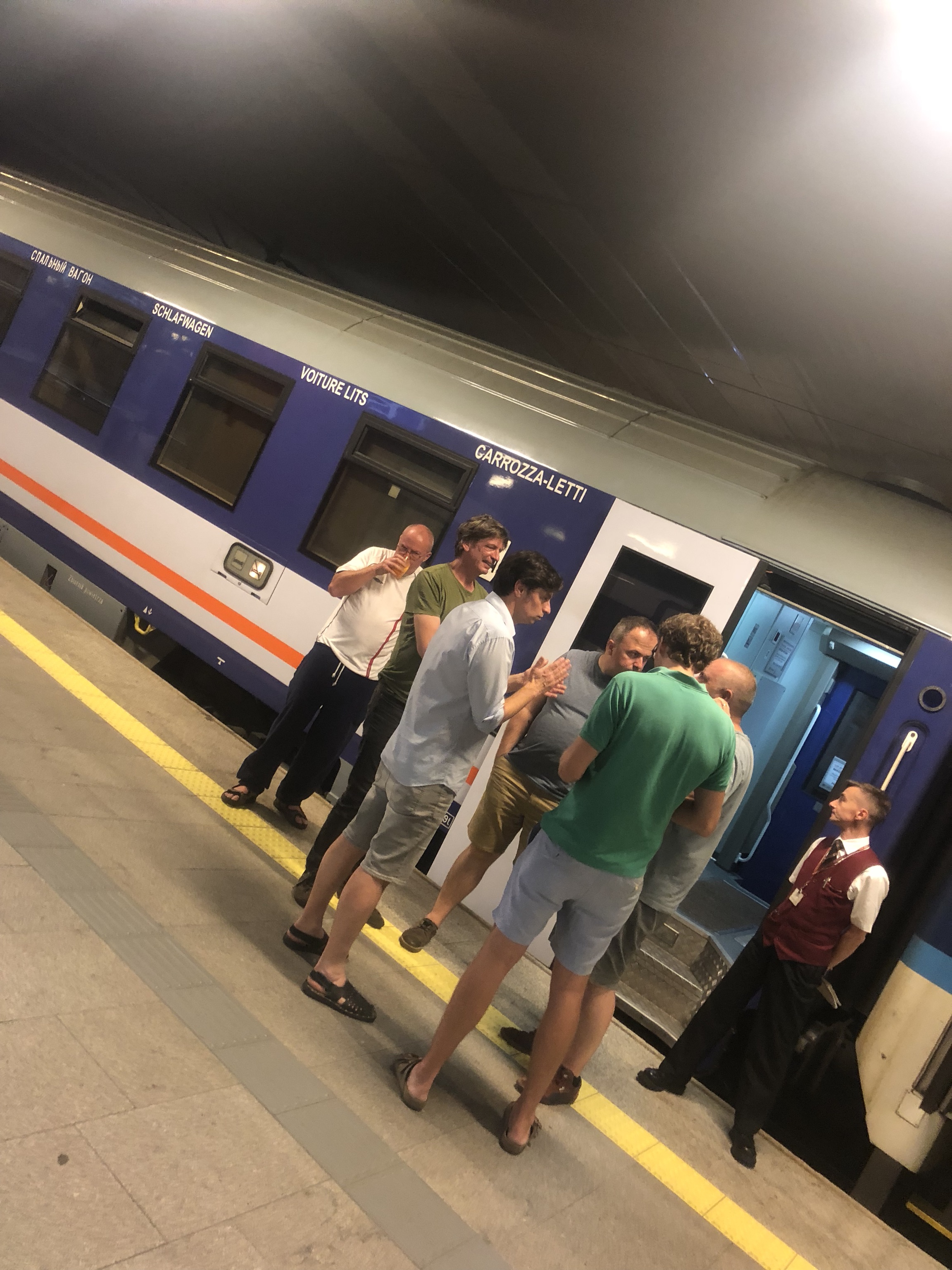 It's basically a party now. The conductor, a very short and tidy man, has told us that since we've got virtually the whole coach we're fine to carouse and drink and be merry until, like, 10pm, but at other stations people will be getting on and using the spare compartment and we should stop acting like dicks after then.