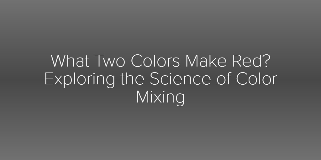 What Two Colors Make Red? Exploring the Science of Color Mixing