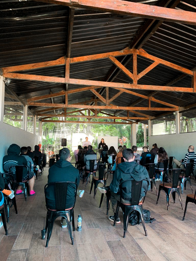E a fazenda também conta com uma estrutura completa com auditório e salas de aula para todos os alunos que passam por aqui.