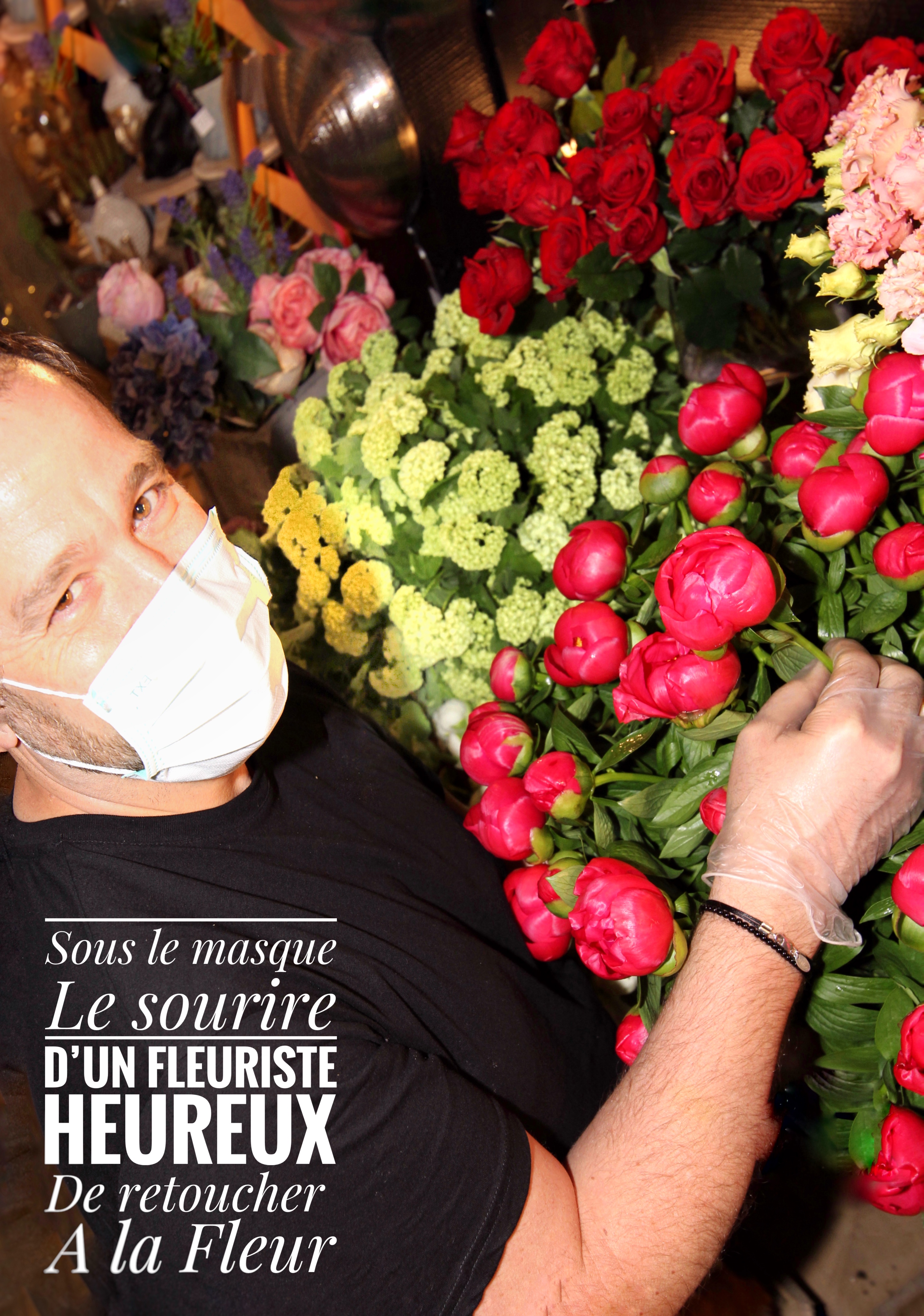 PRÉPARATION DE VOTRE BOUQUET avec masque renouvelé toutes les 4h et gants à chaque manipulation ou gel hydro alcoolique avec lavage des mains régulier jusqu’à sa remise au client sans contact