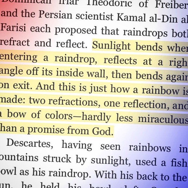 A few years ago I had an experience which I hardly understood. It was a simple experience which perhaps some of you have had- that of standing on a pier, staring at the ocean, watching the sun rise. But on this particular occasion an additinal mark of beauty lifted the experience to its peak- on the crest of each breaking wave was the aura of a rainbow, like an appiration or a halo as a spectrum of light: this was life and light unified. Actualized, over and over and over. Rainbows crashing in the sun.
