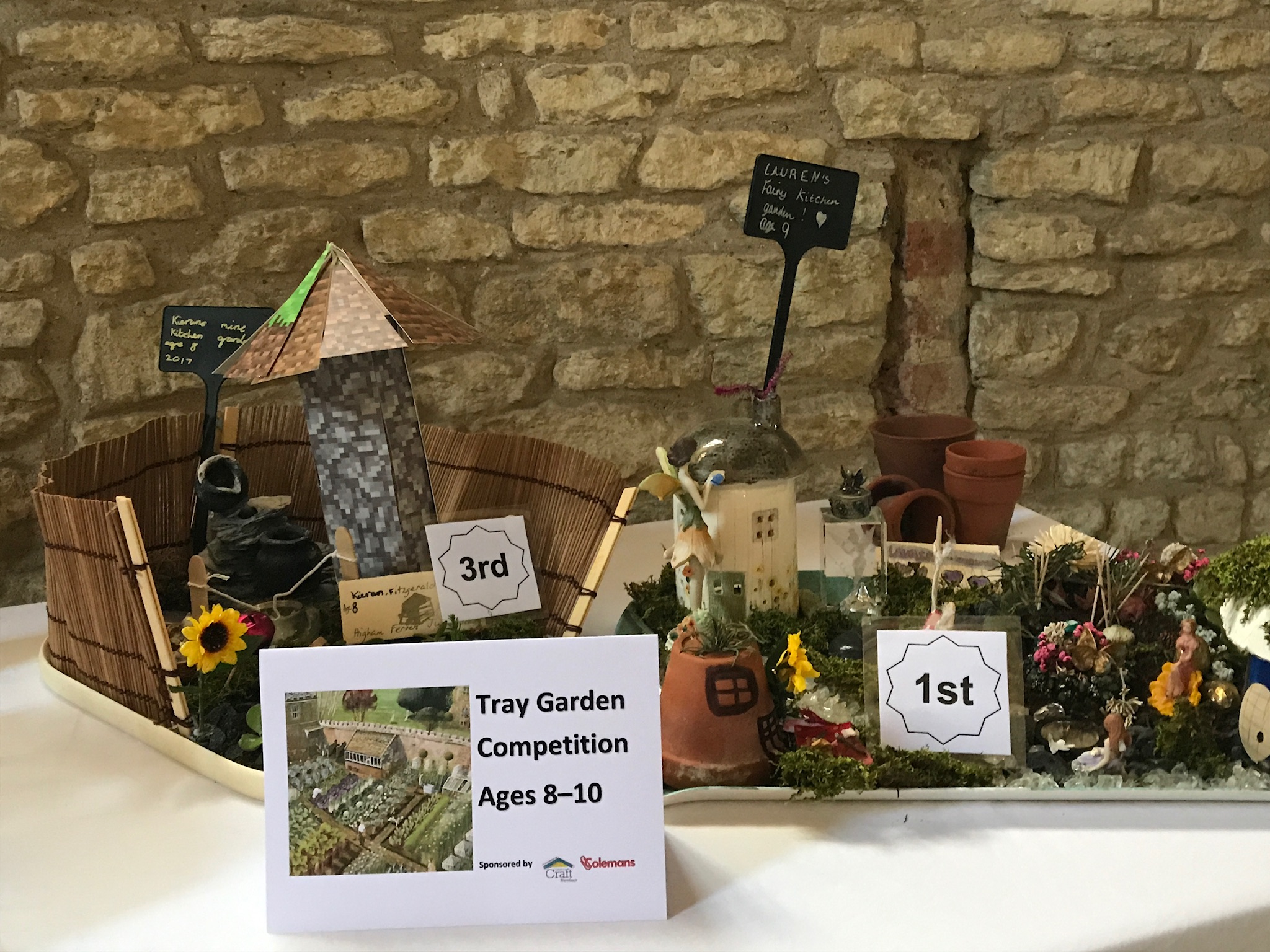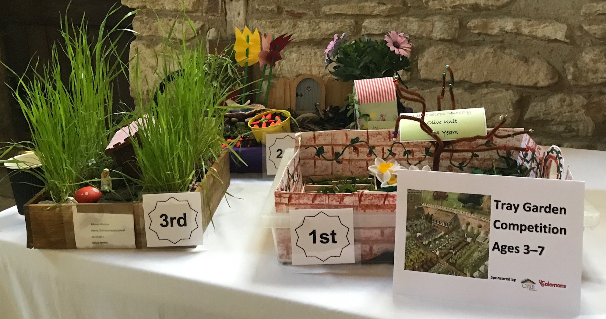 Children from local primary schools - ages 3-7 and ages 8-10 - created fabulous entries for the Tray Garden Competition sponsored by Colemans.