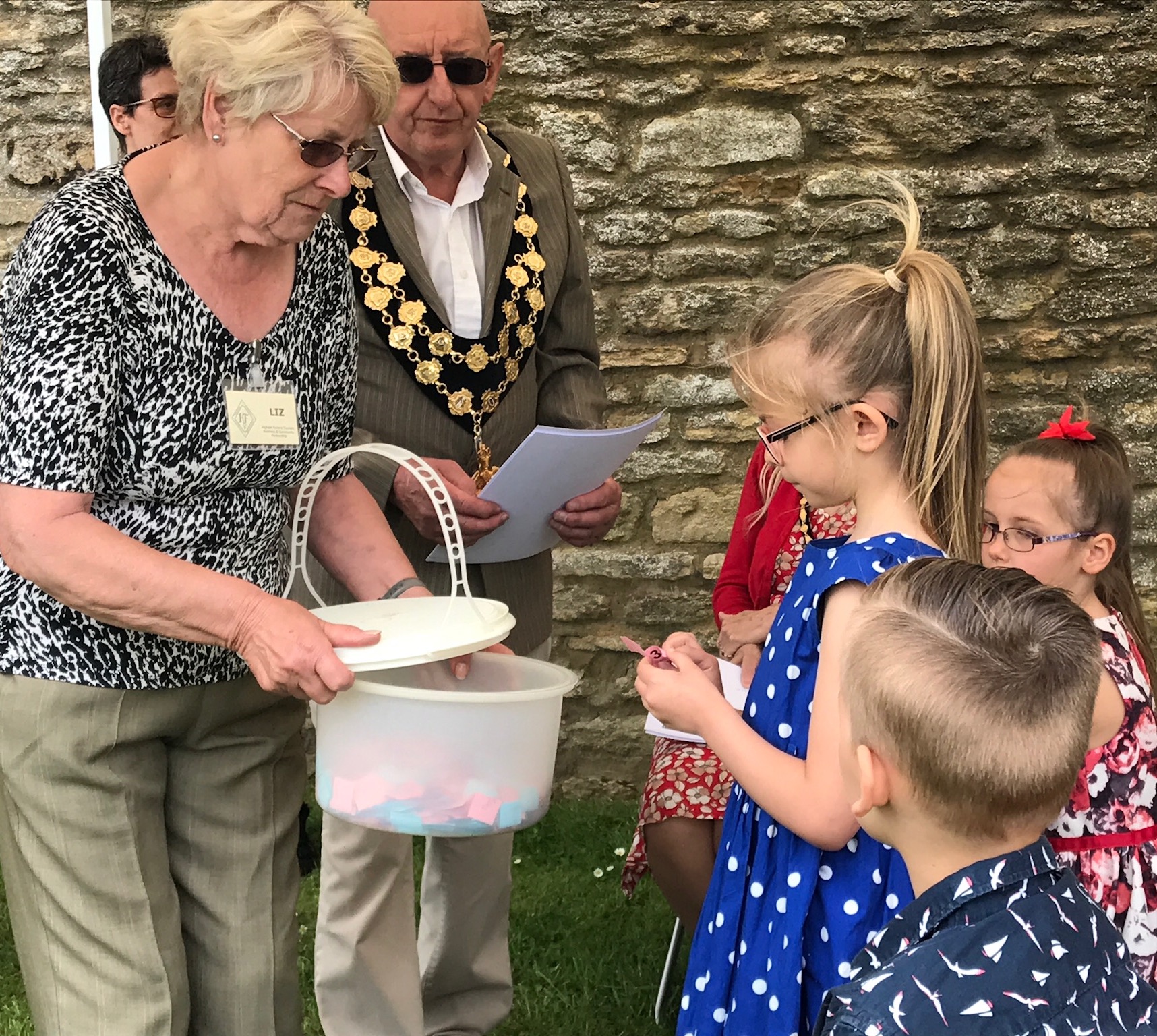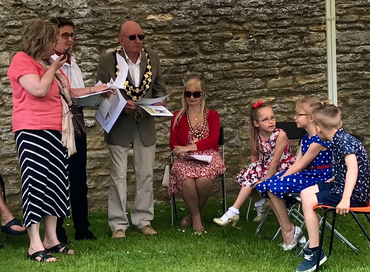 The Mayor of Higham Ferrers, accompanied by the May Queen and her attendants, presented the certificates and prizes to the competition winners and drew the tickets for the winners of the raffle.