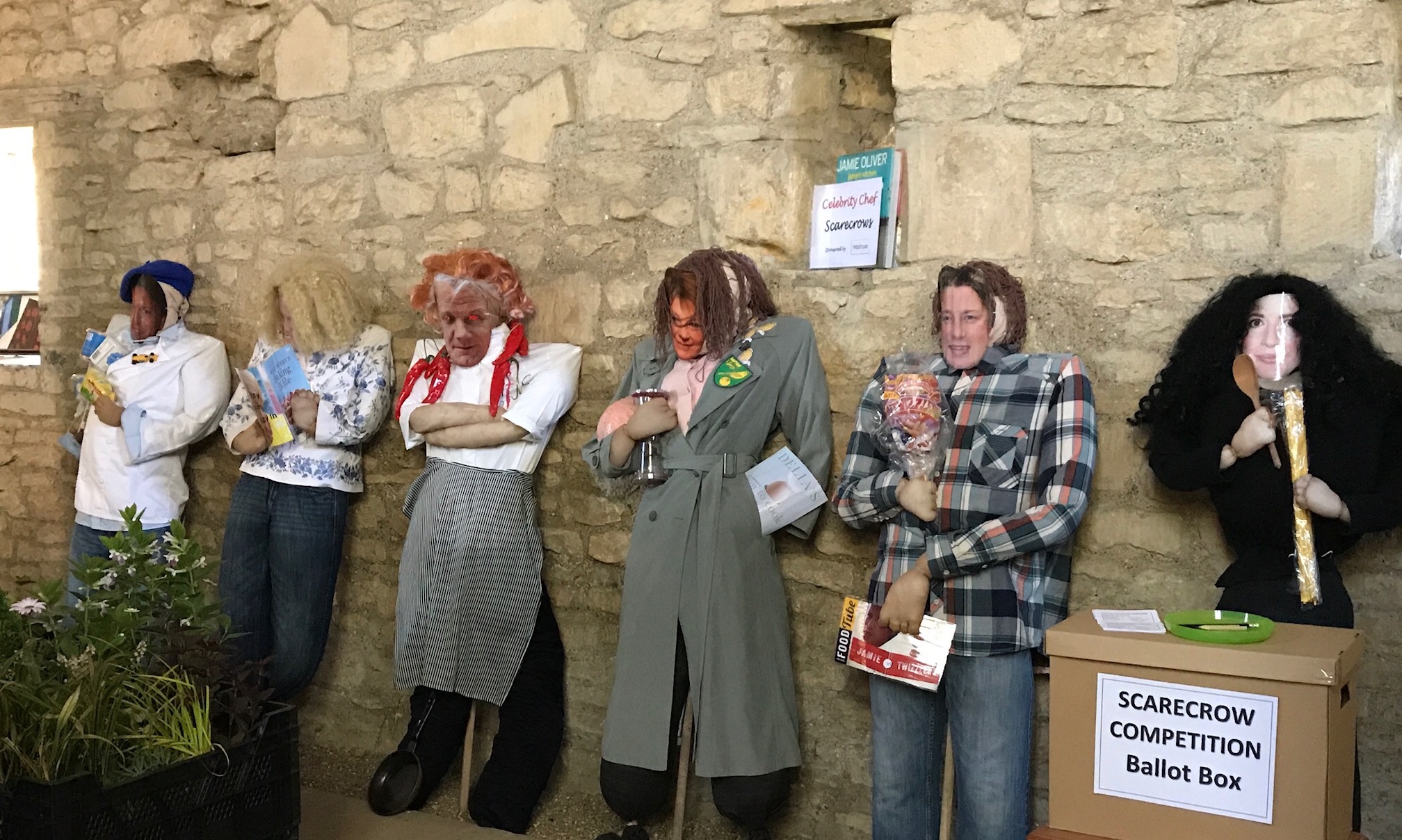 The six scarecrows - James Martin, Mary Berry, Gordon Ramsay, Delia Smith, Jamie Oliver and Nigella Lawson - were magnificent but the 'James Martin' scarecrow won the public vote on the day.