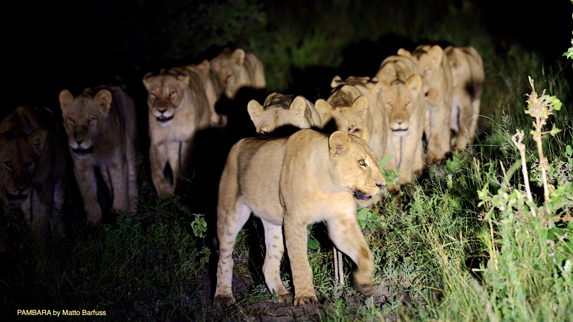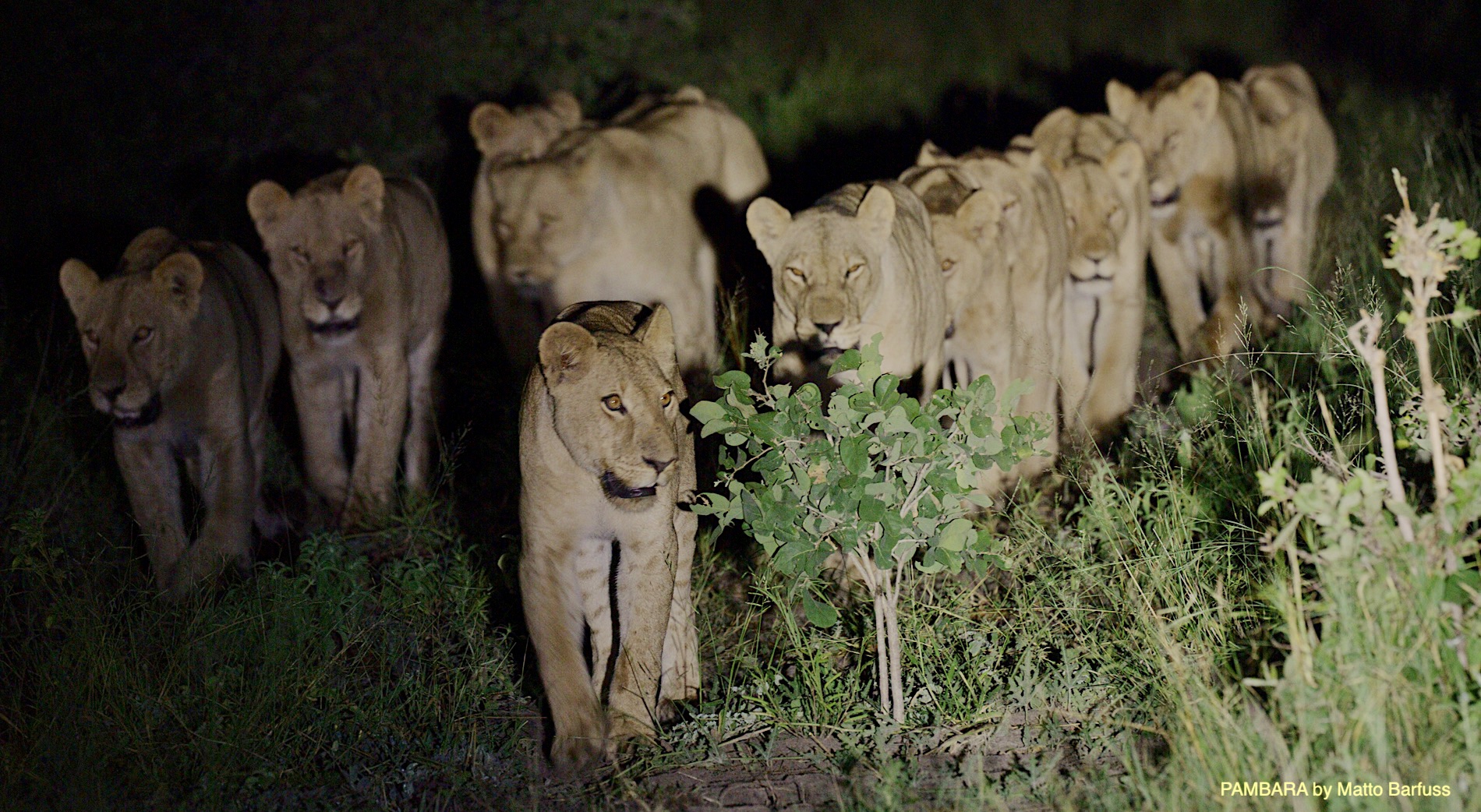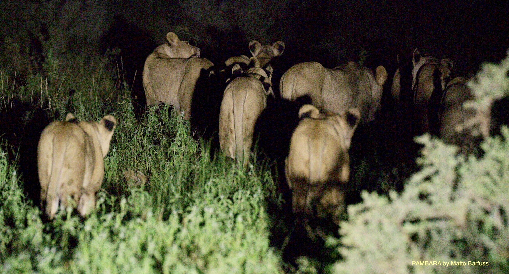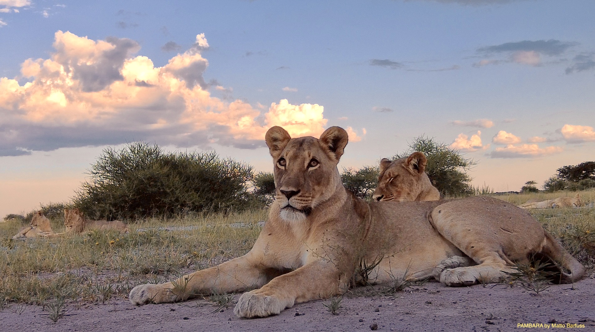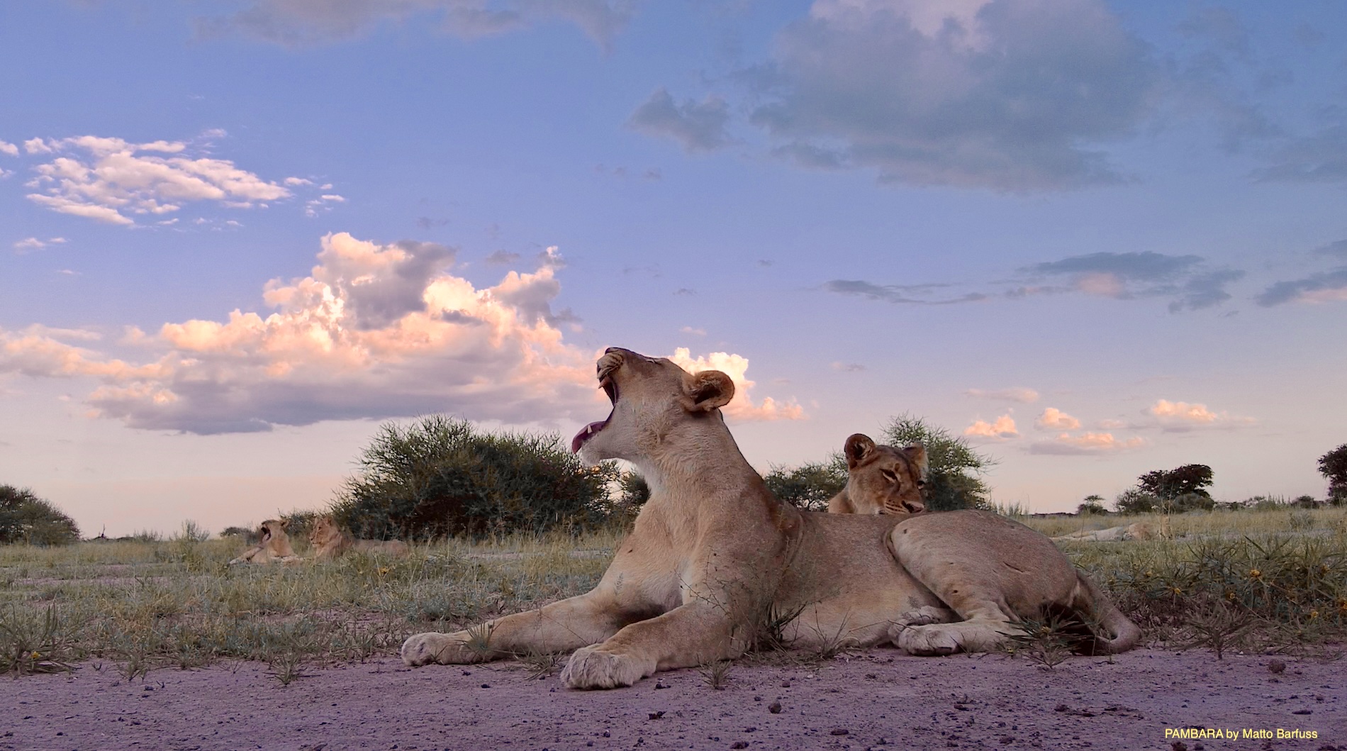 Neben vielen kleinen tierischen und landschaftlichen Highlights mutiert diese ‚Blühende Kalahari‘ allmählich zur Löwentour. Gleich am ersten Abend begrüßt uns das ansässige Löwenrudel. Und man macht so, als wolle man Jagen gehen.