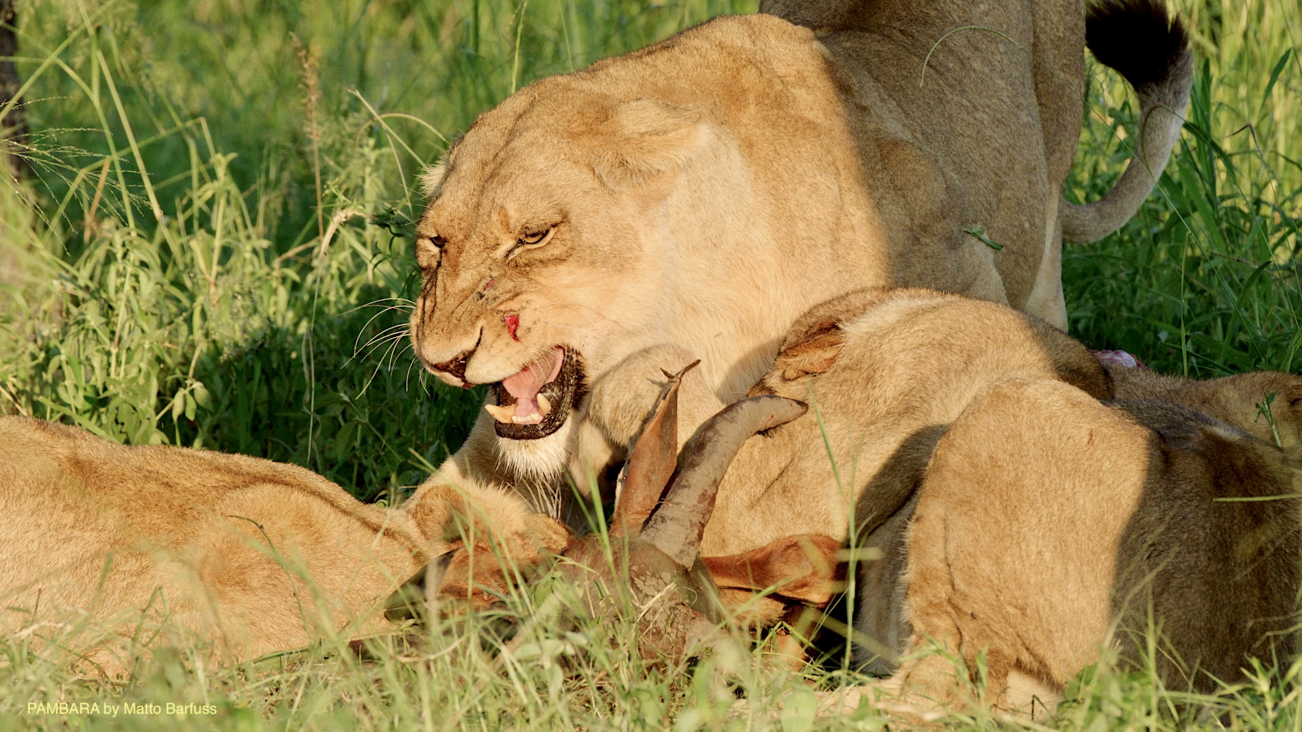 Am Abend stellt die Leopardin noch indirekt ihre Tochter vor. Obwohl diese schon von Mama verabschiedet wurde, hält sie sich noch immer in ihrem Revier auf. Zur Strafe bekommt die verdutzte Kleine nichts von der frischen Beute ab und nur ein erzürntes Fauchen, bevor sich Mutter verabschiedet und den Rest zurück lässt. Na ja, Mütter bleiben Mütter…