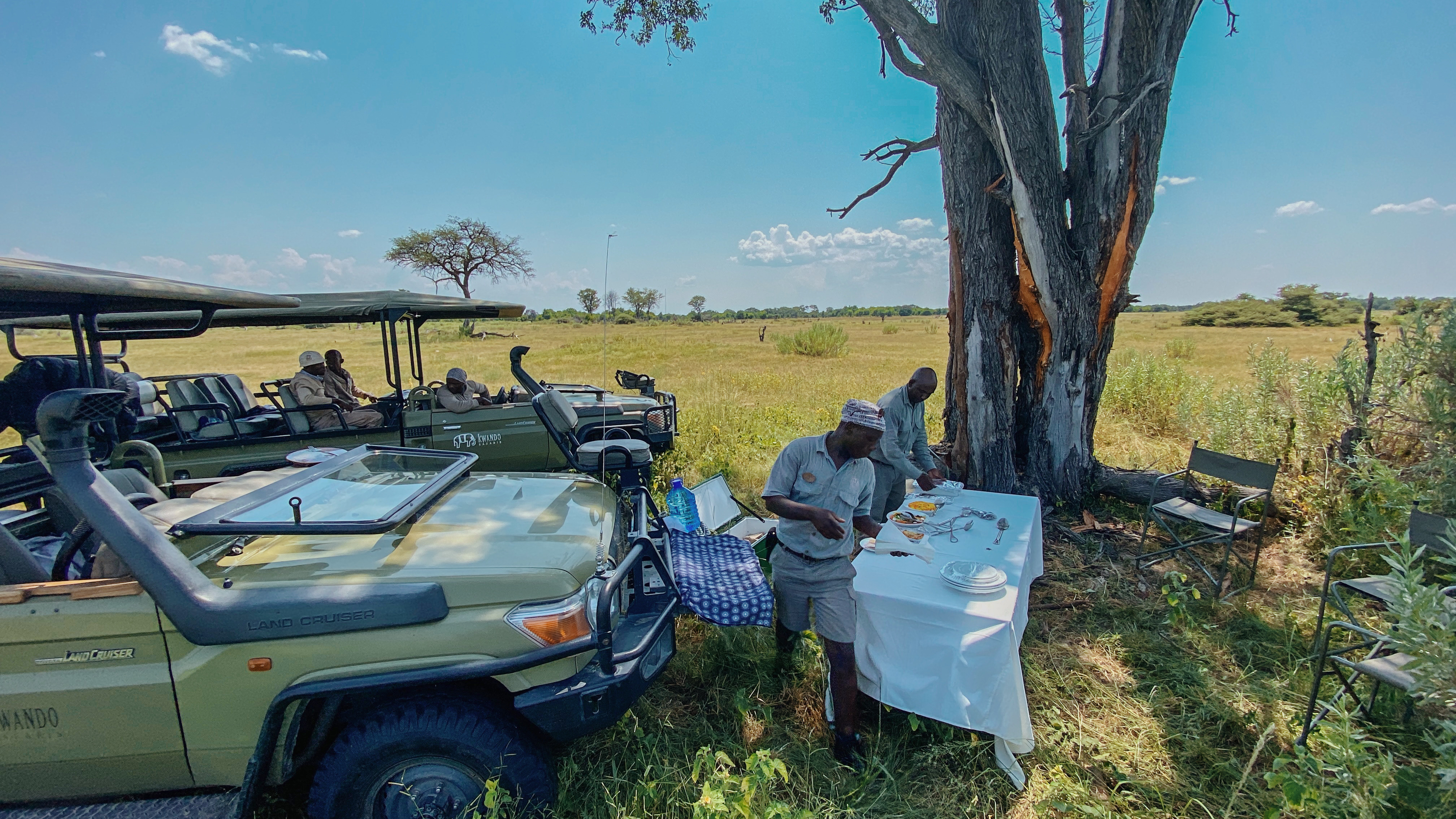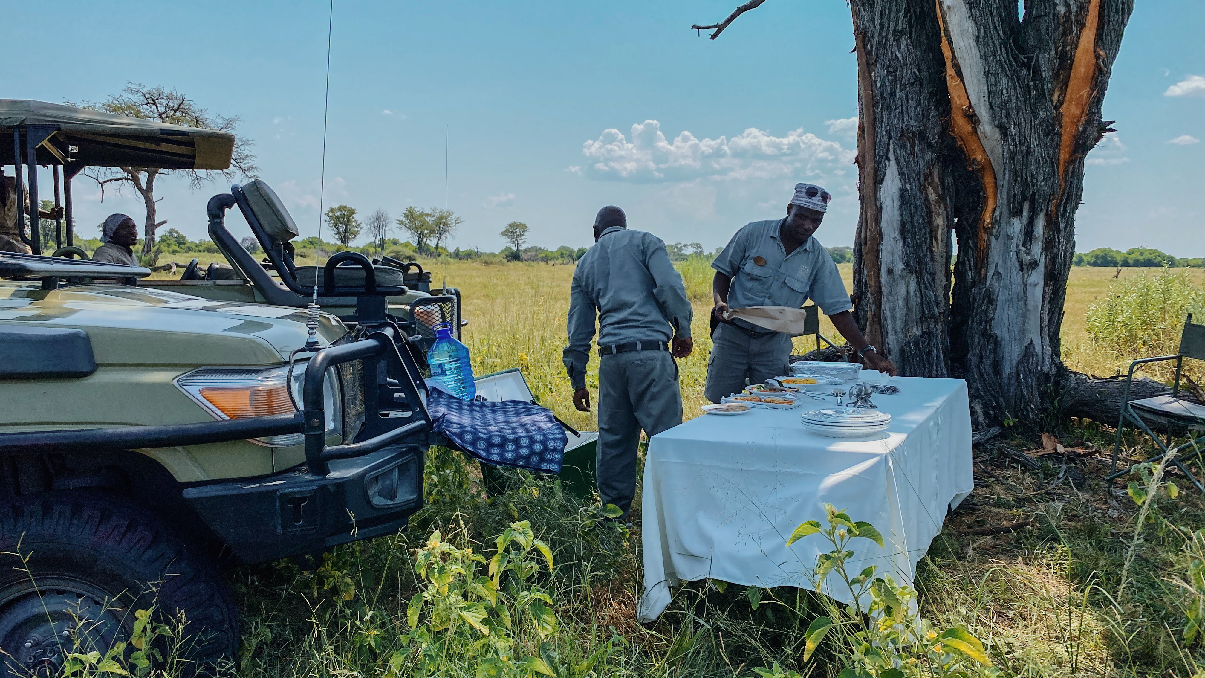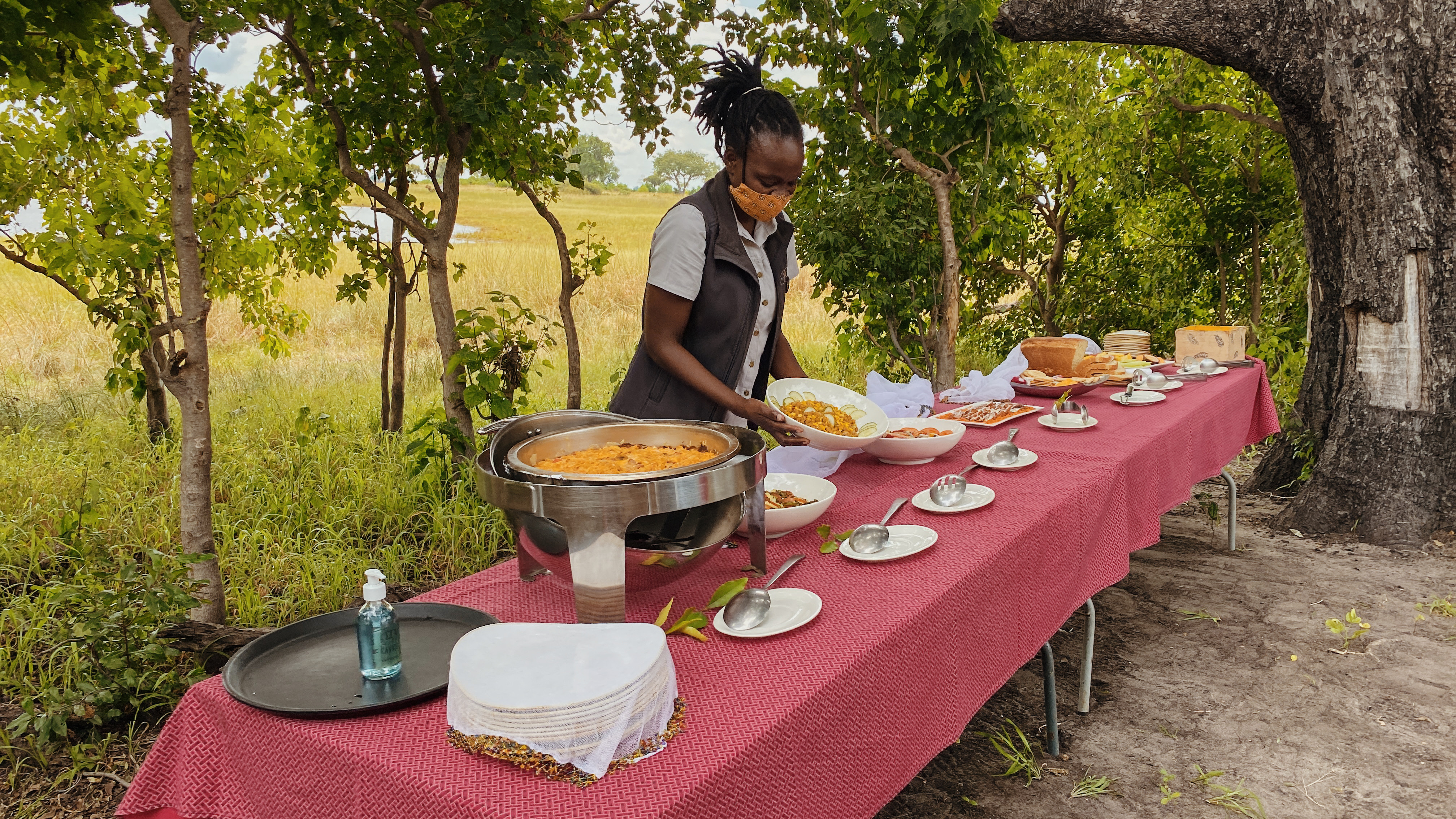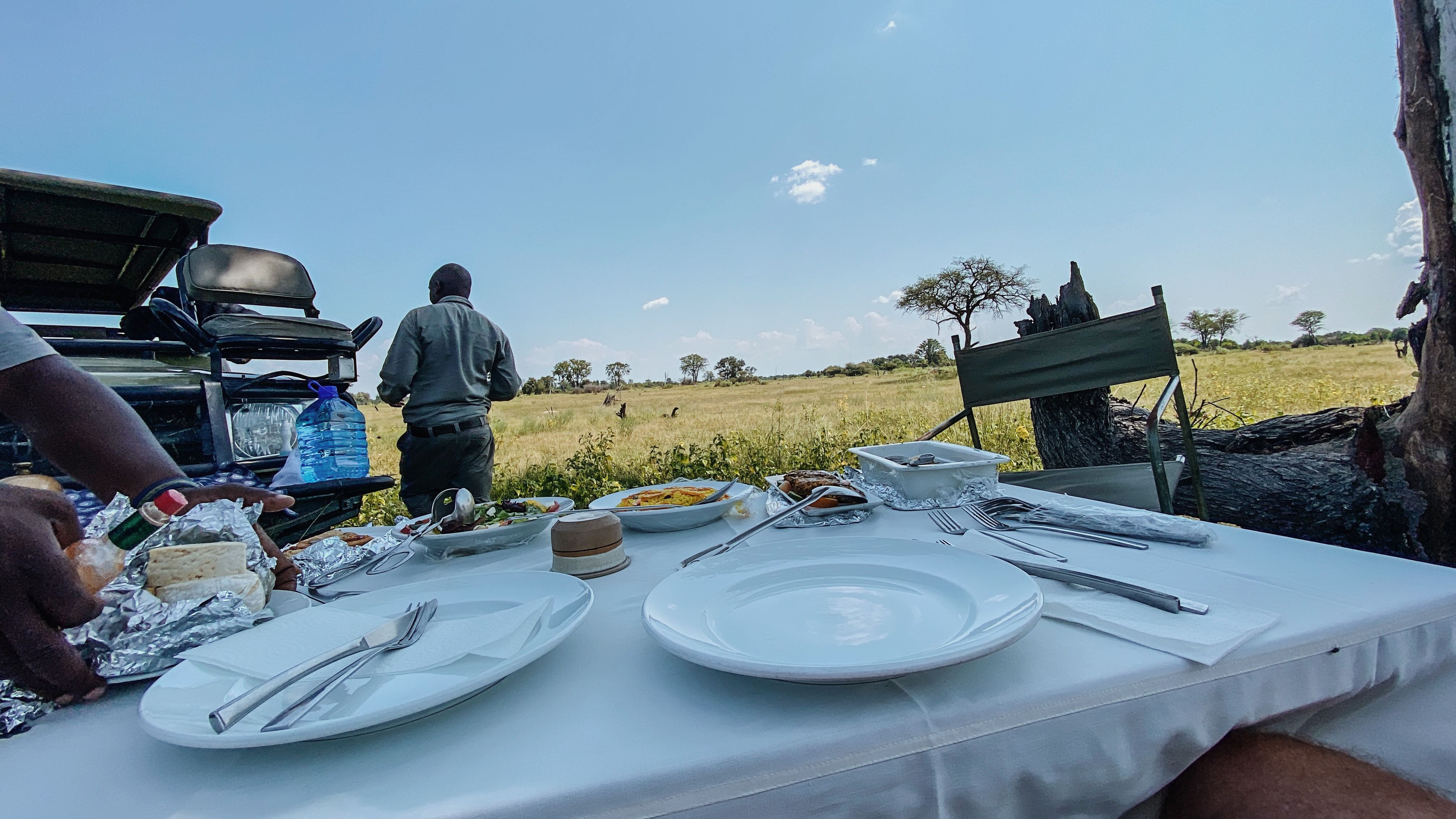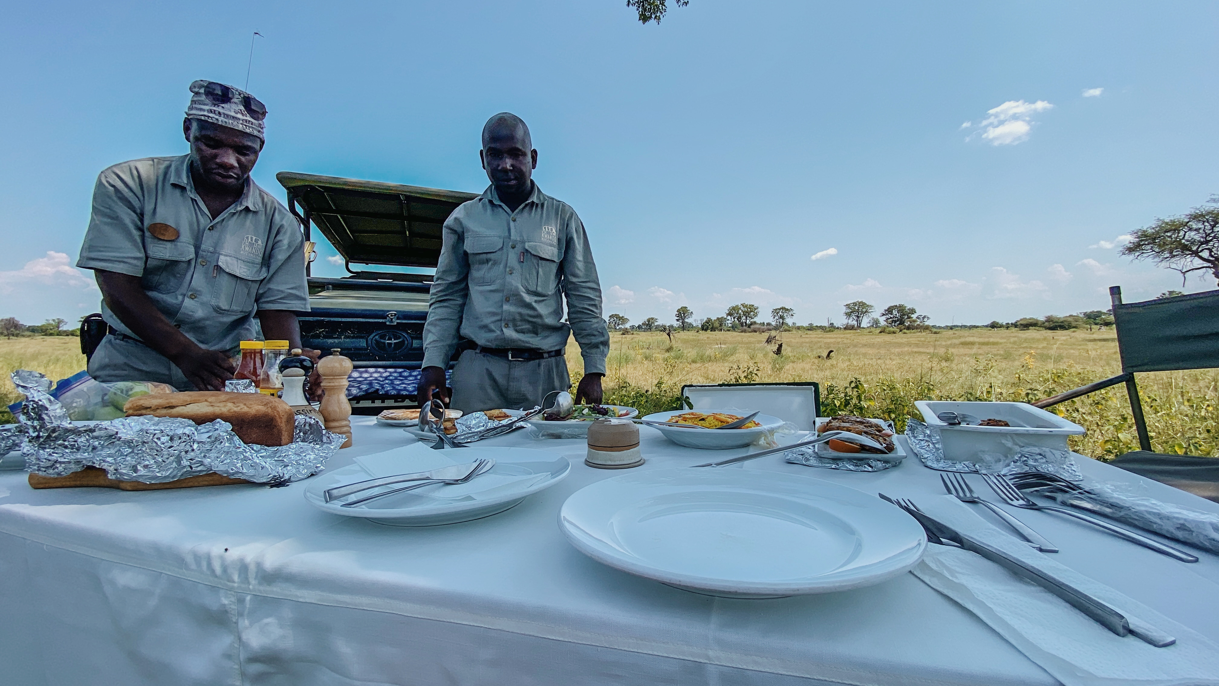 Bevor es so richtig in die wunderschöne Lodge geht, gibt es erst mal Buschlunch für 7 hungrige Raubkatzen. Und es heißt strikt ‚Ladies first‘….. auch beim ‚Mancourse‘, äh Main Course….