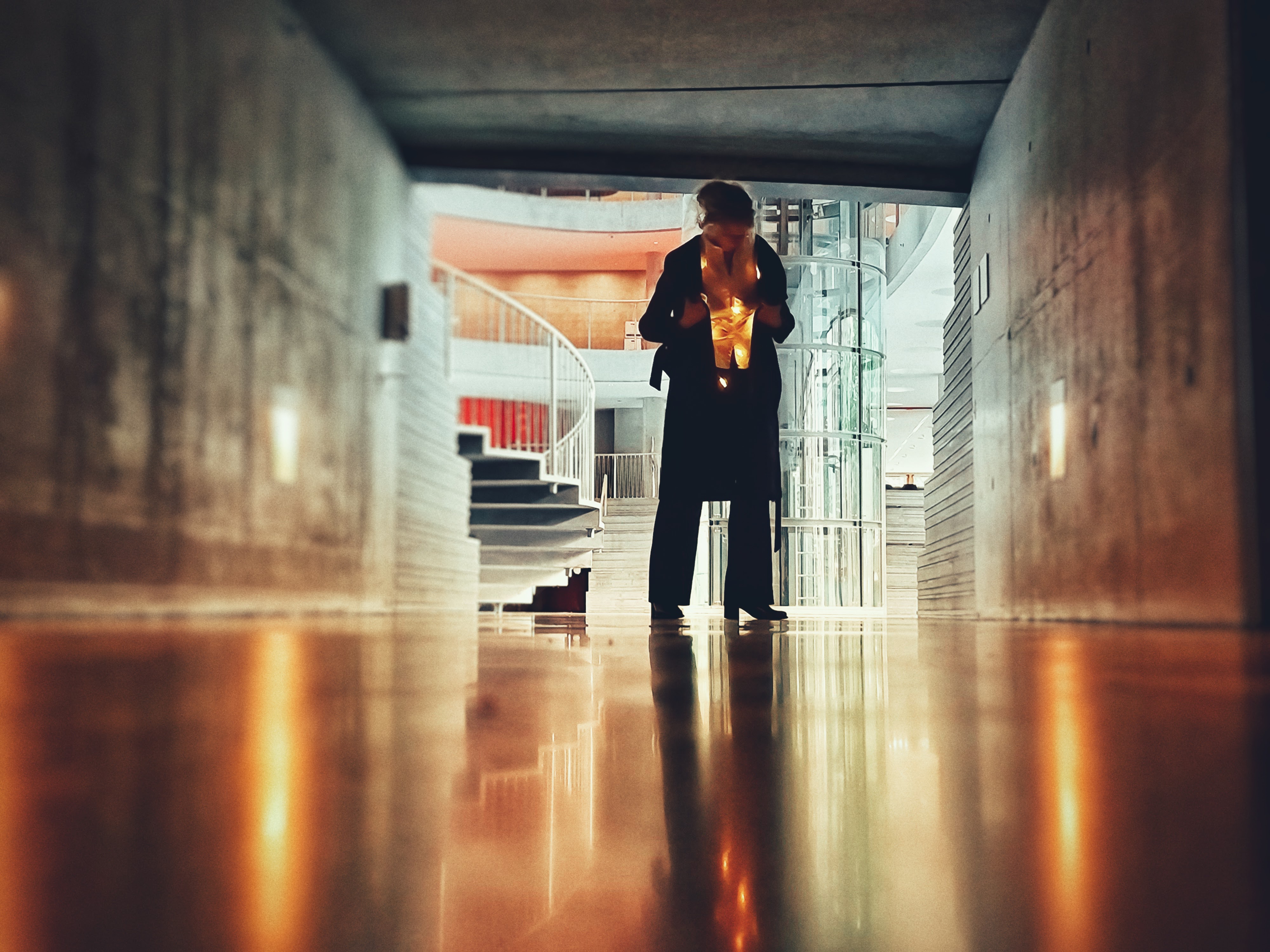 Marie-Louise Holm Jørgensen matcher en trappe ... det er i dét her tilfælde en kompliment ... skudt i Dansk Arkitekturcenter i BLOX i København. Og ja, Marie-Louise går faktisk sådan på arbejde hos Rigspolitiet så hun kender til at der bliver drejet hoveder og kommenteret.