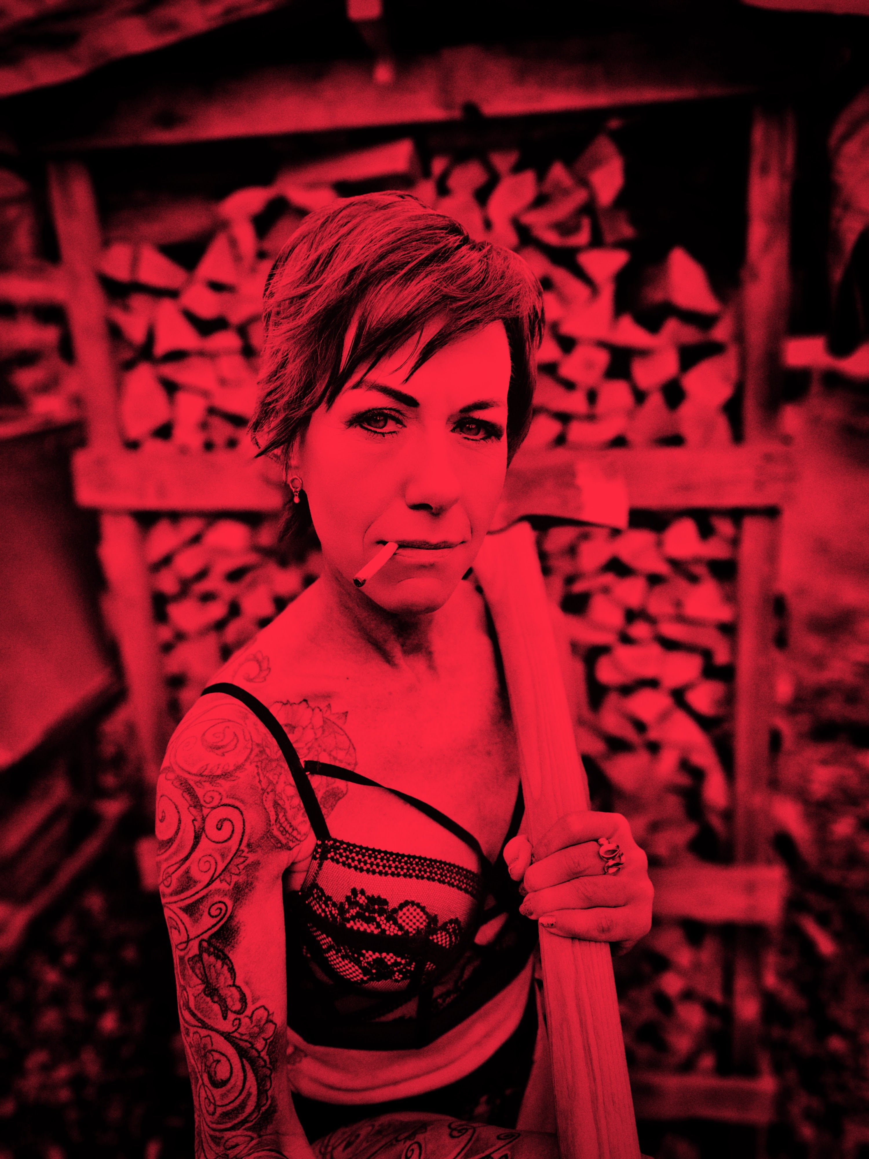 SIN CITY tribute med skuespillerne Anne Bergfeld & Kenneth Matthes. Anne levede sig ind i rollen som vamp med fjer-øjenvipper(!), korset, guns og knive i dette shoot. Alt for at VISE at man er skuespiller …