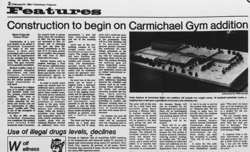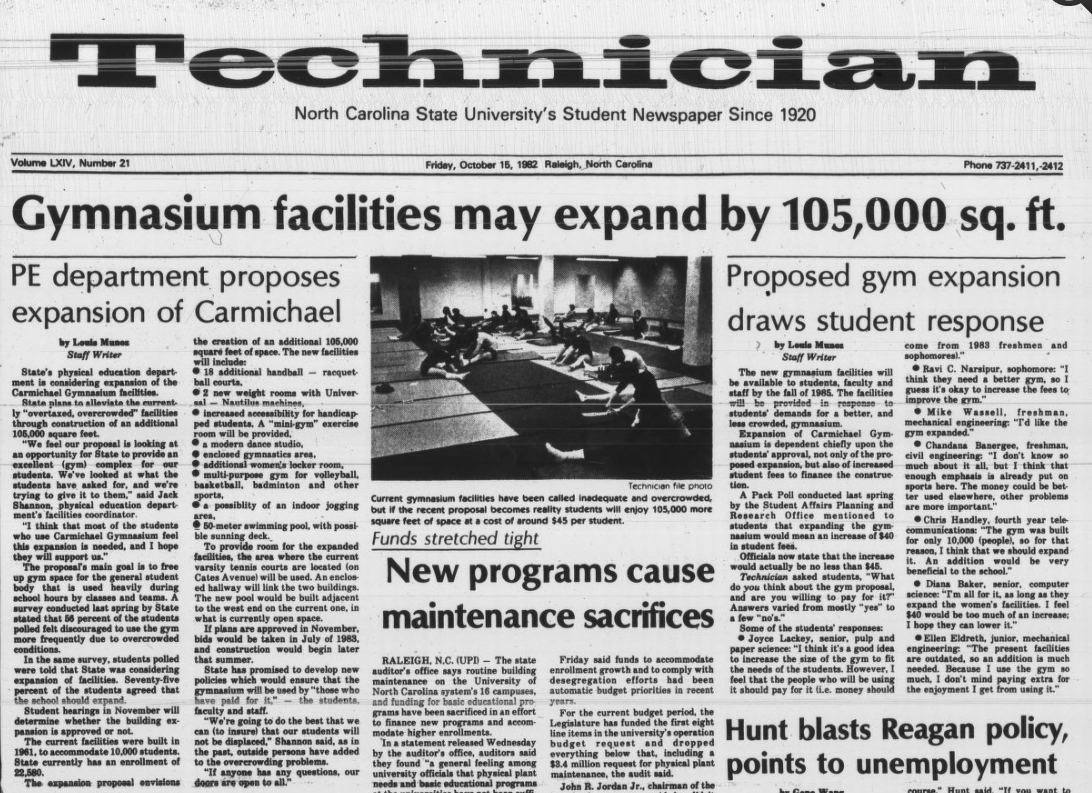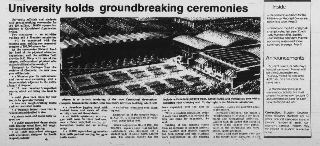 Between 1961 when Carmichael Gymnasium opened and 1981, NC State's enrollment grew from 7,117 to 21,554.