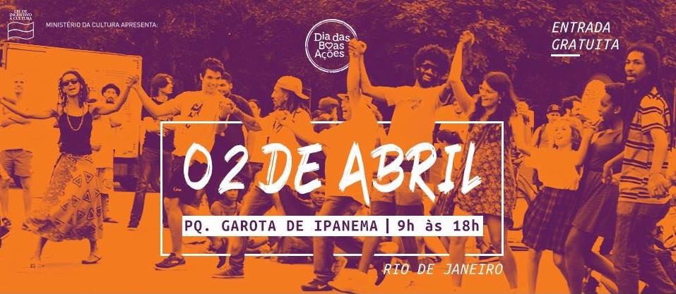 E falando de boas ações e de aquecer o coração, domingo é o Dia Mundial das Boas Ações, e vai rolar um evento de mobilização no Parque Garota de Ipanema, no Arpoardor, com uma Feira de ONGs, para quem busca exercer algum tipo de trabalho voluntário, espaço de gastronomia, shows, Yoga, atividades infantis e bate-papos de como podemos fazer um mundo melhor! E a gente faz com o que está ao nosso alcance! A gente muda o nosso pequeno universo, pequenas coisas no dia-a-dia, e isso muda o mundo! É sério! Imagina uma galerona fazendo isso? Caraaaca!