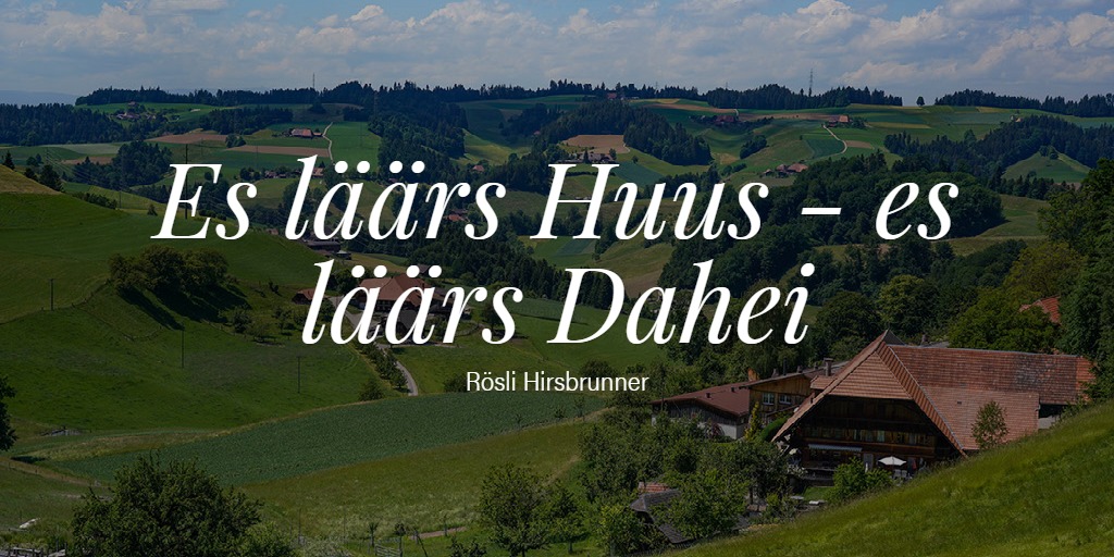 Was nime ig mit vo däm Bsuech z’Rütene. Das isch zwar mau mis Dahei gsy u trotzdäm het’s mir hüt wie nüt meh z’säge – die Gschicht isch abgschlosse. Mis Läbe spielt sich hüt ame angere Ort ab. U drum da no ganz früschi u wunderschöni Erfahrig mit eme grosse mönsche-lääre Ruum.