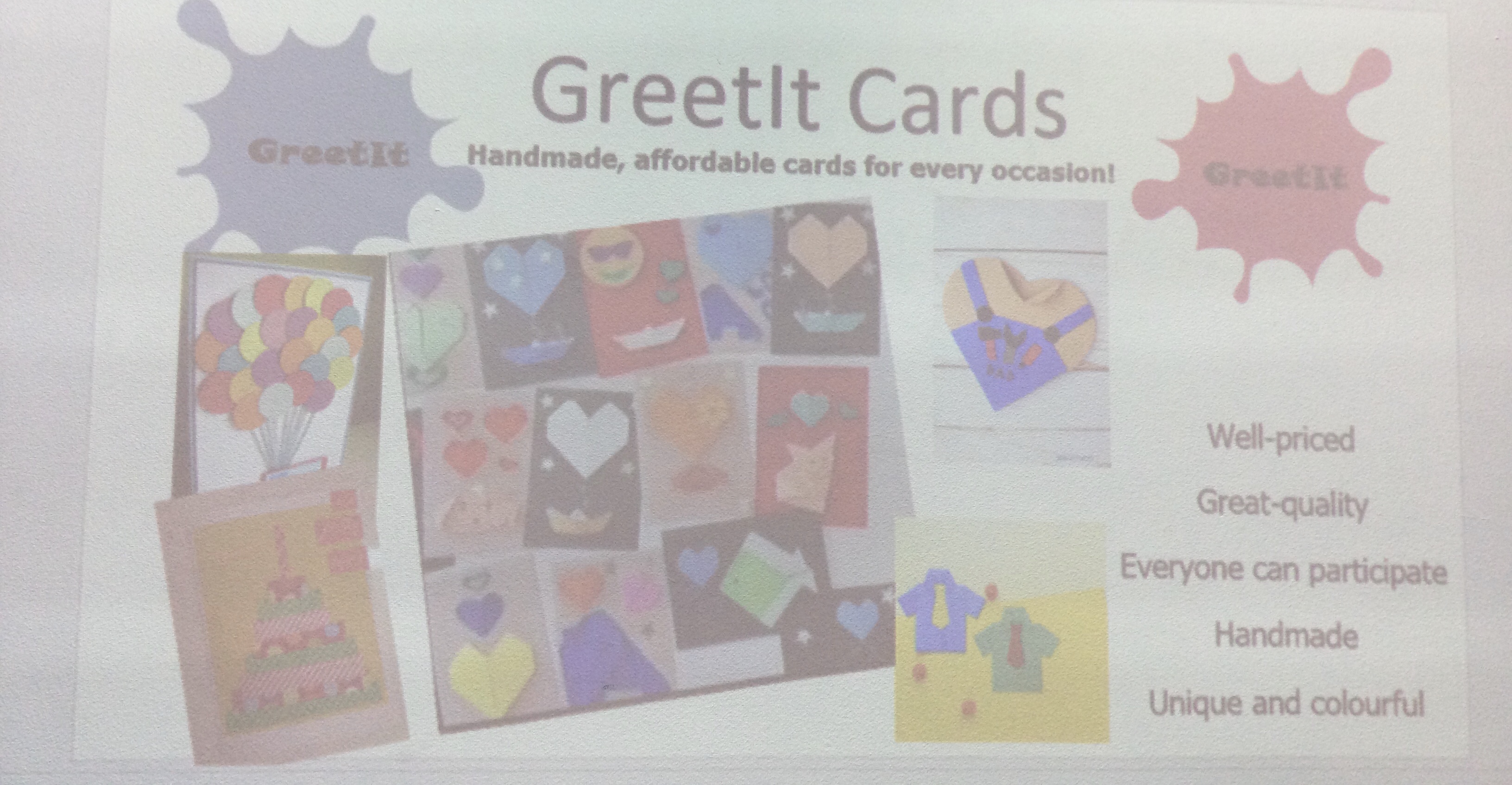 Everyone in Sinniyah class had to come up with an idea that we could use during enterprise week! So Sharvi and I thought of cards because they were easy to make and we knew that they sold well from our experience. We showed the class some photos of cards we had made. Sinniyah is going to make 100 cards to sell to parents, teachers and friends.