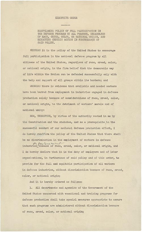 Executive Order 8802 The order that started the Pursuit of equal rights